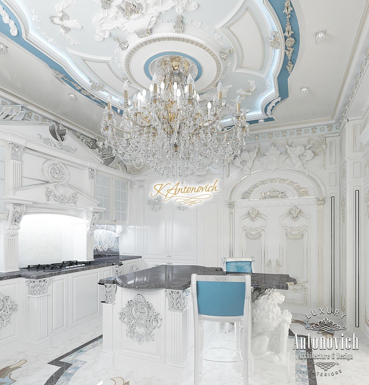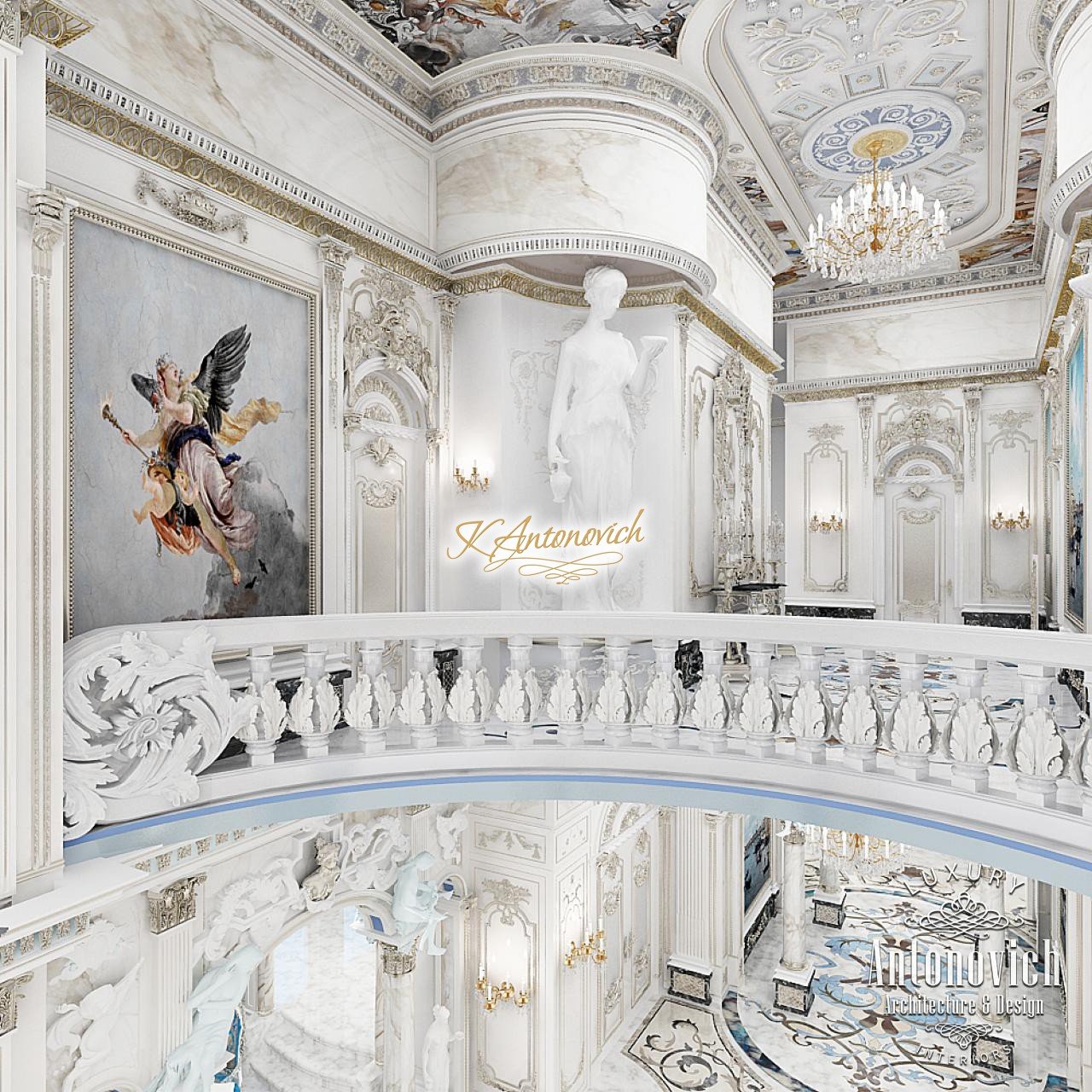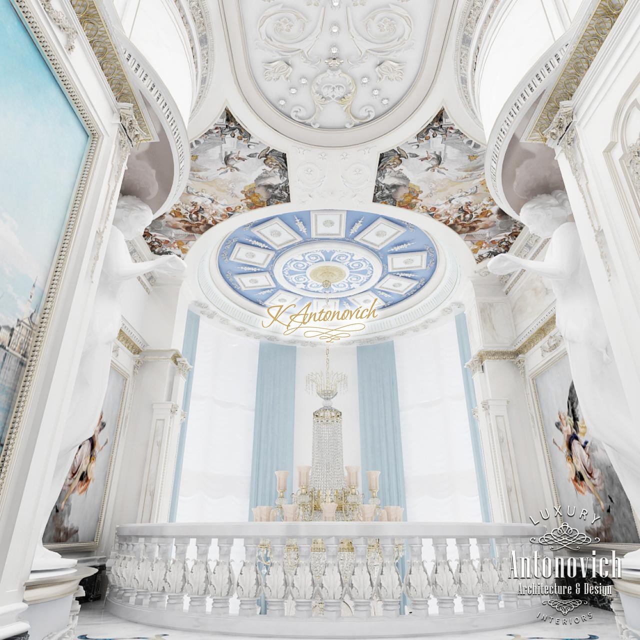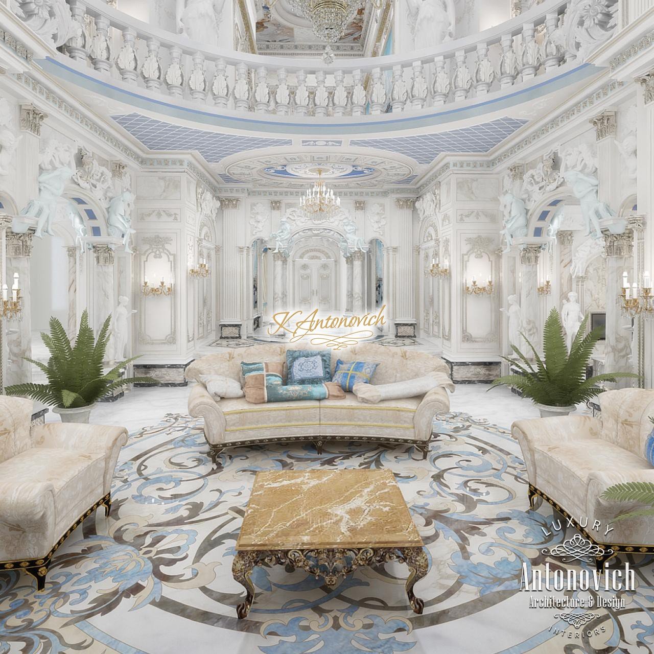 The grand and majestic villa project in Abu Dhabi is a masterpiece of creativity of talented interior designers from design studio Luxury Antonovich Design. The interior, which can be enjoyed forever. The interior, which gives a sense of aesthetic pleasure. The interior, about which you can write a poem or a symphony. A large and close family with aristocratic roots is lucky to have such a luxurious villa interior Abu Dhabi. Interior designers skillfully twist the classical style, Baroque and Rococo, complementing the subtle hints of Oriental style. The floor is made of natural marble with carved patterns, like a painting of a great artist. Thr floor on the ground floor can be admired from the height of the balustrade of the second floor. A delightful fireplace composition looks luxurious. Majestic image of the interior is complemented with rich decor of walls and ceilings. Interior designers perfectly organized a large spaceof the house, emphasizing the benefits of the architectural plan. The interior design combines stunning grandeur of the palace with the warmth of contemporary comfort. Furniture upholstered in noble creamy velvet and luxurious drapes of silk in soft blue hues look home-warm and cozy. Massive crystal chandelier fills the interior with festive mood. Noble status of respectable apartment is perfectly emphasized with the art of painting in the decoration of the walls and ceiling in the best traditions of the Renaissance. The interior design from the studio Luxury Antonovich Design is a fine art that will go in history and will delight more than one generation.