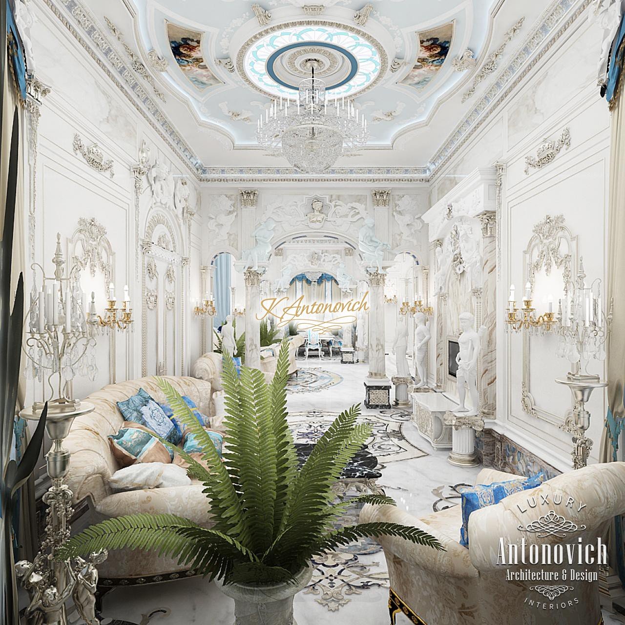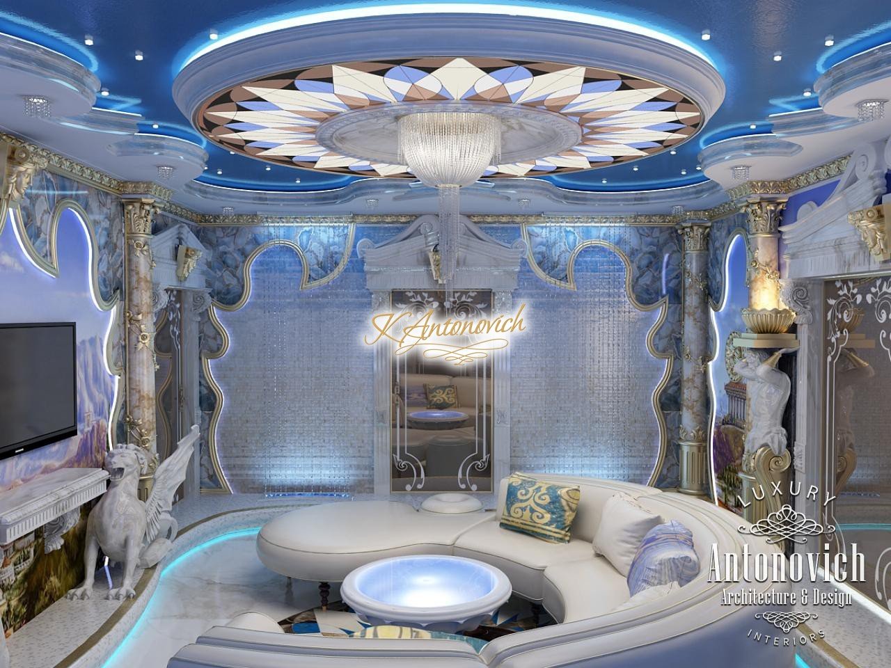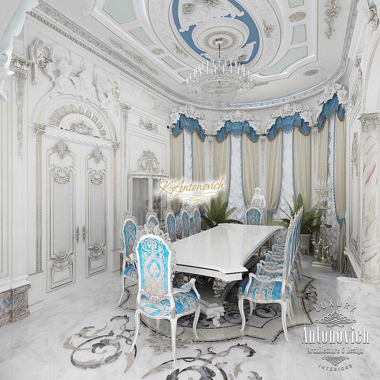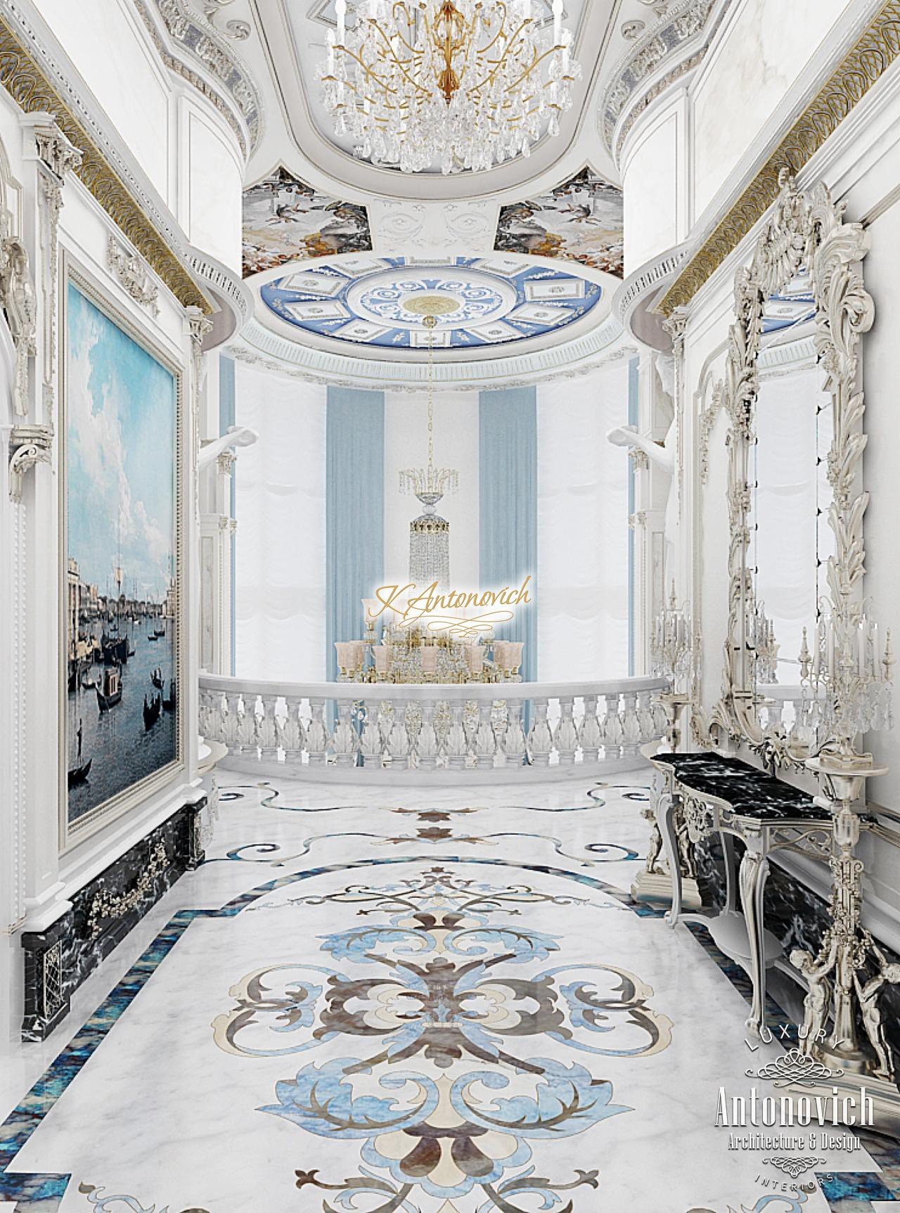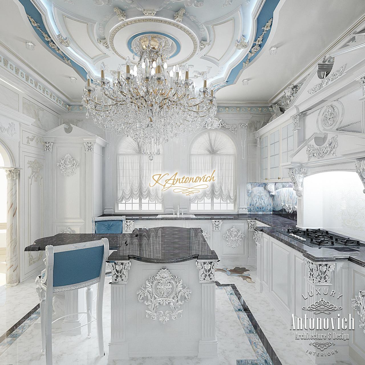 The grand and majestic villa project in Abu Dhabi is a masterpiece of creativity of talented interior designers from design studio Luxury Antonovich Design. The interior, which can be enjoyed forever. The interior, which gives a sense of aesthetic pleasure. The interior, about which you can write a poem or a symphony. A large and close family with aristocratic roots is lucky to have such a luxurious villa interior Abu Dhabi. Interior designers skillfully twist the classical style, Baroque and Rococo, complementing the subtle hints of Oriental style. The floor is made of natural marble with carved patterns, like a painting of a great artist. Thr floor on the ground floor can be admired from the height of the balustrade of the second floor. A delightful fireplace composition looks luxurious. Majestic image of the interior is complemented with rich decor of walls and ceilings. Interior designers perfectly organized a large spaceof the house, emphasizing the benefits of the architectural plan. The interior design combines stunning grandeur of the palace with the warmth of contemporary comfort. Furniture upholstered in noble creamy velvet and luxurious drapes of silk in soft blue hues look home-warm and cozy. Massive crystal chandelier fills the interior with festive mood. Noble status of respectable apartment is perfectly emphasized with the art of painting in the decoration of the walls and ceiling in the best traditions of the Renaissance. The interior design from the studio Luxury Antonovich Design is a fine art that will go in history and will delight more than one generation.