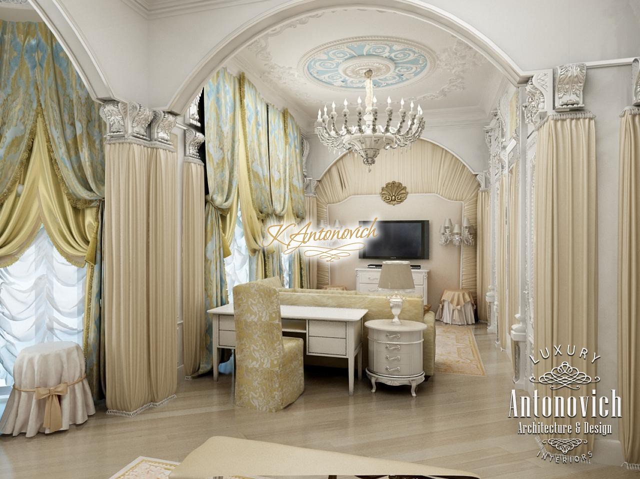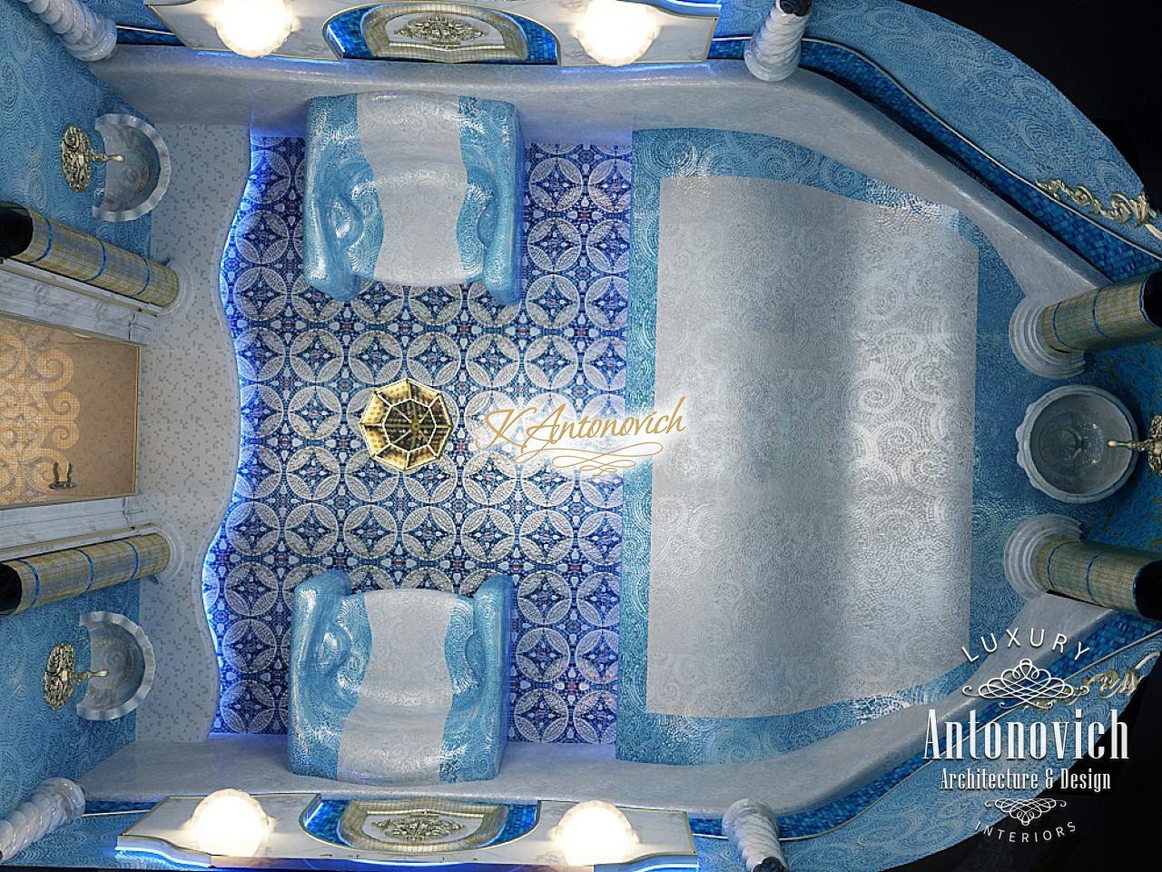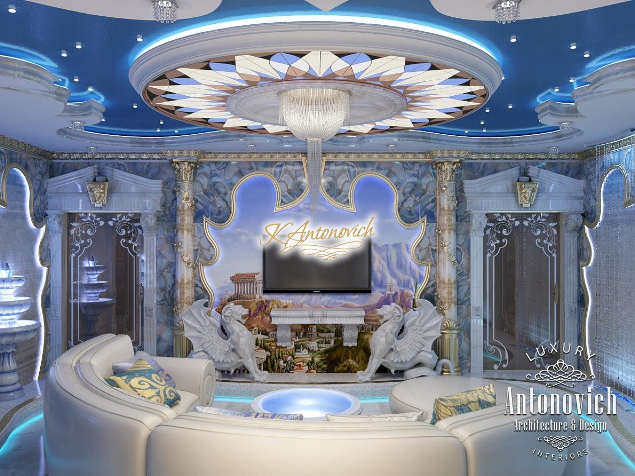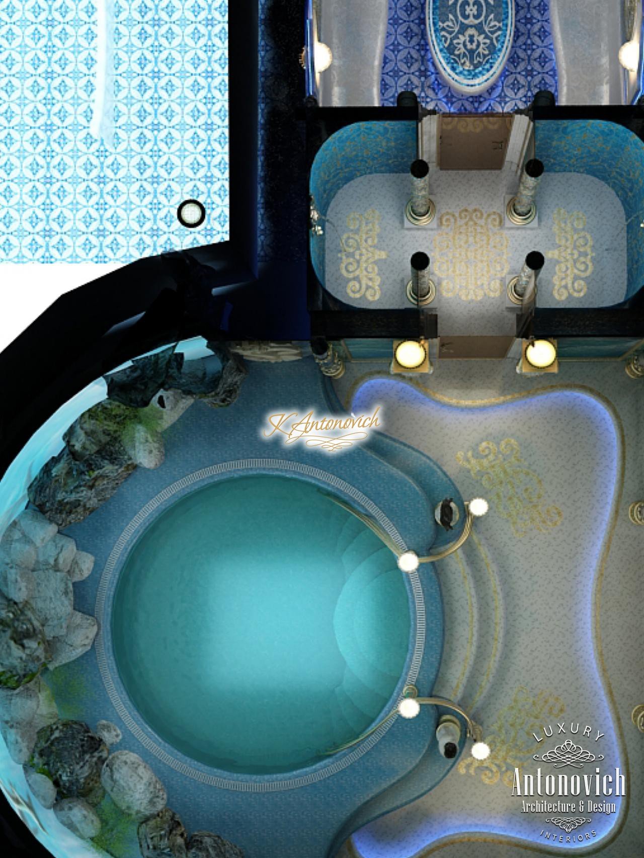 The grand and majestic villa project in Abu Dhabi is a masterpiece of creativity of talented interior designers from design studio Luxury Antonovich Design. The interior, which can be enjoyed forever. The interior, which gives a sense of aesthetic pleasure. The interior, about which you can write a poem or a symphony. A large and close family with aristocratic roots is lucky to have such a luxurious villa interior Abu Dhabi. Interior designers skillfully twist the classical style, Baroque and Rococo, complementing the subtle hints of Oriental style. The floor is made of natural marble with carved patterns, like a painting of a great artist. Thr floor on the ground floor can be admired from the height of the balustrade of the second floor. A delightful fireplace composition looks luxurious. Majestic image of the interior is complemented with rich decor of walls and ceilings. Interior designers perfectly organized a large spaceof the house, emphasizing the benefits of the architectural plan. The interior design combines stunning grandeur of the palace with the warmth of contemporary comfort. Furniture upholstered in noble creamy velvet and luxurious drapes of silk in soft blue hues look home-warm and cozy. Massive crystal chandelier fills the interior with festive mood. Noble status of respectable apartment is perfectly emphasized with the art of painting in the decoration of the walls and ceiling in the best traditions of the Renaissance. The interior design from the studio Luxury Antonovich Design is a fine art that will go in history and will delight more than one generation.