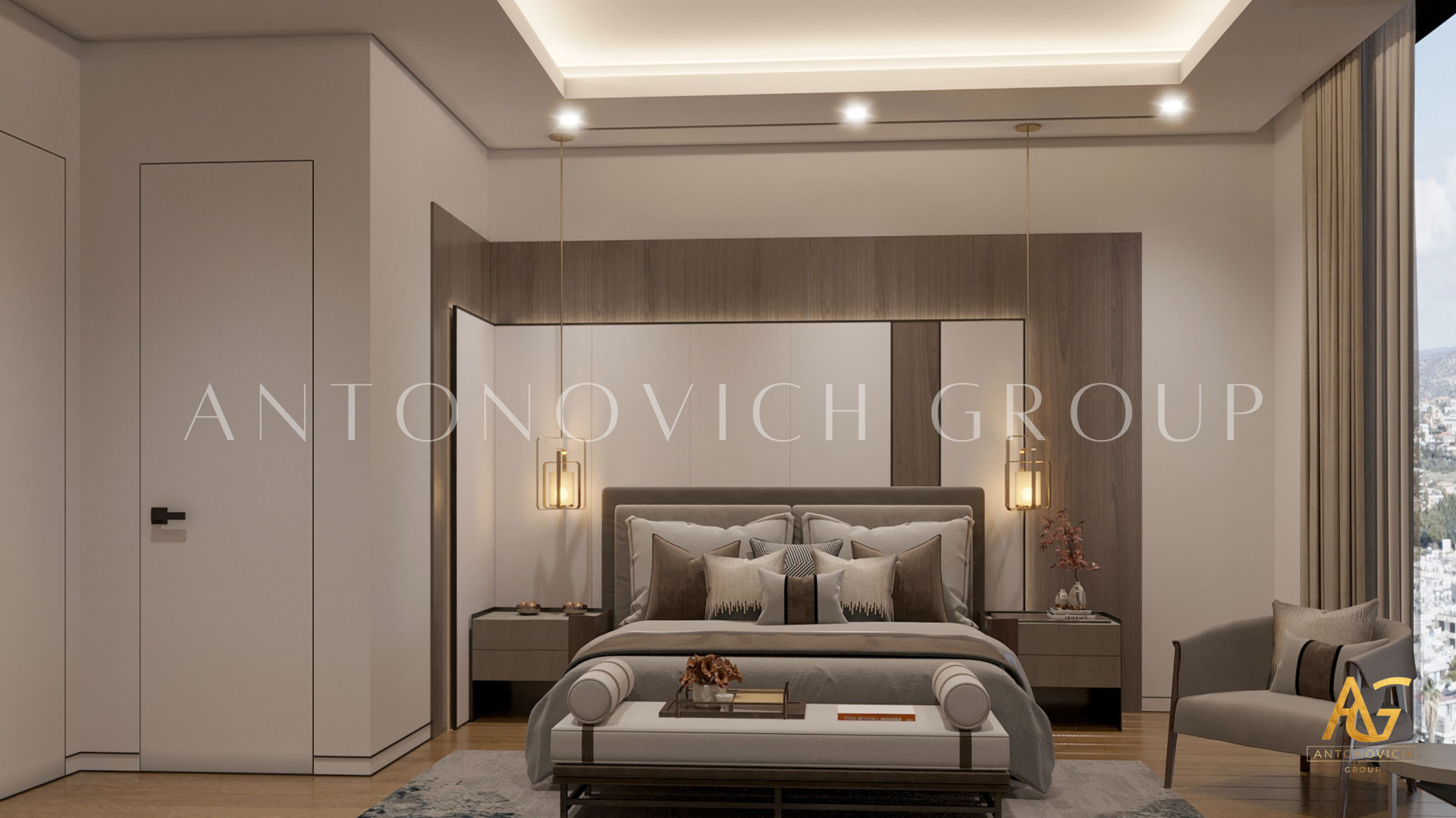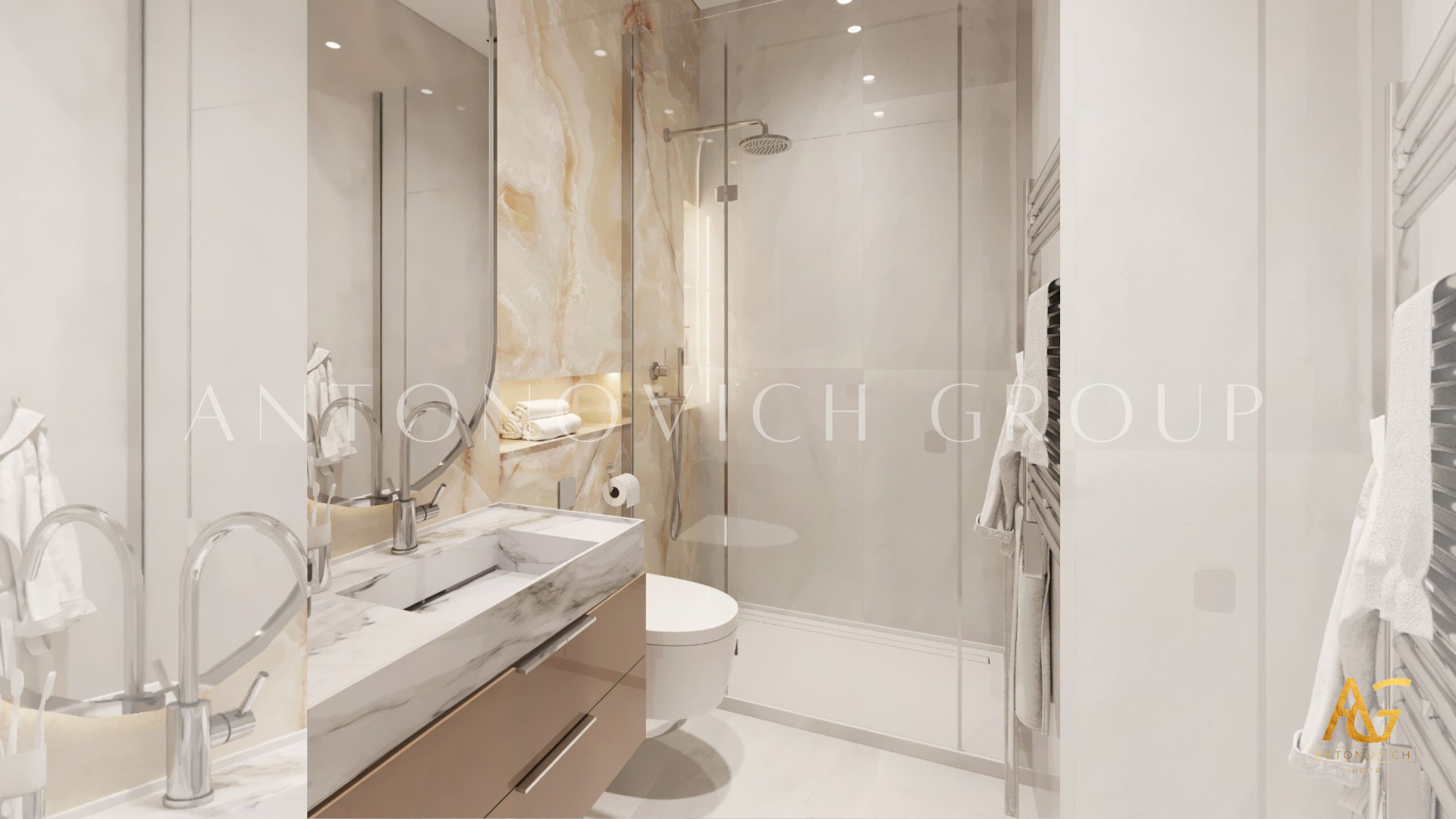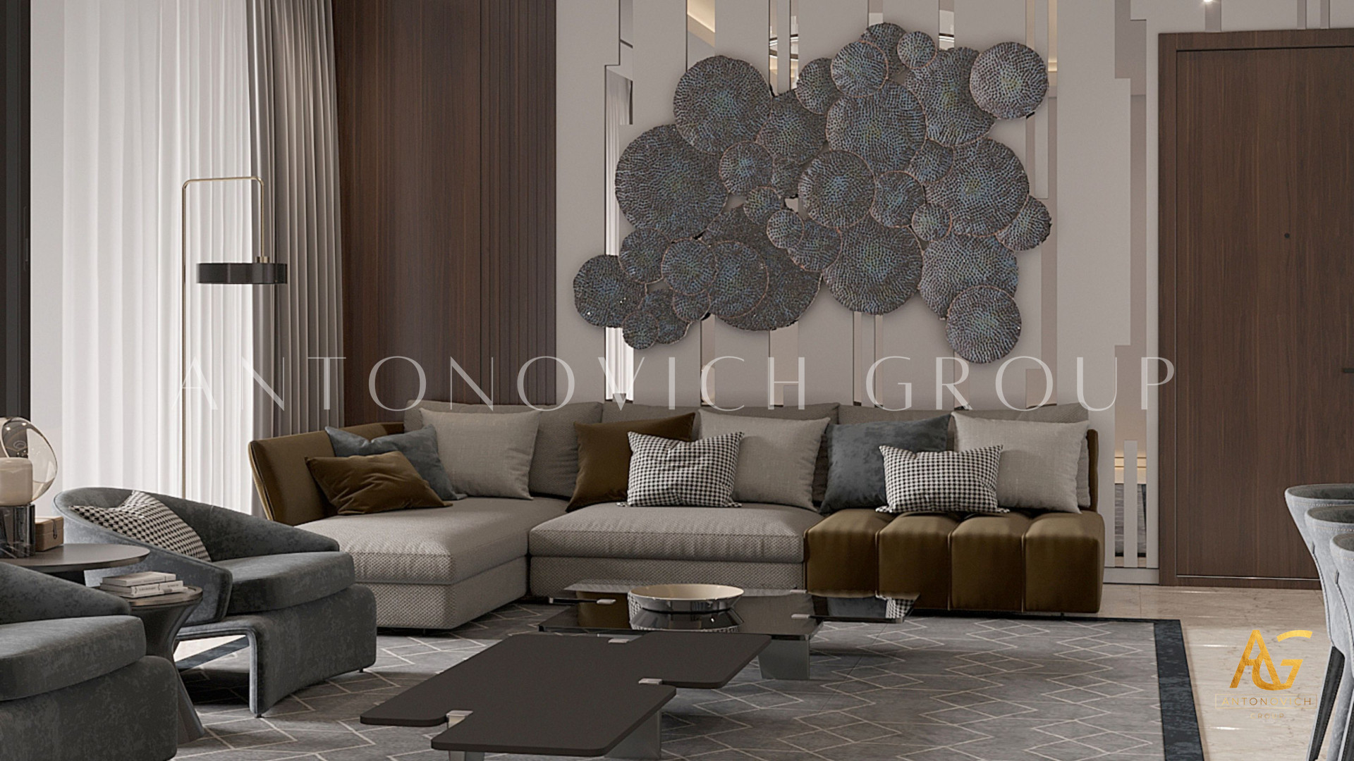 This is a grand-scale project of a luxurious residence in Dubai. The owner expressed the wish to obtain a luxurious modern interior, where comfort was elevated to the absolute value, and every detail of the interior underlines its high status and respectability. Sufficiently large apartment opened scope for creativity of designers. The main role in the story of this luxurious interior is played by round living room. The floor is decorated with precious marble with carved patterns. In the center the ceiling is decorated with a massive crystal chandelier with waterfalls of pendants. The highlight of the living room interior became large round columns in light colors. This part of the interior forms a sense of stability and grandeur. And the beginning of the delightful story is in the luxury hall interior. Floor design made of precious marble with exquisite geometric design repeats on elegant walls decor. Bright accent in the hall interior became luxurious furniture in the style of visionary. In the living room interior design the floor picks up the theme of the ceiling decoration. The semi-circular portal of windows is curtained with light curtains of precious silk in bright colors. In this picture luxury and comfort semicircular sofas upholstered in velvet milky perfectly fit. Kitchen interior look majestic and dignified. Noble marble floors and decor in the working surfaces of the interior underlines the elite status, as well as elegant furniture with carved decoration. Apartment design in the Dubai's represents the future of luxury and comfort.