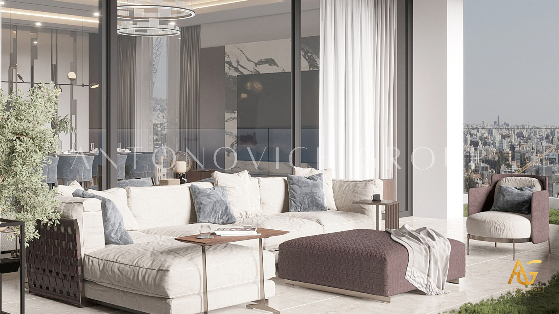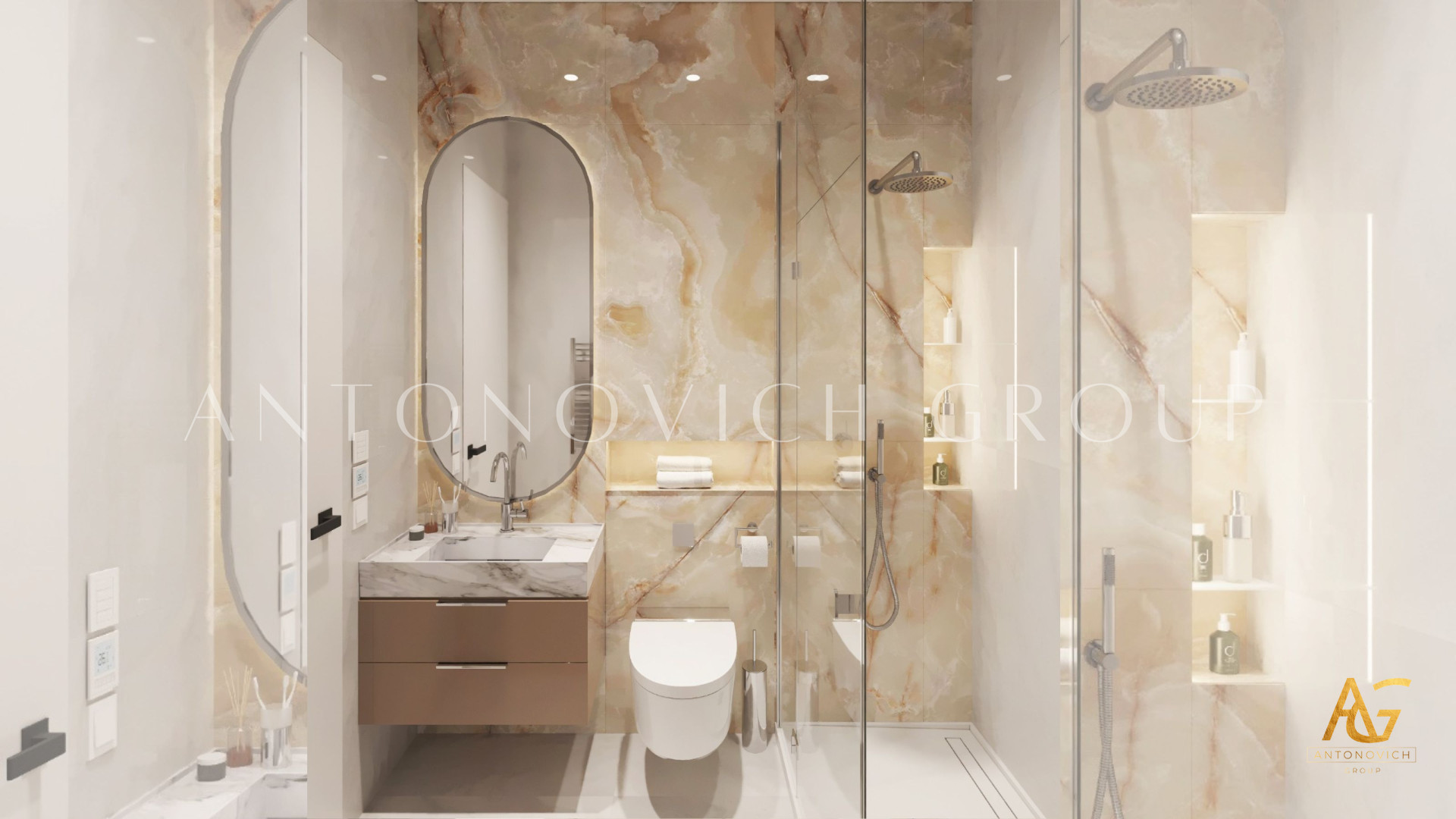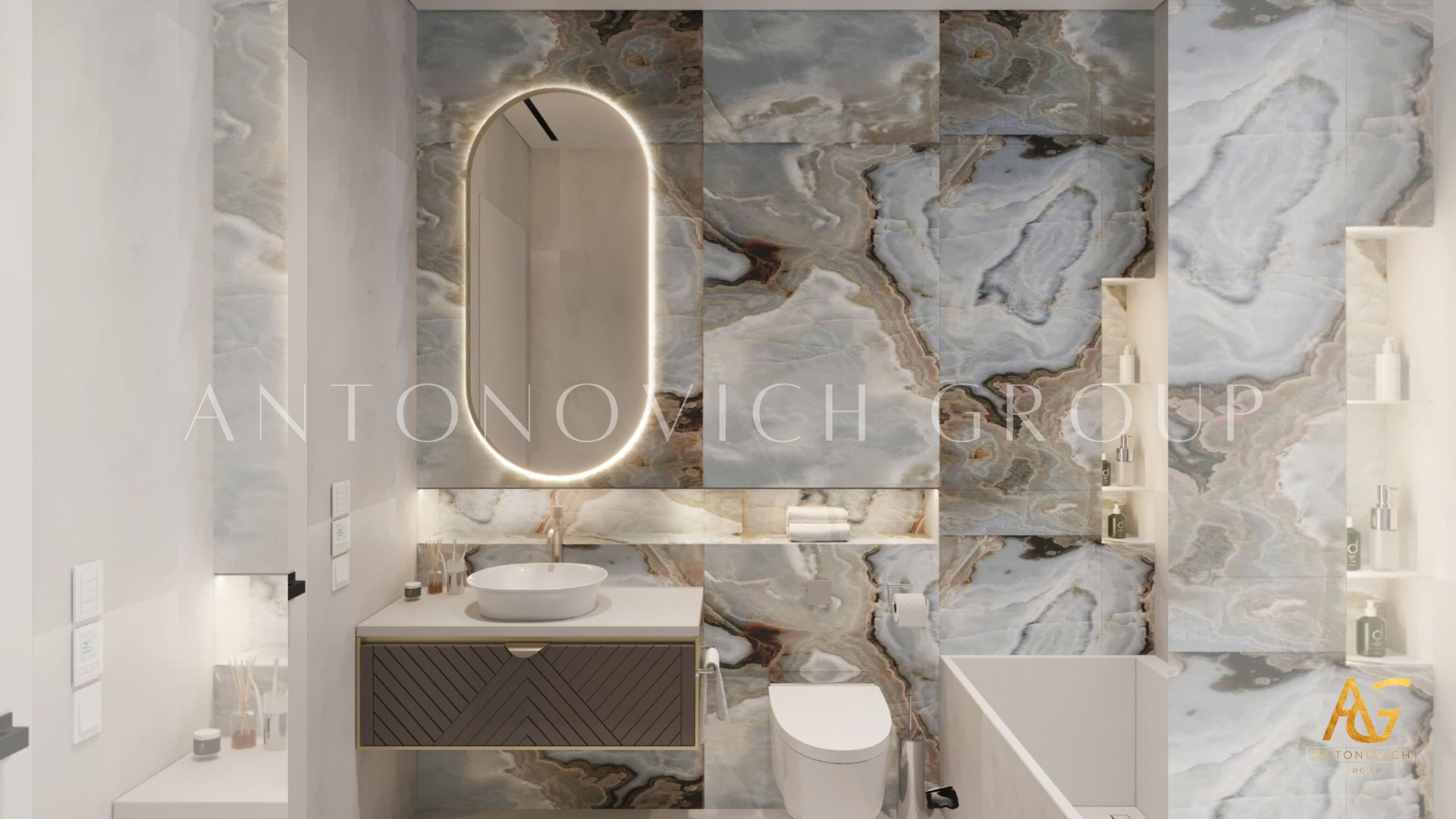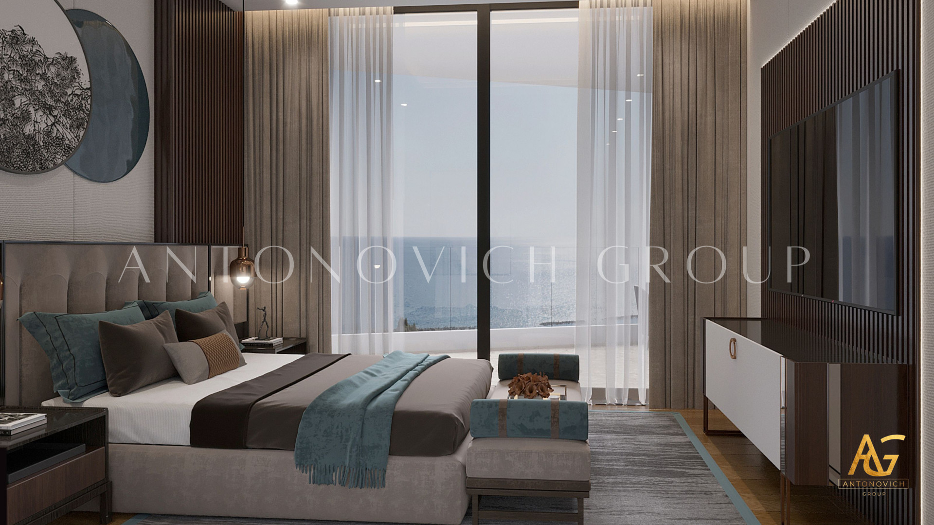 This is a grand-scale project of a luxurious residence in Dubai. The owner expressed the wish to obtain a luxurious modern interior, where comfort was elevated to the absolute value, and every detail of the interior underlines its high status and respectability. Sufficiently large apartment opened scope for creativity of designers. The main role in the story of this luxurious interior is played by round living room. The floor is decorated with precious marble with carved patterns. In the center the ceiling is decorated with a massive crystal chandelier with waterfalls of pendants. The highlight of the living room interior became large round columns in light colors. This part of the interior forms a sense of stability and grandeur. And the beginning of the delightful story is in the luxury hall interior. Floor design made of precious marble with exquisite geometric design repeats on elegant walls decor. Bright accent in the hall interior became luxurious furniture in the style of visionary. In the living room interior design the floor picks up the theme of the ceiling decoration. The semi-circular portal of windows is curtained with light curtains of precious silk in bright colors. In this picture luxury and comfort semicircular sofas upholstered in velvet milky perfectly fit. Kitchen interior look majestic and dignified. Noble marble floors and decor in the working surfaces of the interior underlines the elite status, as well as elegant furniture with carved decoration. Apartment design in the Dubai's represents the future of luxury and comfort.