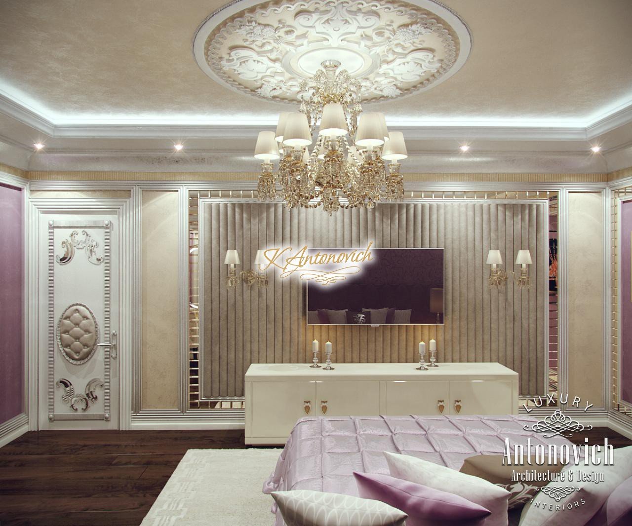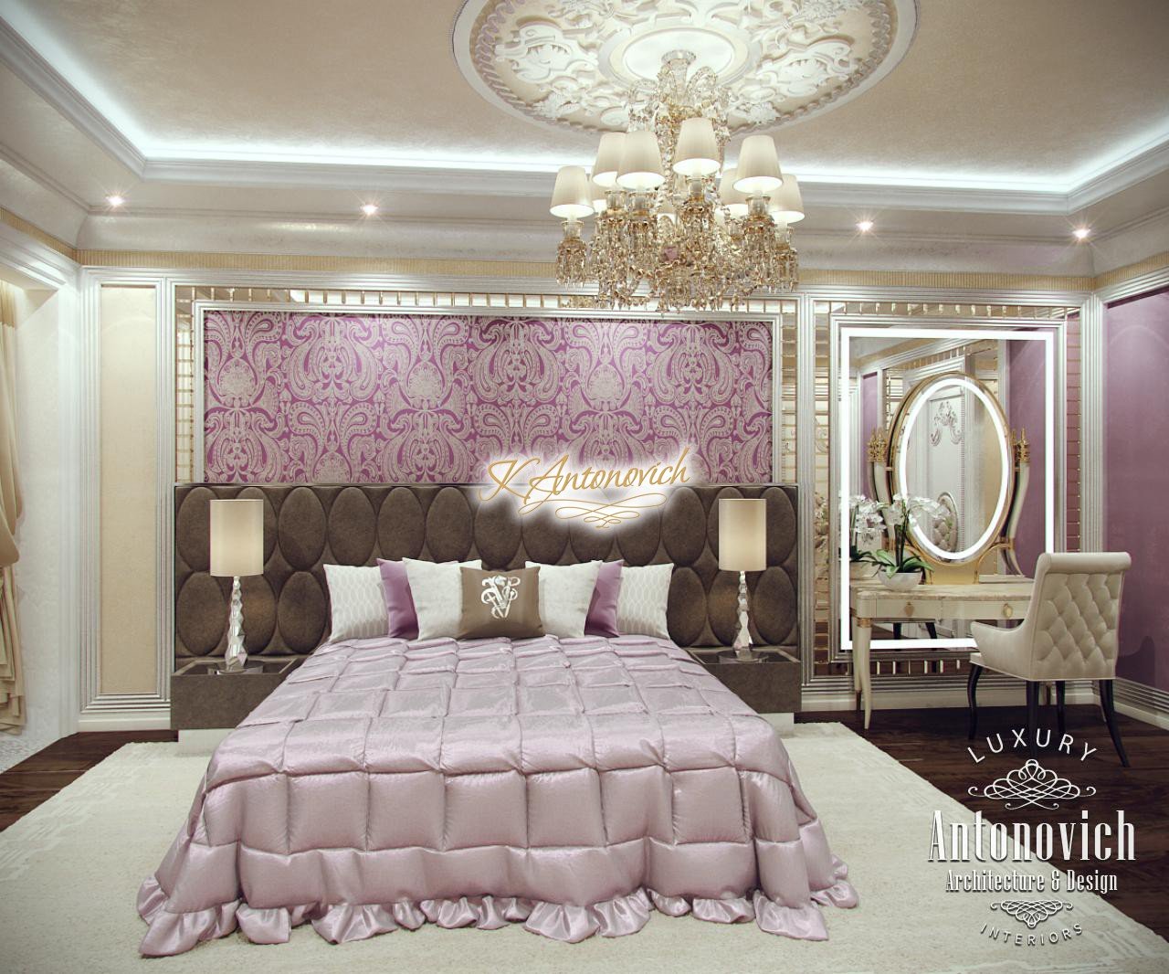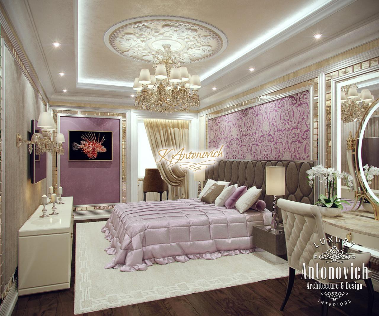 In each square meter of bedroom interior, you can admire endlessly. Interior design studio Dubai Luxury Antonovich design reflects the latest fashion trends and unique studio projects often become the basis for new fashion trends. In this design amazing combination of ingenious design ideas, wishes of customers and spectacular decoration reflect. Bedroom design reflects a charming image of the hostess. The spacious apartment is full of warmth and freshness. Interior Designers Dubai combine motifs of modern classics and art deco to create a cozy and unique image. Most of all, the classical style meets the ceiling design. It is decorated with stucco of silk texture, which shimmers under the play of light of elegant chandeliers. Luxurious swirls of stucco decoration complement the image of the ceiling. In the walls decor there is improvisation with luxurious materials and textures. It perfectly combines luxury textile and decorative plaster. The elegant bedroom look is complemented with mirror elements. Dark wood floor of valuable species delightfully contrasted with soft natural cream-colored carpet. And, of course, the main decoration of the bedroom interior was a large comfortable bed. Its high upholstered headboard extends almost the entire width of the wall. Noble velvet upholstery of chocolate shade with shallow marks complement the charming look of the bedroom. In the bedroom interior we take into account such additional factors as the working area, according to the wishes of customers.