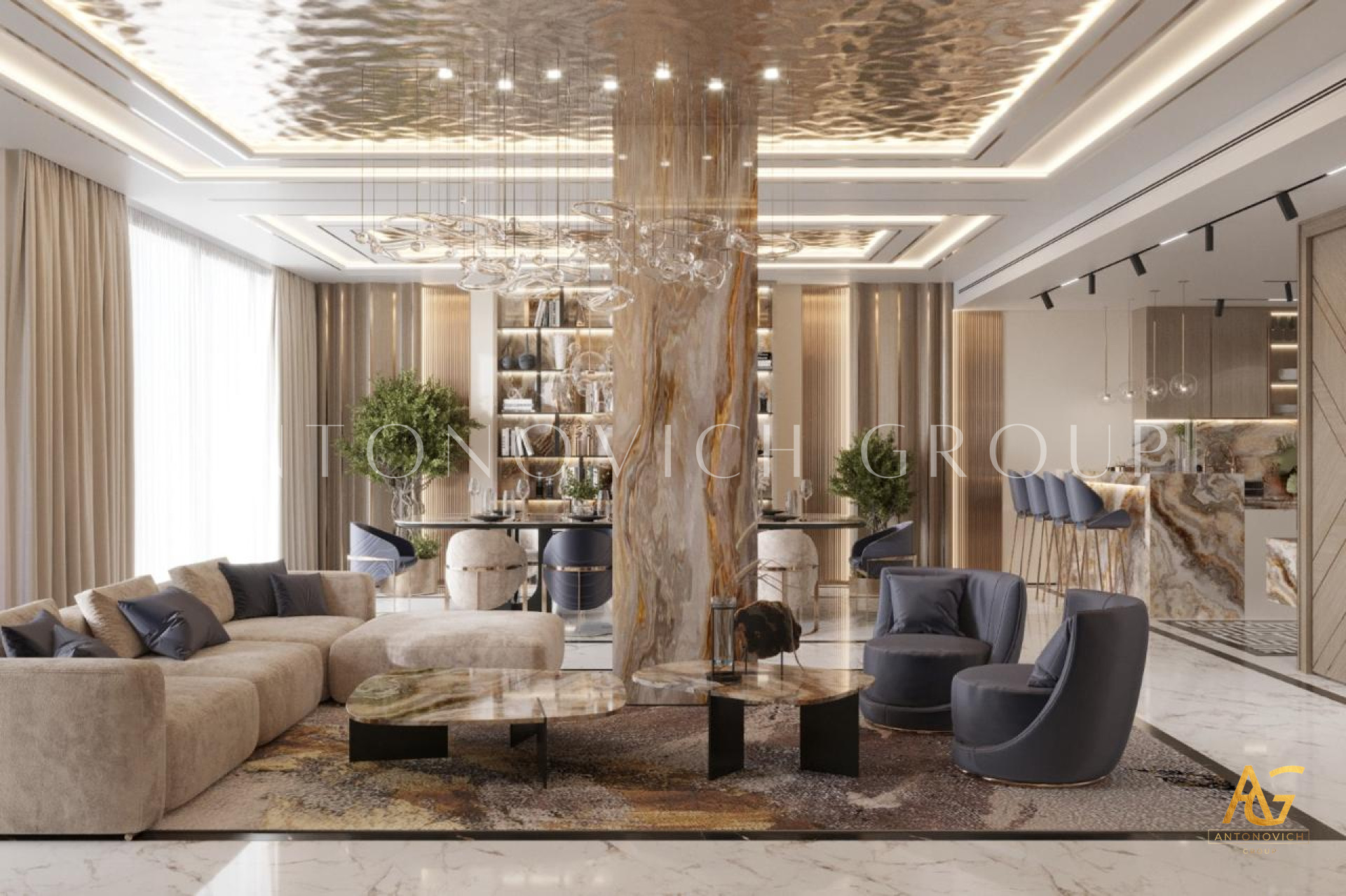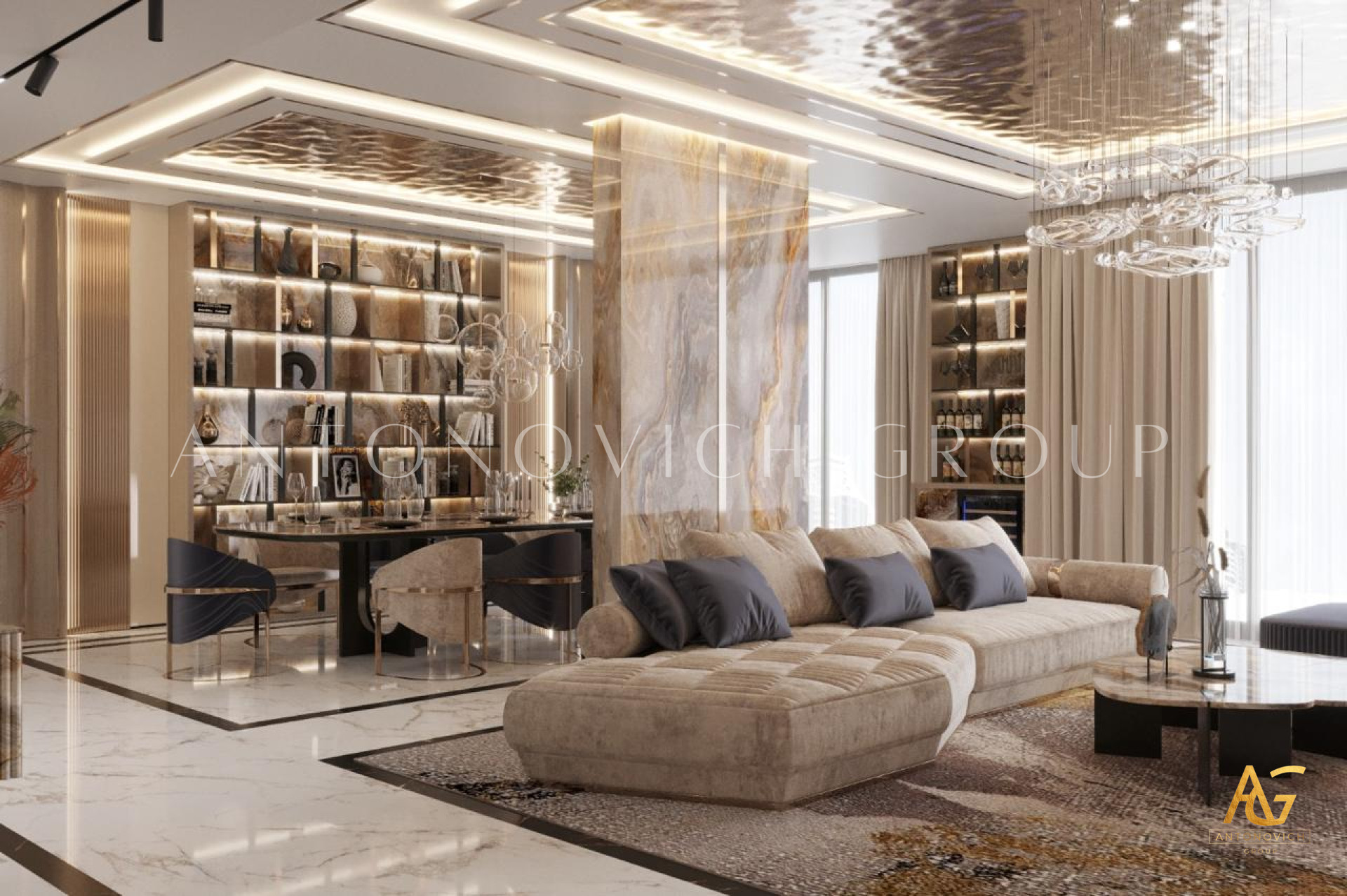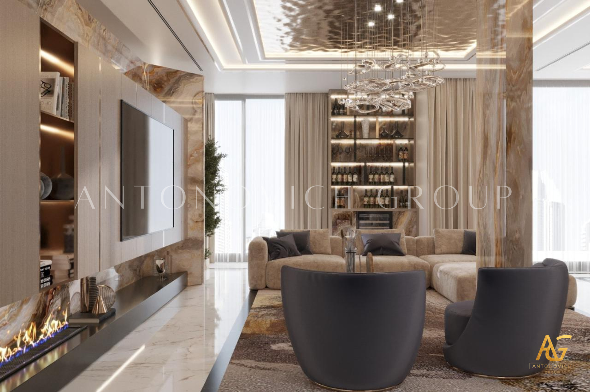 By managing both design and execution, Antonovich Group guarantees a seamless process from concept to completion. This end-to-end service ensures that every living room not only looks beautiful but also functions perfectly for everyday life.