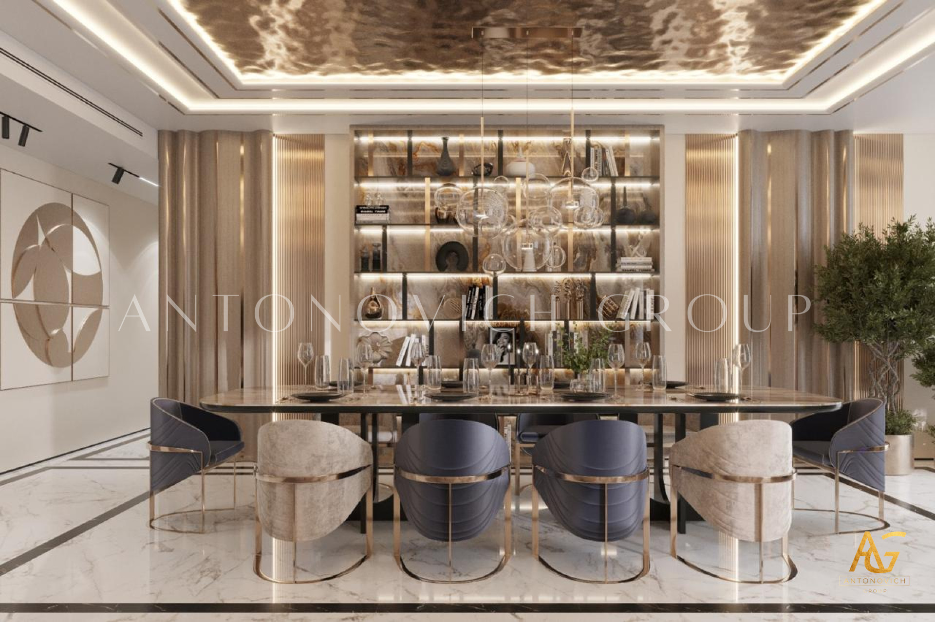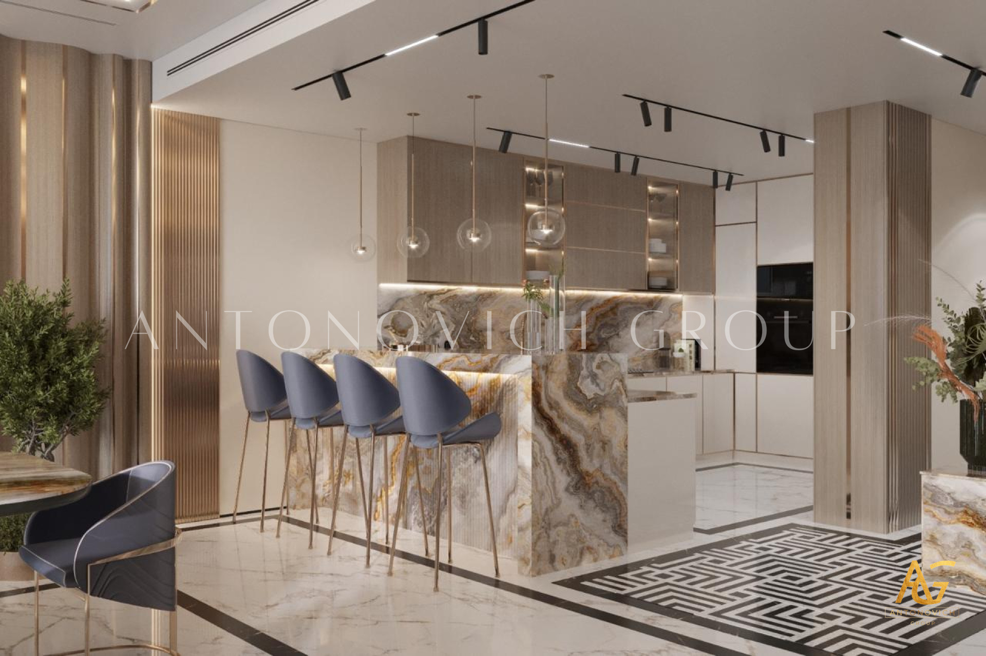 Antonovich Group also excels at creating ambiance through layered lighting, natural earth tones, and textured finishes. By blending modern layouts with cozy elements, they deliver living rooms that feel both stylish and inviting. Whether it’s a family-centered space for everyday relaxation or a formal lounge for entertaining guests, their designs strike the perfect balance between comfort and luxury.