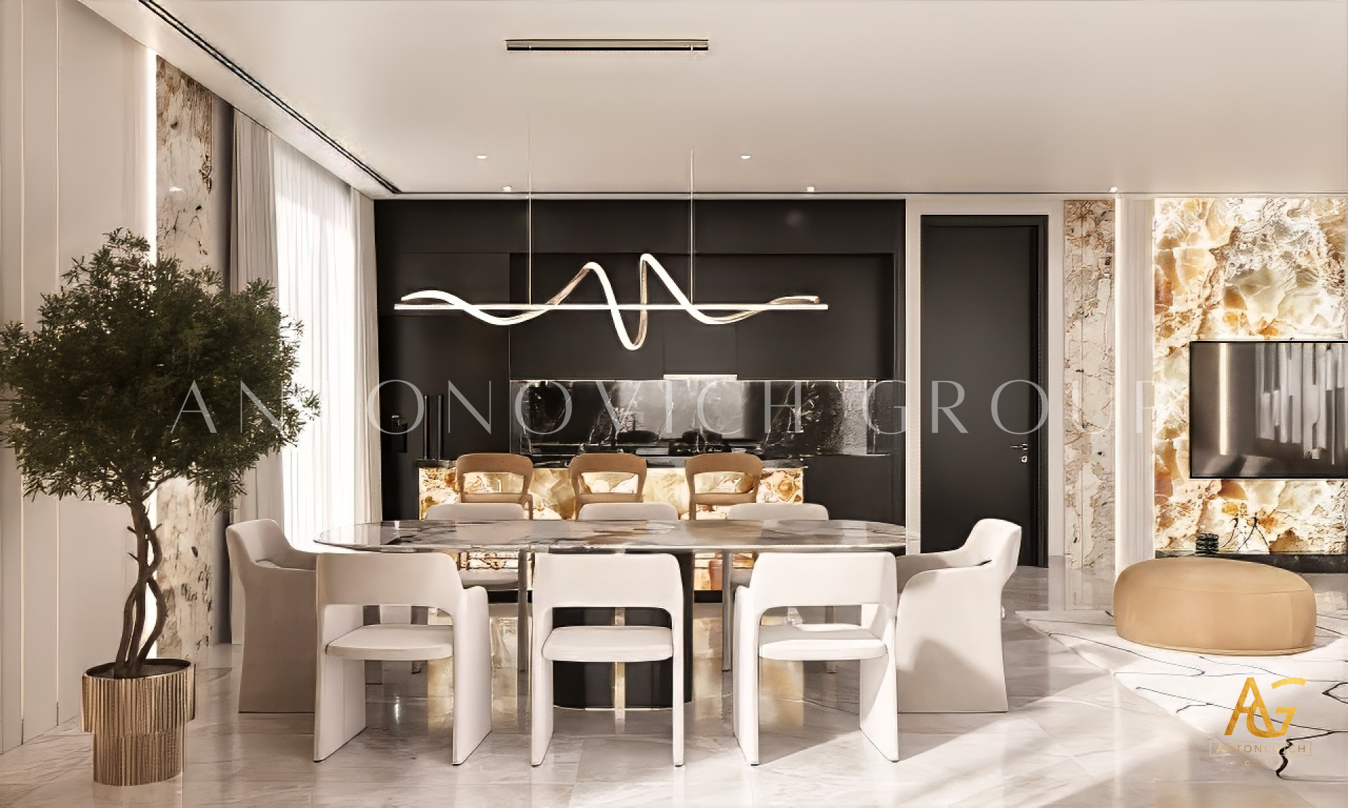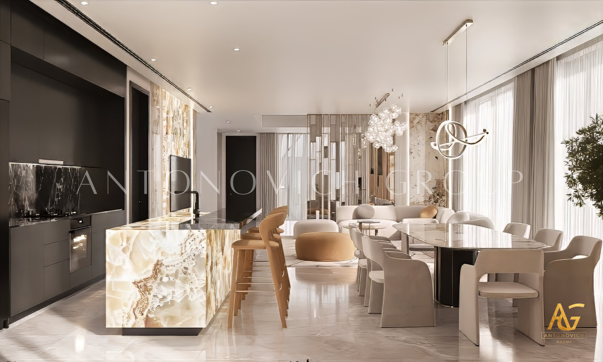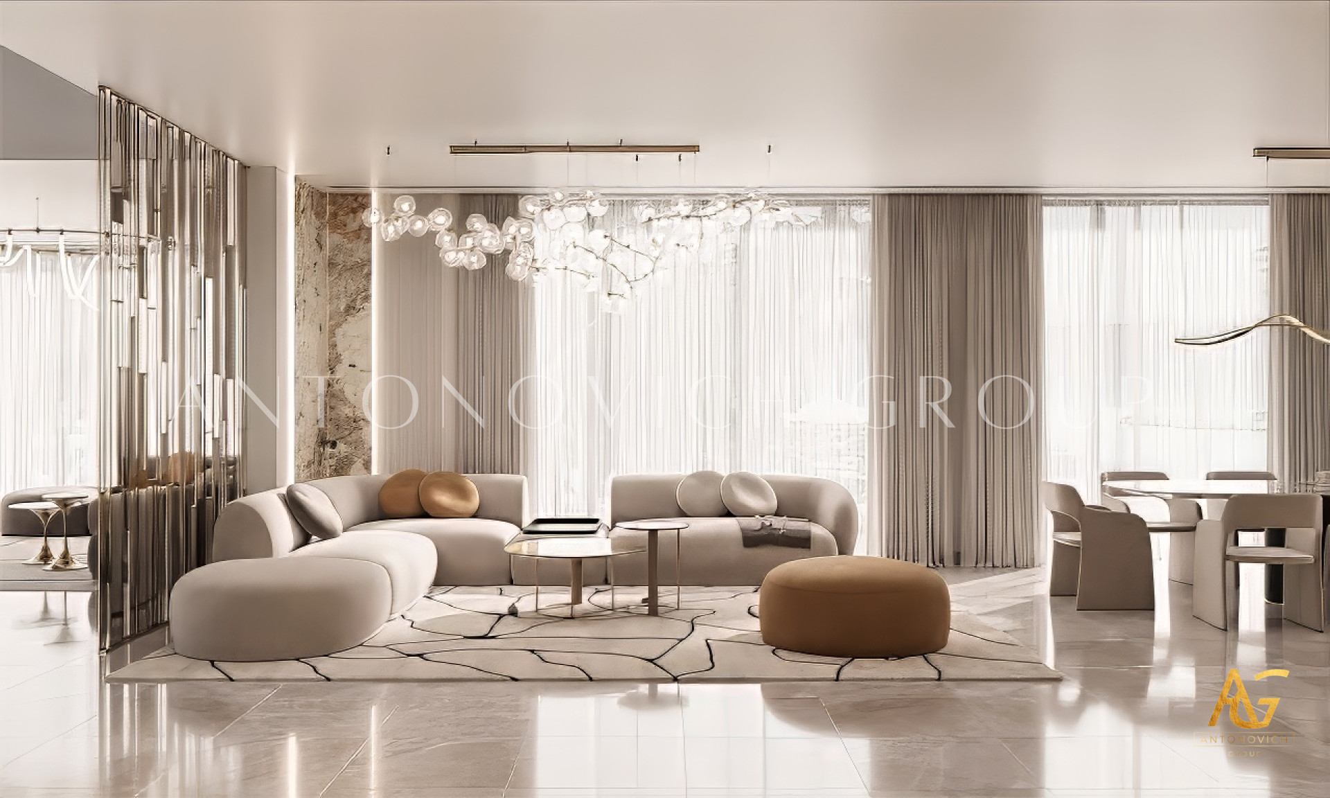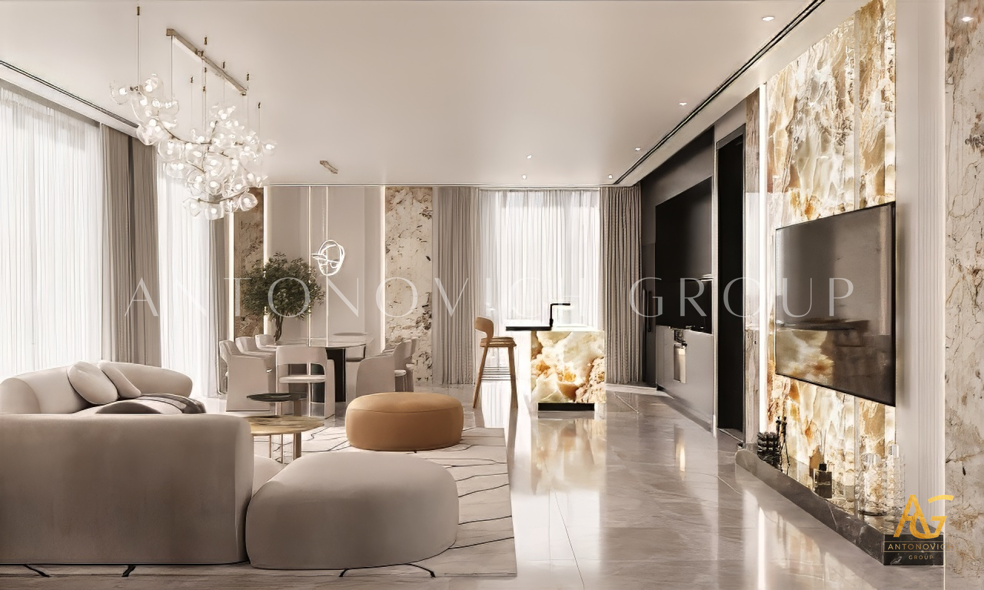 Antonovich Group has established itself as a trusted name in the field of luxury interior design and fit-out services in Dubai. With years of expertise, an international portfolio, and a team of world-class designers, we are dedicated to creating living rooms that embody modern elegance and comfort. We take pride in offering bespoke interior design solutions that reflect each client’s individuality. Whether it’s a sleek, minimalist concept or a luxurious contemporary style, our team ensures that every project reflects timeless beauty and modern sophistication.