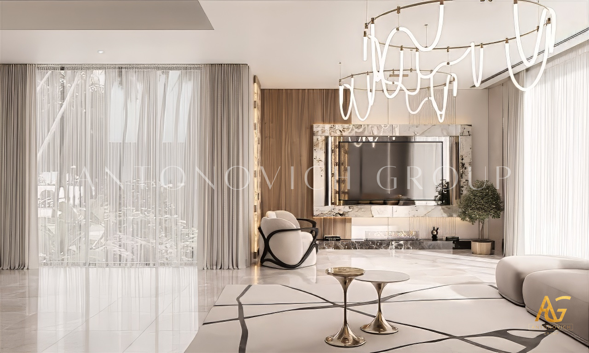 Modern design is characterized by clean lines, open layouts, and a harmonious balance between aesthetics and functionality. At Antonovich Group, our design philosophy embraces simplicity while integrating luxury elements that elevate the overall atmosphere. From bespoke furniture to premium materials and finishes, every piece is carefully curated to achieve a space that is both welcoming and refined. Lighting plays a crucial role in our modern living room interior design. Our designers incorporate architectural lighting solutions, accent fixtures, and natural light optimization to enhance the ambiance. This creates a living room that feels spacious, warm, and visually stunning.