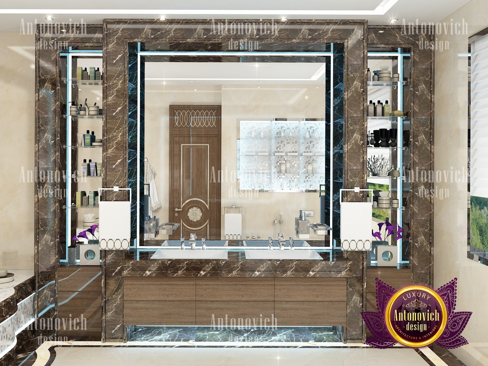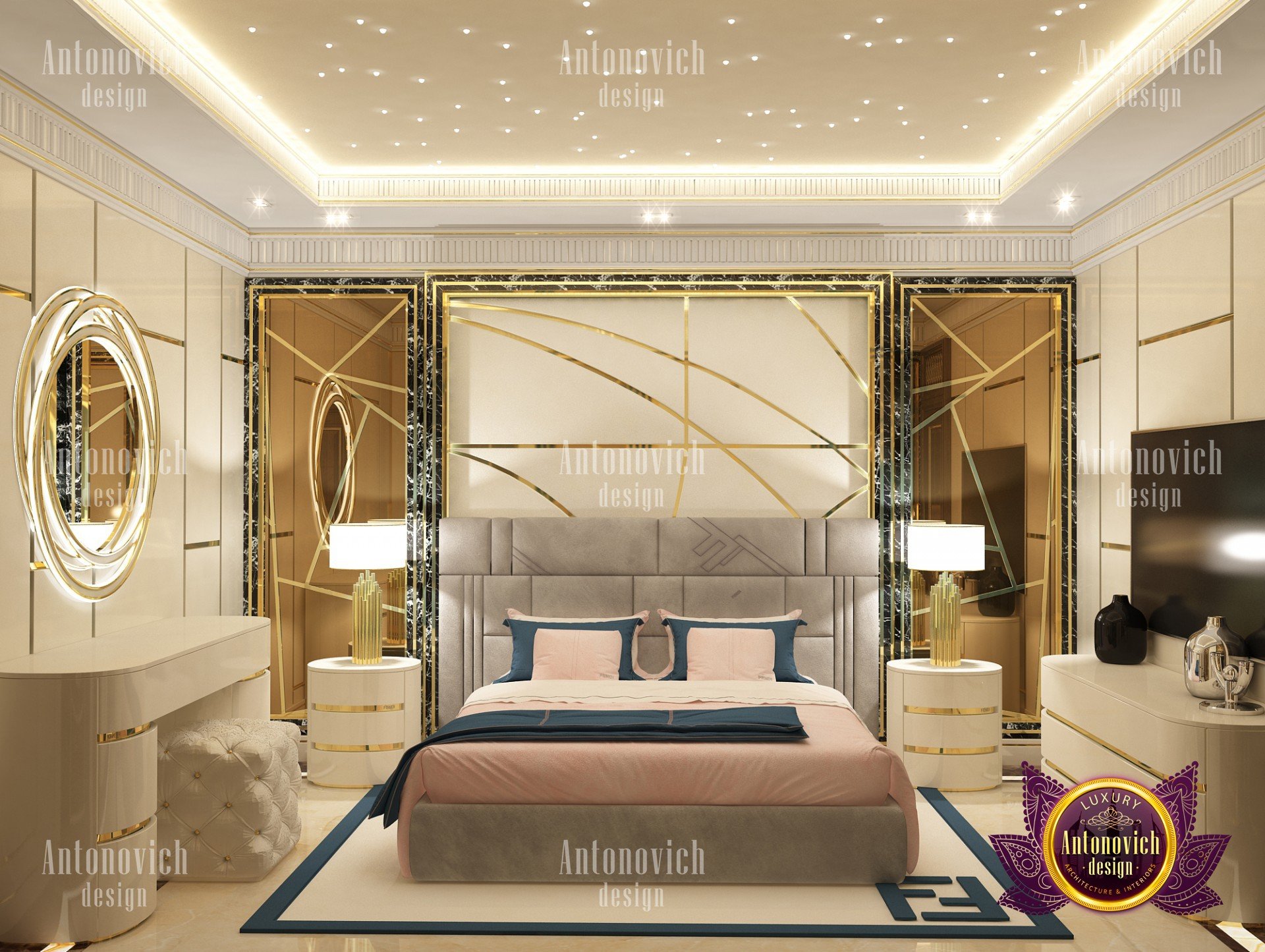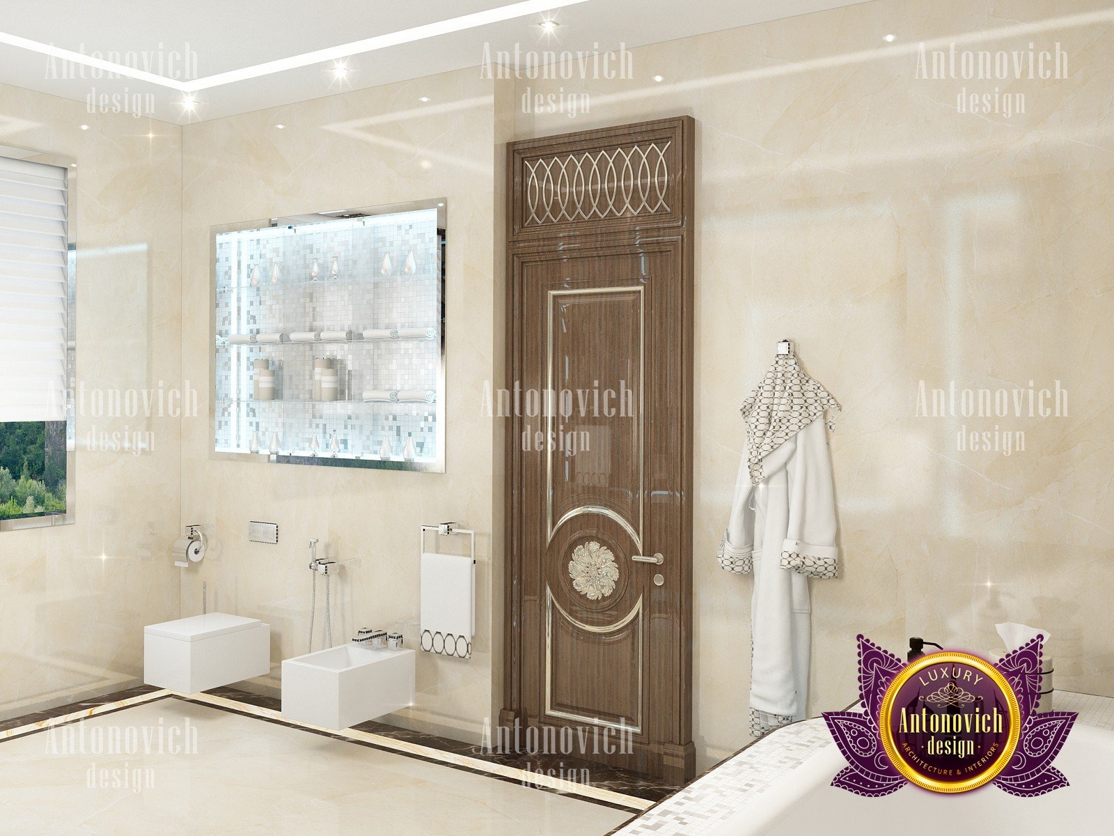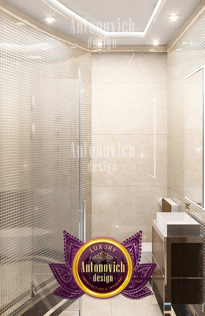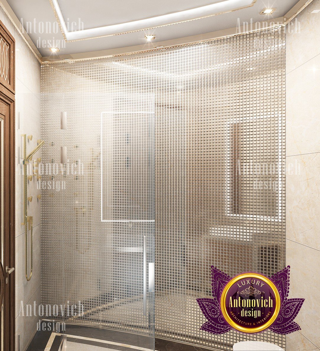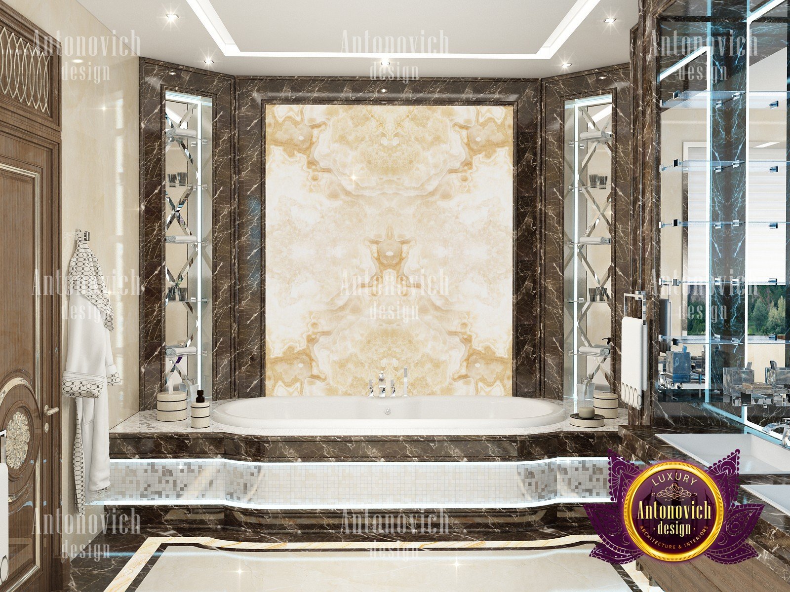 The villa interior design from the studio Luxury Antonovich Design is a deep and multi-faceted concept. To create for its customers an ideal habitat and an interior that will be a source of pride, we go beyond the ordinary and accurately track new trends in interior design and new technologies. Traditional classics in the authors works of interior designers and luxury become particularly expressive. The villa interior design from the first minute of your stay in the house adjusts to the wonderful feeling of warmth of home comfort. In the hall a luxury marble staircase is decorated with elegant wrought-iron balustrades and a spectacular touch in the form of a mirror panel with bevel. The staircase looks dignified surrounded by carved marble floors. In the walls decor there is precious wood, mirrors and carved decoration with gold. A ceiling is decorated with the traditional crystal chandelier, surrounded by swirls of stucco decoration. Luxury gloss filled every corner of the house. Bathroom design is all about glitter of gold and richly decorated walls. Spacious dressing room has a cozy image and an excellent functionality. Villa design project takes into account all the wishes of its owners. Interior designers have created a project in the best traditions of modern classics. You can enjoy every corner of the house forever. In the kitchen interior classical furniture with carved decoration looks charmingly. A highlight of the interior became pelmets made of natural wood with carved decoration and gilding. Bedroom design continues luxurious mood of the villa interior.