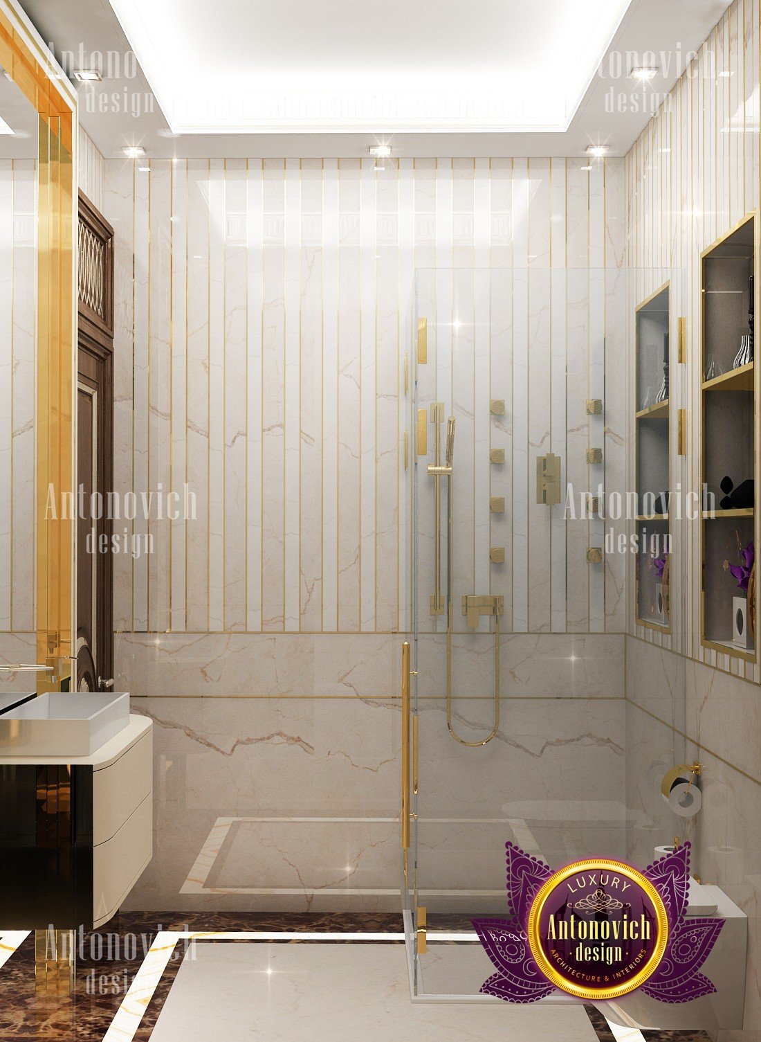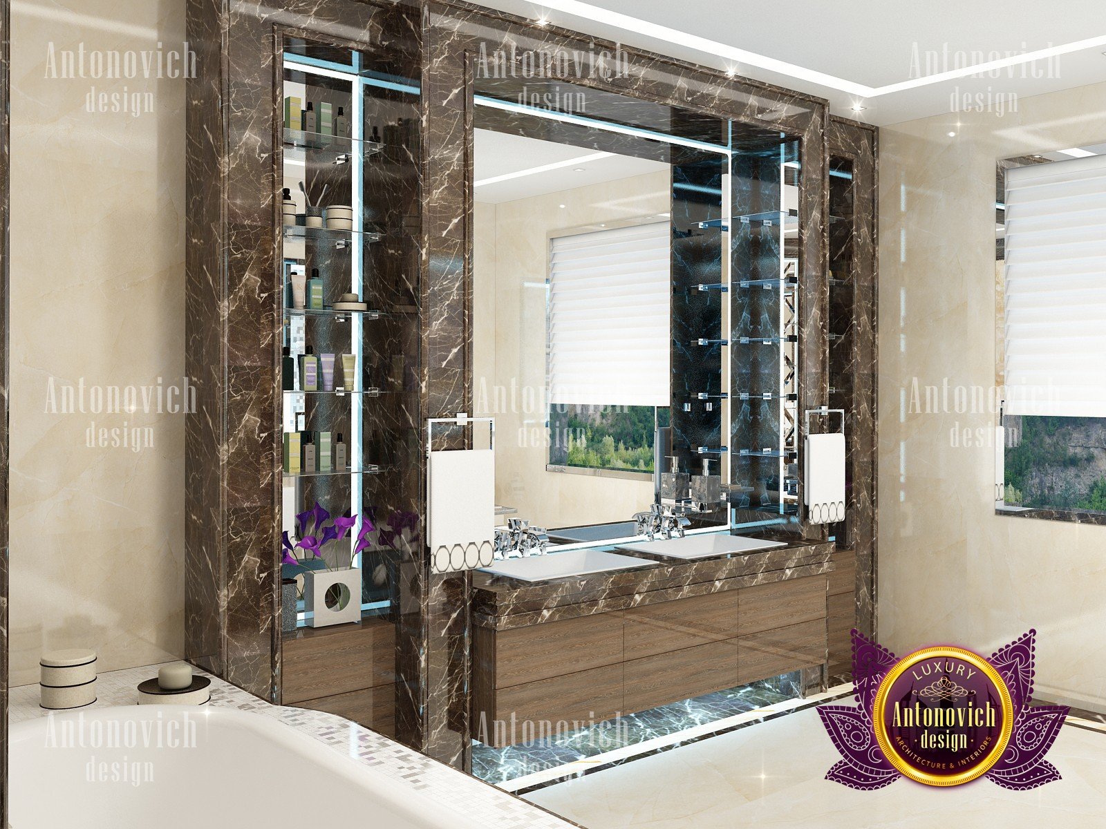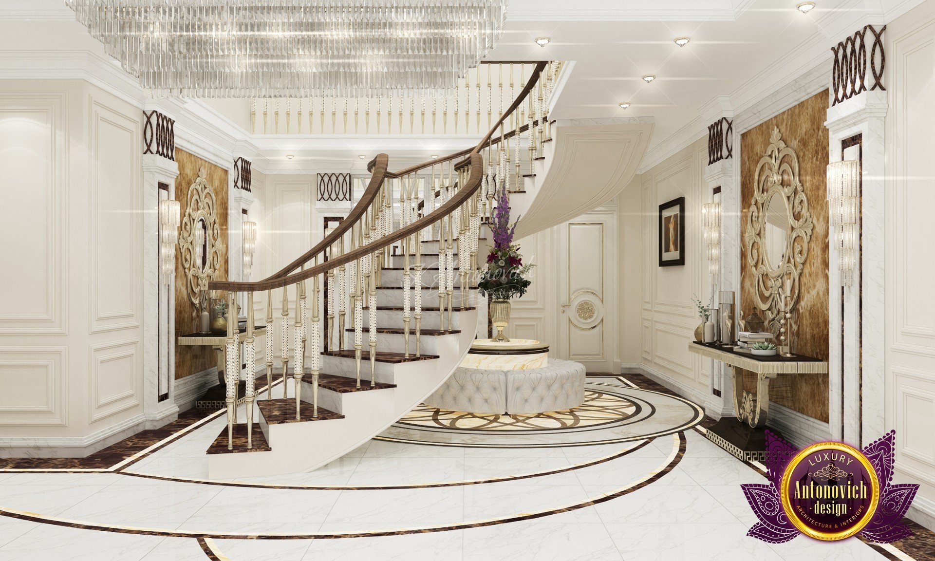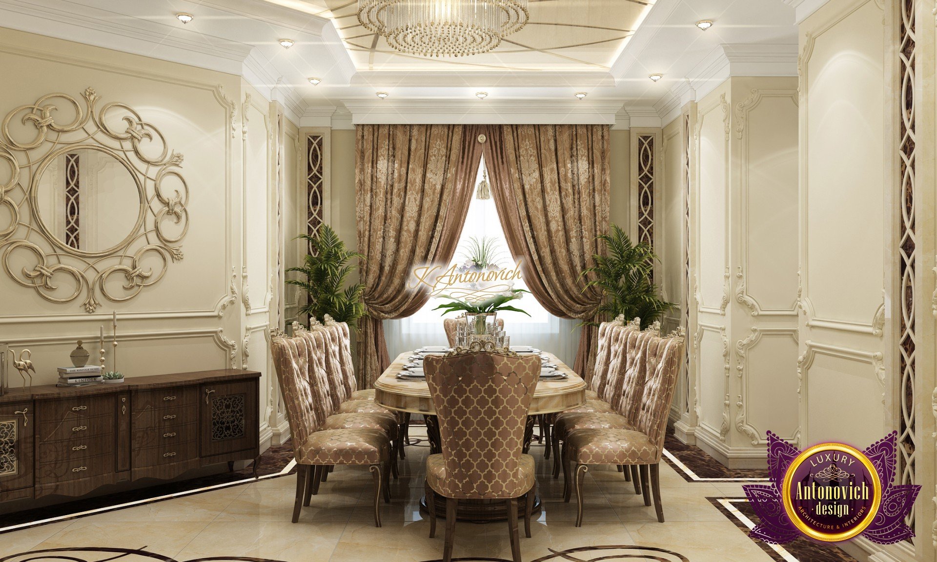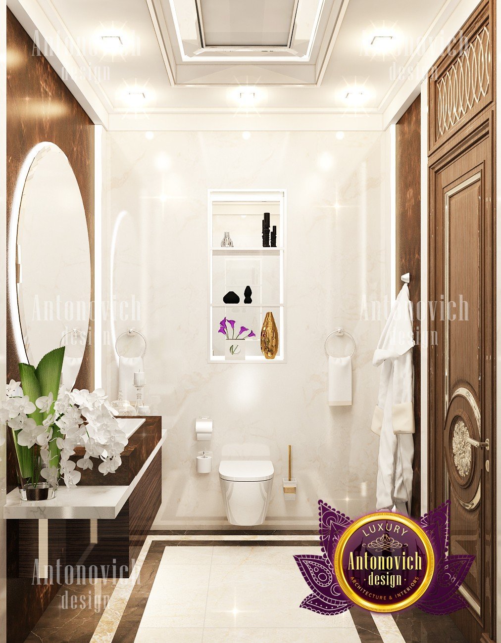 The villa interior design from the studio Luxury Antonovich Design is a deep and multi-faceted concept. To create for its customers an ideal habitat and an interior that will be a source of pride, we go beyond the ordinary and accurately track new trends in interior design and new technologies. Traditional classics in the authors works of interior designers and luxury become particularly expressive. The villa interior design from the first minute of your stay in the house adjusts to the wonderful feeling of warmth of home comfort. In the hall a luxury marble staircase is decorated with elegant wrought-iron balustrades and a spectacular touch in the form of a mirror panel with bevel. The staircase looks dignified surrounded by carved marble floors. In the walls decor there is precious wood, mirrors and carved decoration with gold. A ceiling is decorated with the traditional crystal chandelier, surrounded by swirls of stucco decoration. Luxury gloss filled every corner of the house. Bathroom design is all about glitter of gold and richly decorated walls. Spacious dressing room has a cozy image and an excellent functionality. Villa design project takes into account all the wishes of its owners. Interior designers have created a project in the best traditions of modern classics. You can enjoy every corner of the house forever. In the kitchen interior classical furniture with carved decoration looks charmingly. A highlight of the interior became pelmets made of natural wood with carved decoration and gilding. Bedroom design continues luxurious mood of the villa interior.