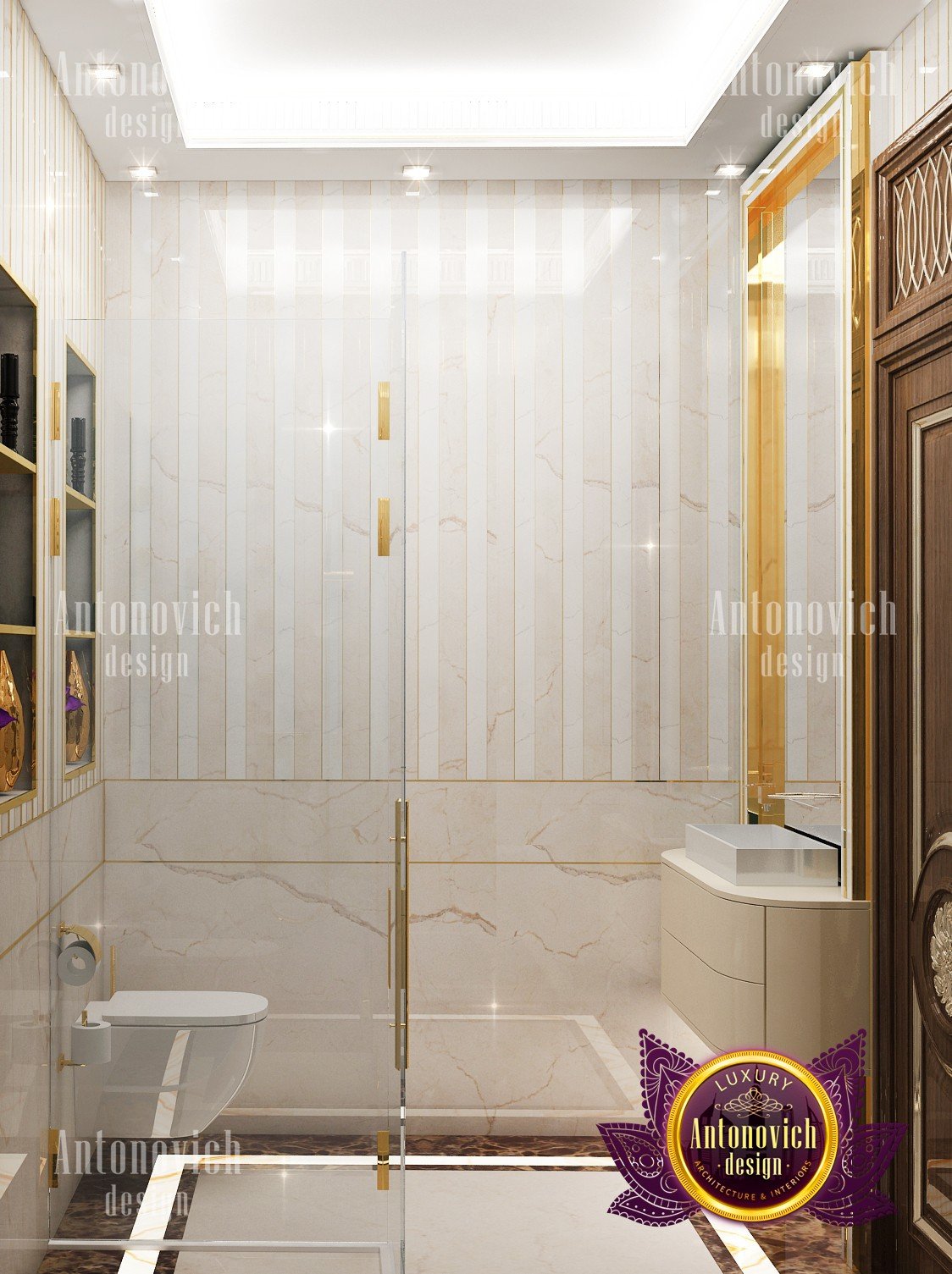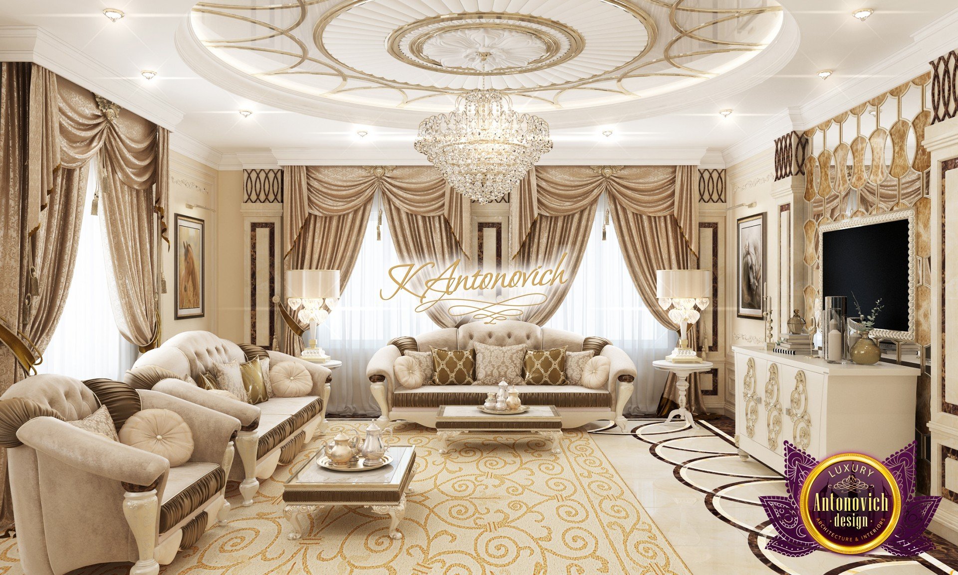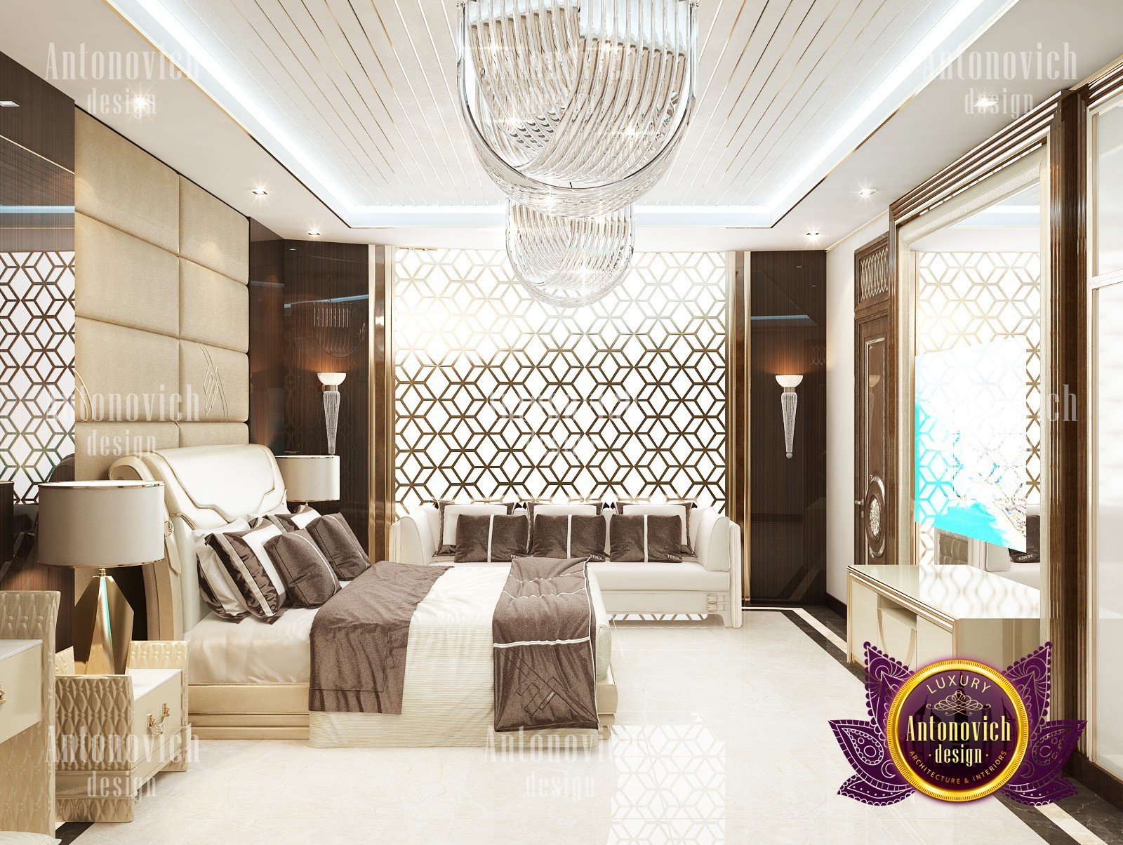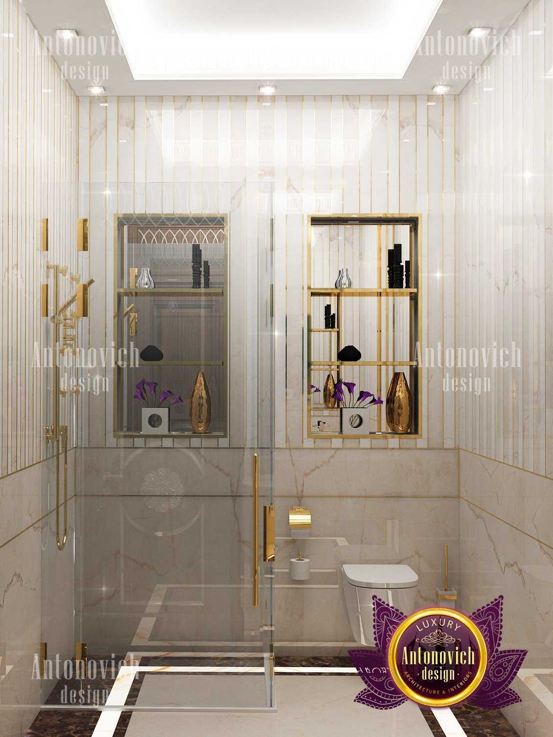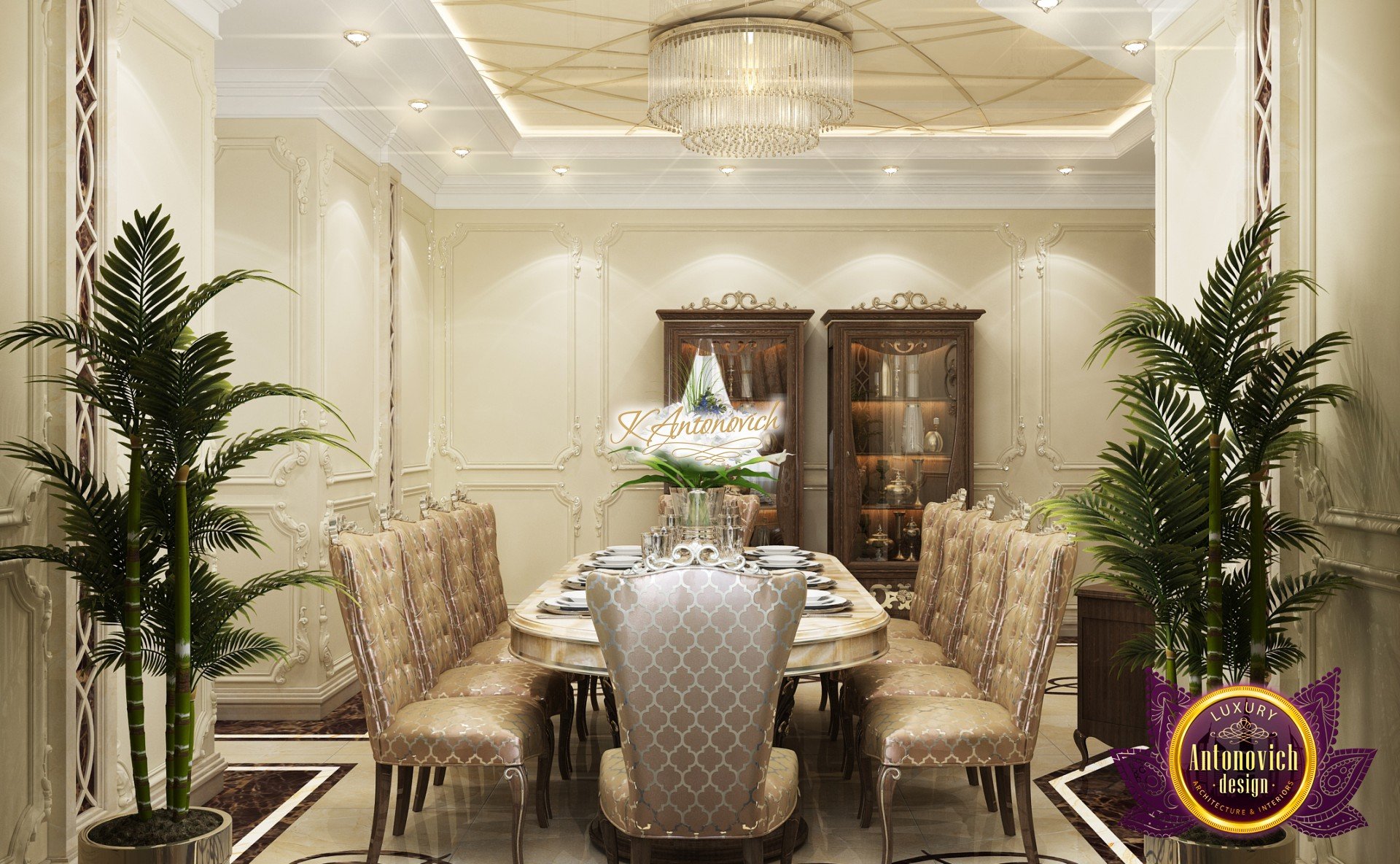 The villa interior design from the studio Luxury Antonovich Design is a deep and multi-faceted concept. To create for its customers an ideal habitat and an interior that will be a source of pride, we go beyond the ordinary and accurately track new trends in interior design and new technologies. Traditional classics in the authors works of interior designers and luxury become particularly expressive. The villa interior design from the first minute of your stay in the house adjusts to the wonderful feeling of warmth of home comfort. In the hall a luxury marble staircase is decorated with elegant wrought-iron balustrades and a spectacular touch in the form of a mirror panel with bevel. The staircase looks dignified surrounded by carved marble floors. In the walls decor there is precious wood, mirrors and carved decoration with gold. A ceiling is decorated with the traditional crystal chandelier, surrounded by swirls of stucco decoration. Luxury gloss filled every corner of the house. Bathroom design is all about glitter of gold and richly decorated walls. Spacious dressing room has a cozy image and an excellent functionality. Villa design project takes into account all the wishes of its owners. Interior designers have created a project in the best traditions of modern classics. You can enjoy every corner of the house forever. In the kitchen interior classical furniture with carved decoration looks charmingly. A highlight of the interior became pelmets made of natural wood with carved decoration and gilding. Bedroom design continues luxurious mood of the villa interior.