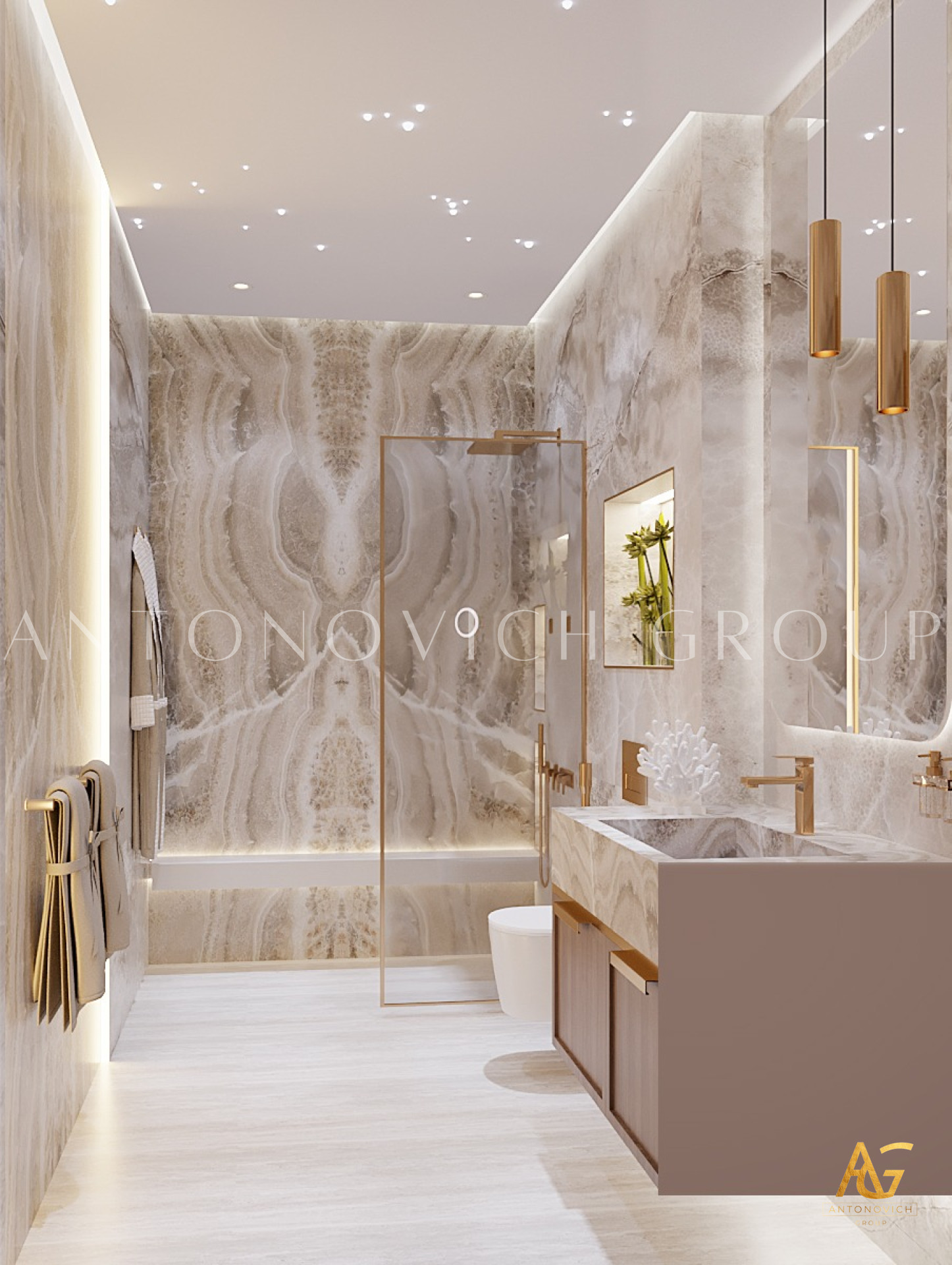 The apartment interior decoration project at Al Habtoor by Antonovich Group stands as a masterpiece of modern luxury living. Through a comprehensive renovation, the design team transformed the space into an elegant sanctuary that perfectly balances sophistication with comfort. The fitout furniture apartment selection showcases Antonovich Group's expertise in curating bespoke pieces that complement the space's architectural features. Each room received careful attention, from the living area's custom-designed seating to the bedroom's tailored storage solutions. The designers incorporated premium materials like Italian marble, brushed gold accents, and hand-selected textiles to create an atmosphere of refined luxury.