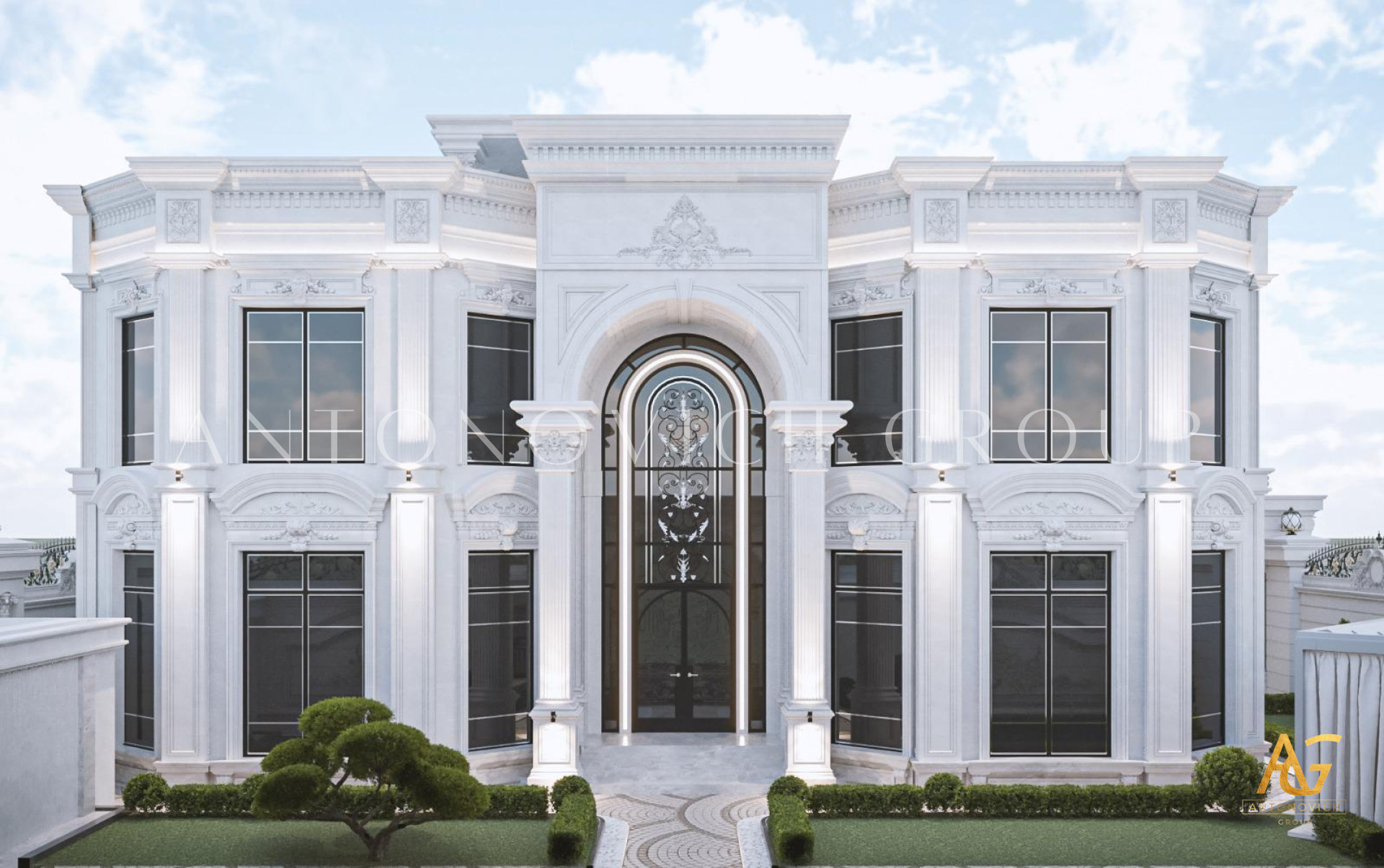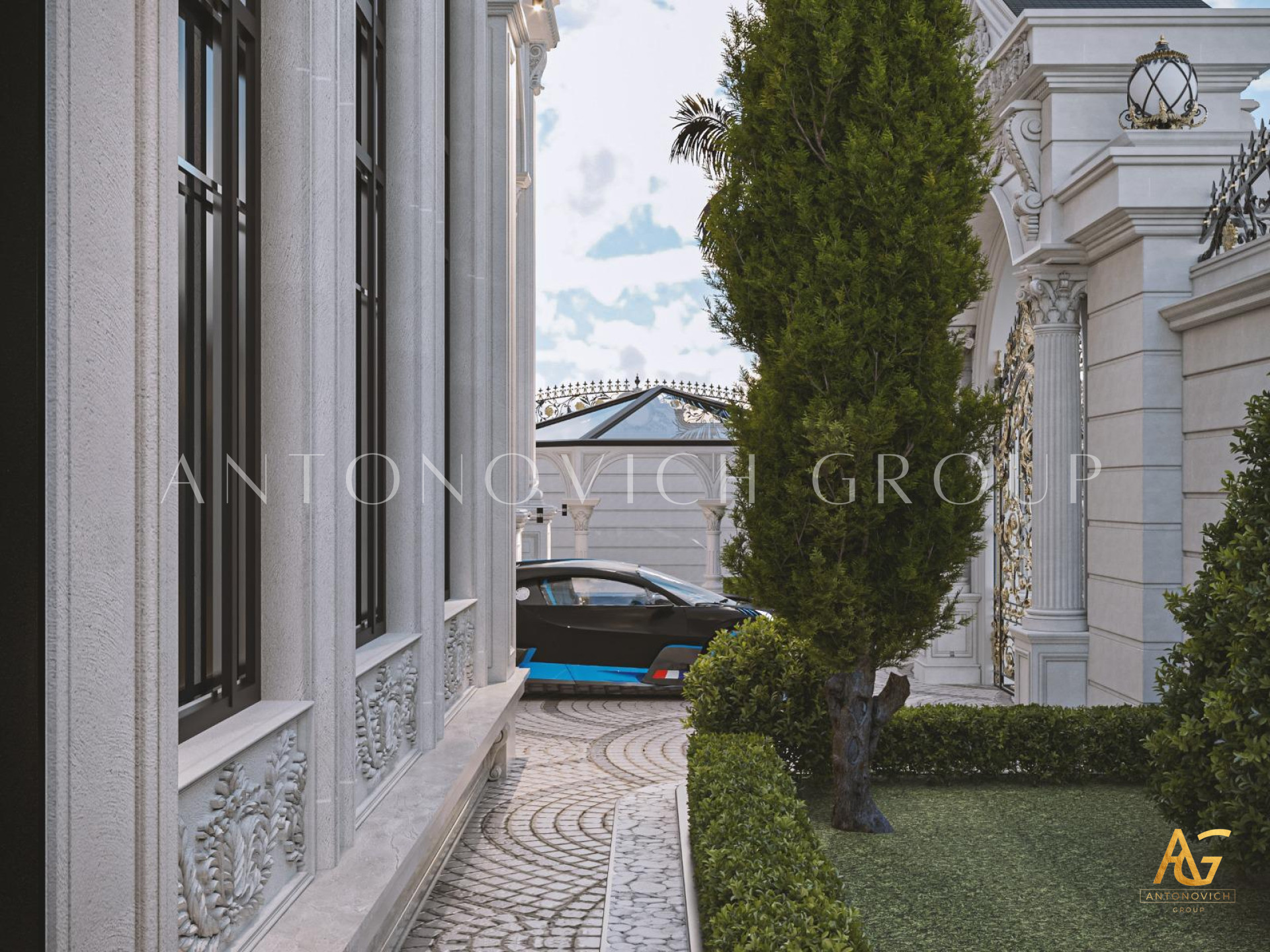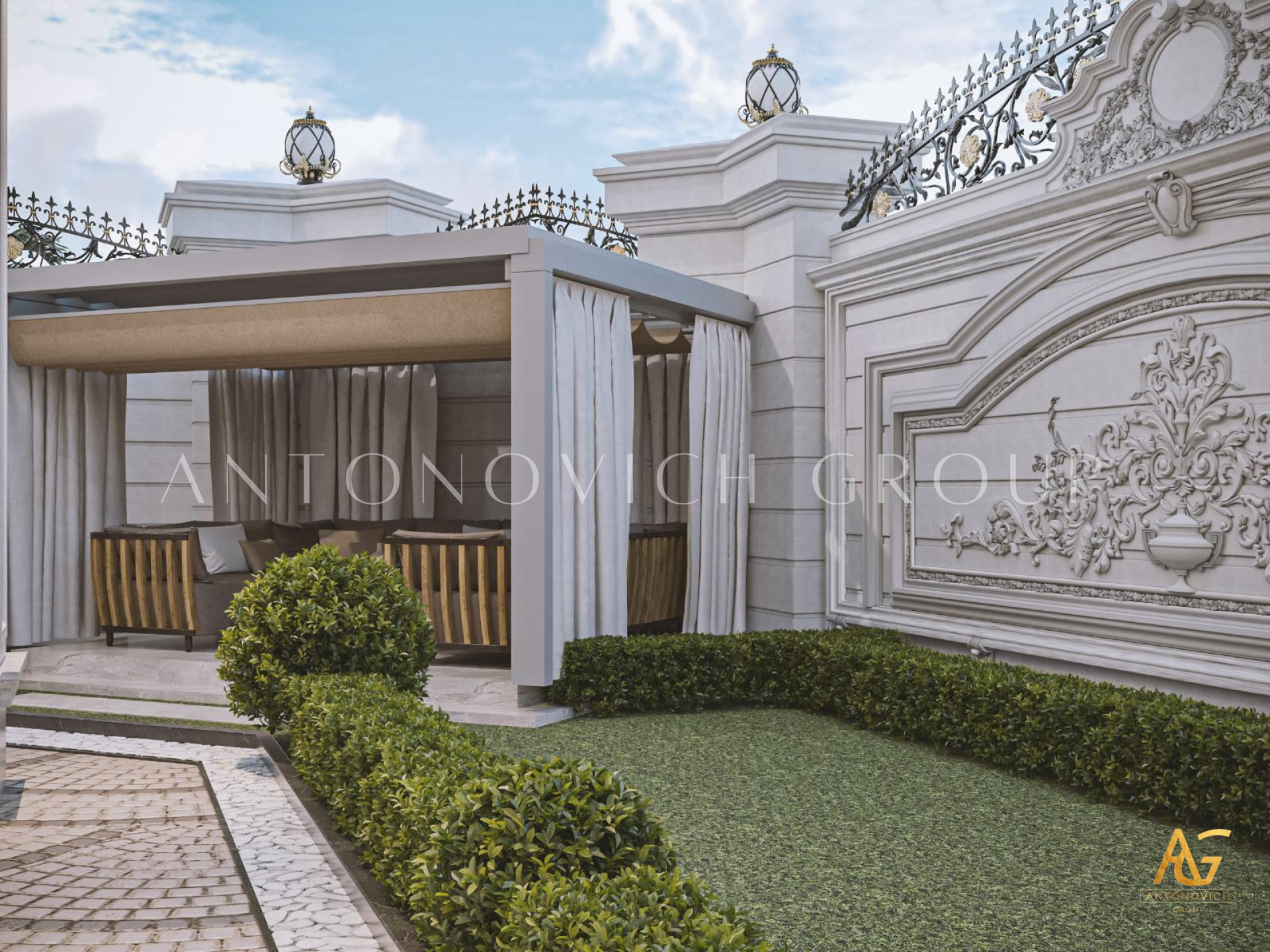 The façade design from the design studio in Dubai Luxury Antonovich Design becomes a luxurious decor, followed by a continuation in the form of a magnificent interior. The art of interior of designers is the ability to combine interior and exterior design in such a way as to achieve absolute harmony. The façade design combines modern classics and enchanting notes of oriental style. The flat structure of the building, which has a one-story structure was the highlight of this luxurious project. Interior Designers Dubai create a lush and graceful appearance of the building using decorative elements such as balustrades, decorative vases, pilasters, columns and carved decoration. The entrance portal of the building is decorated with a large outdoor terrace with arched roof. Arches completed graceful columns with stucco capitals. This design is crowned with a triangular pediment with exquisite bas-relief. Villa exterior design perfectly reflects the high status of the owner and their great taste. The whole villa design in Dubai reflects the perfect combination of traditional architecture and innovative ideas of designers. The vila facade design differs with aesthetic perfection and harmony. The front pediment is followed by small decorative gables above each window. In this way the interior designers visually lengthened the window, making the appearance of the building more sublime and graceful. Slight accent of oriental style became bas-relief with the corresponding ornaments. Villa design Dubai is a comprehensive approach that included interior design, exterior design and landscaping.
