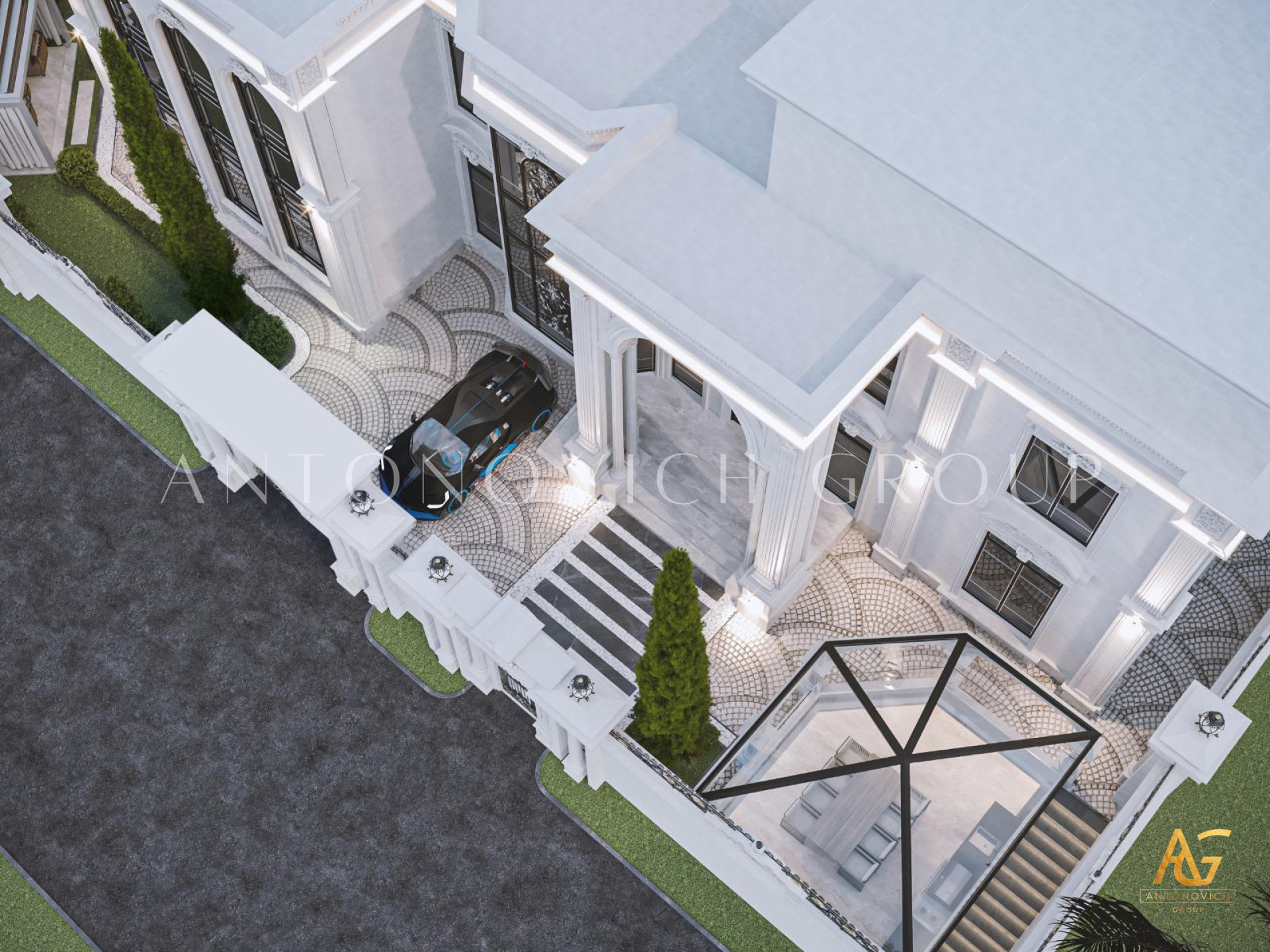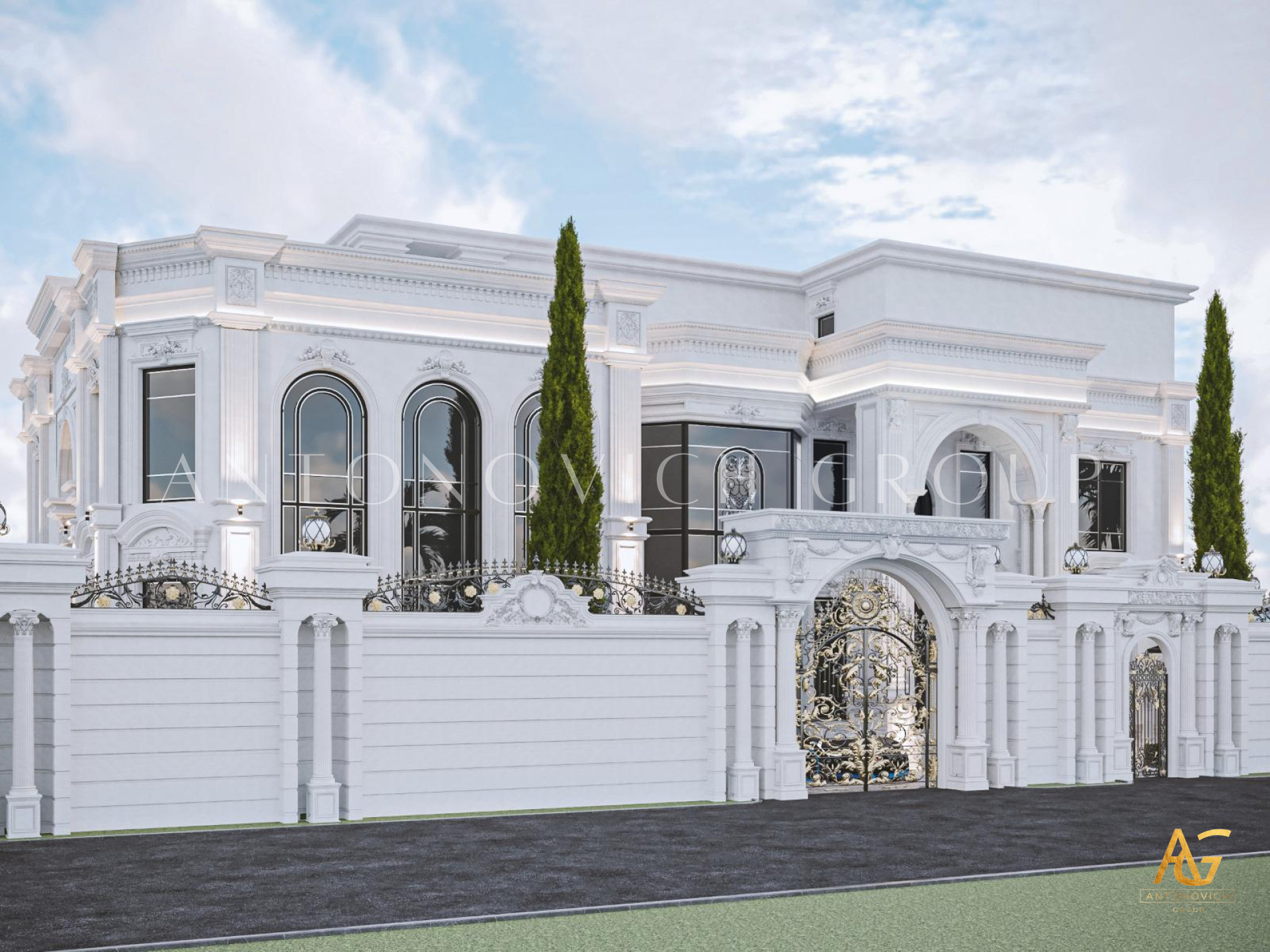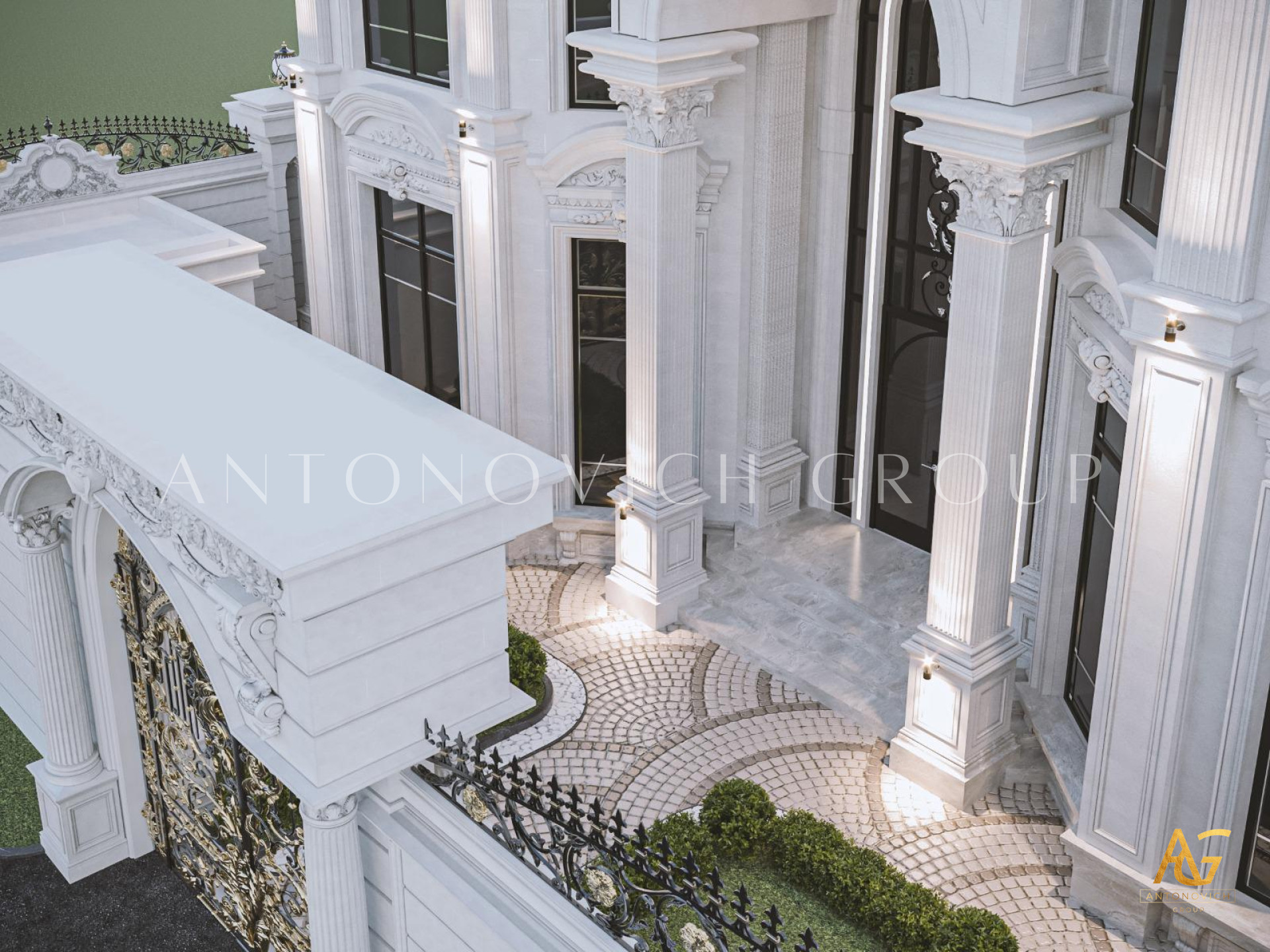 The façade design from the design studio in Dubai Luxury Antonovich Design becomes a luxurious decor, followed by a continuation in the form of a magnificent interior. The art of interior of designers is the ability to combine interior and exterior design in such a way as to achieve absolute harmony. The façade design combines modern classics and enchanting notes of oriental style. The flat structure of the building, which has a one-story structure was the highlight of this luxurious project. Interior Designers Dubai create a lush and graceful appearance of the building using decorative elements such as balustrades, decorative vases, pilasters, columns and carved decoration. The entrance portal of the building is decorated with a large outdoor terrace with arched roof. Arches completed graceful columns with stucco capitals. This design is crowned with a triangular pediment with exquisite bas-relief. Villa exterior design perfectly reflects the high status of the owner and their great taste. The whole villa design in Dubai reflects the perfect combination of traditional architecture and innovative ideas of designers. The vila facade design differs with aesthetic perfection and harmony. The front pediment is followed by small decorative gables above each window. In this way the interior designers visually lengthened the window, making the appearance of the building more sublime and graceful. Slight accent of oriental style became bas-relief with the corresponding ornaments. Villa design Dubai is a comprehensive approach that included interior design, exterior design and landscaping.