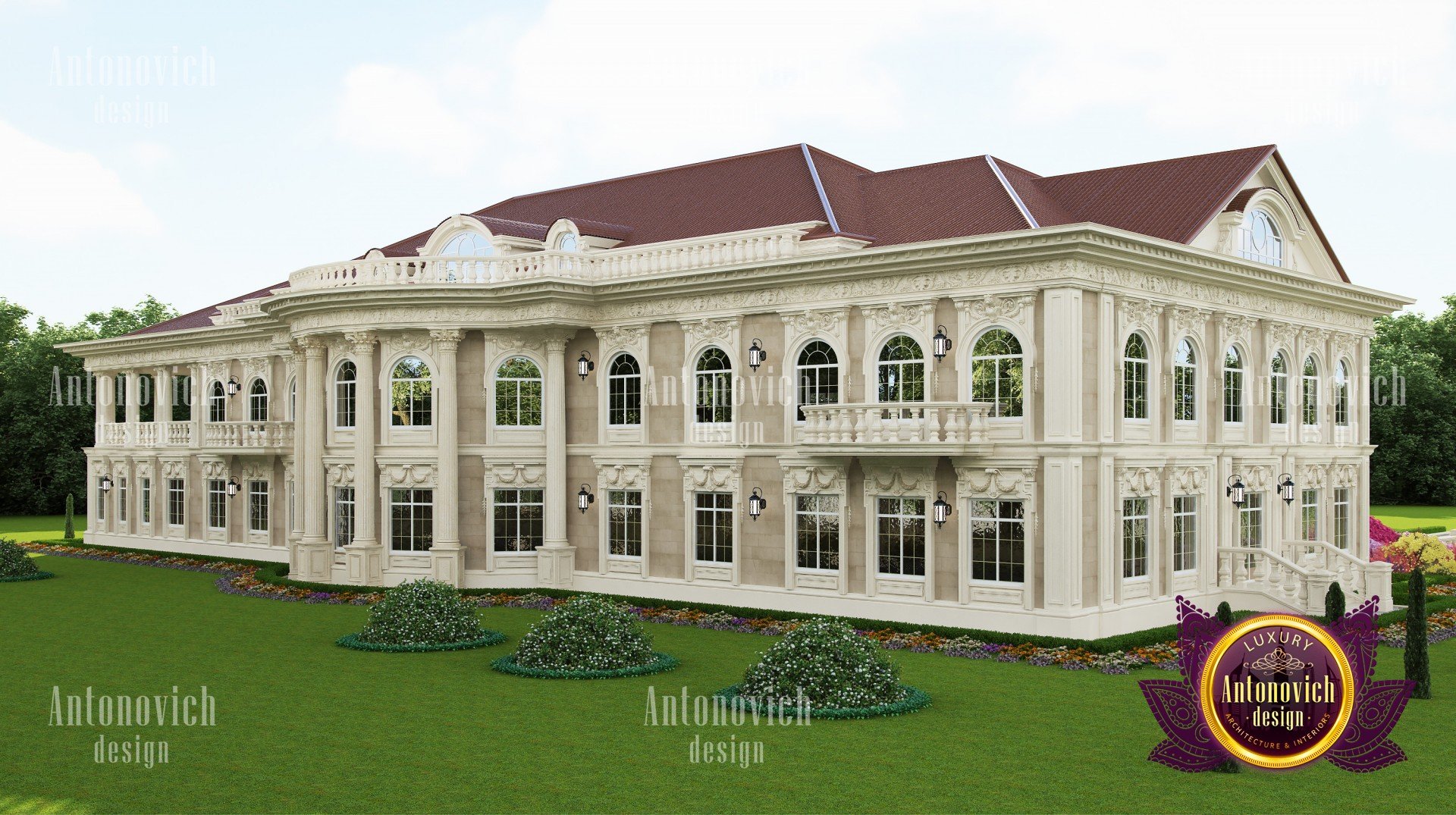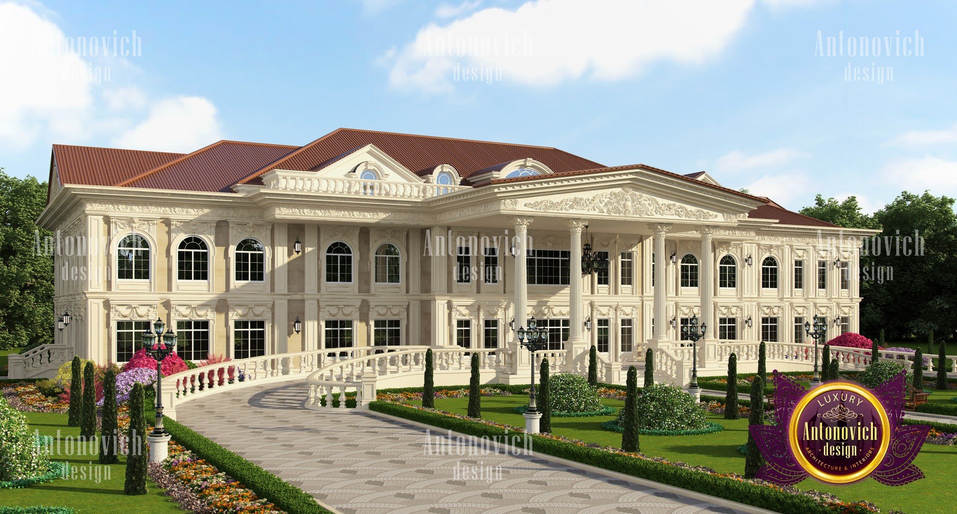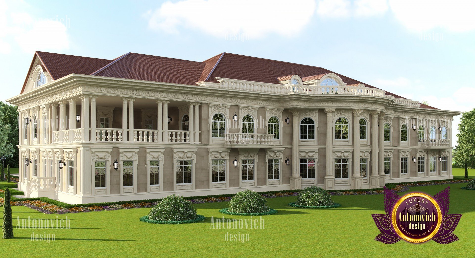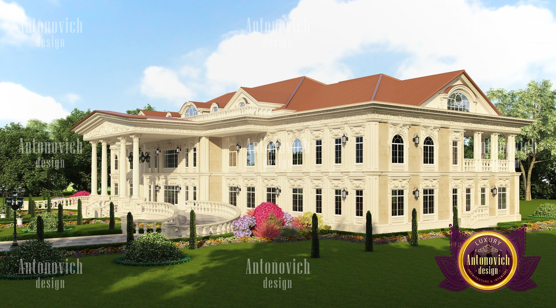 The villa design Abu Dhabi has become one of the jewels in the number of luxury projects of design studio Luxury Antonovich Design. The facade design of the building became the basis of a nice visual impression of the object. This impression is based on the perfect forms and graceful contours of the building. Interior Designer Dubai uses traditional elements of the building and completes their spectacular original solutions. The villa architectural design Abu Dhabi combines the tradition of modern classics and innovation technologies. The exterior design of the building has its own vivid character. Visually easy to define a central axis of the object. This central axis became dome roof made of transparent glass. In this part of the building there is a spacious hall with a staircase, which continues luxury apartment of the villa. The exterior design emphasizes that behind the lush exterior decoration of the villa there is magnificent interior decoration. The semicircular entrance portal is decorated by exquisite pediment with bas-relief. Dubai Interior designers create unique beautiful designs, artfully combining materials, textures, colors and other aspects. Paying attention to the location of the building concerning cardinal directions, the authors with the help of home decor emphasize the play of light. Using such techniques, the designers made bright and expressive images in each project. Lush look of the building further is emphasized with luxury decorative vases that are placed around the perimeter of the roof. Open terrace on the roof is protected with exquisite balustrades.