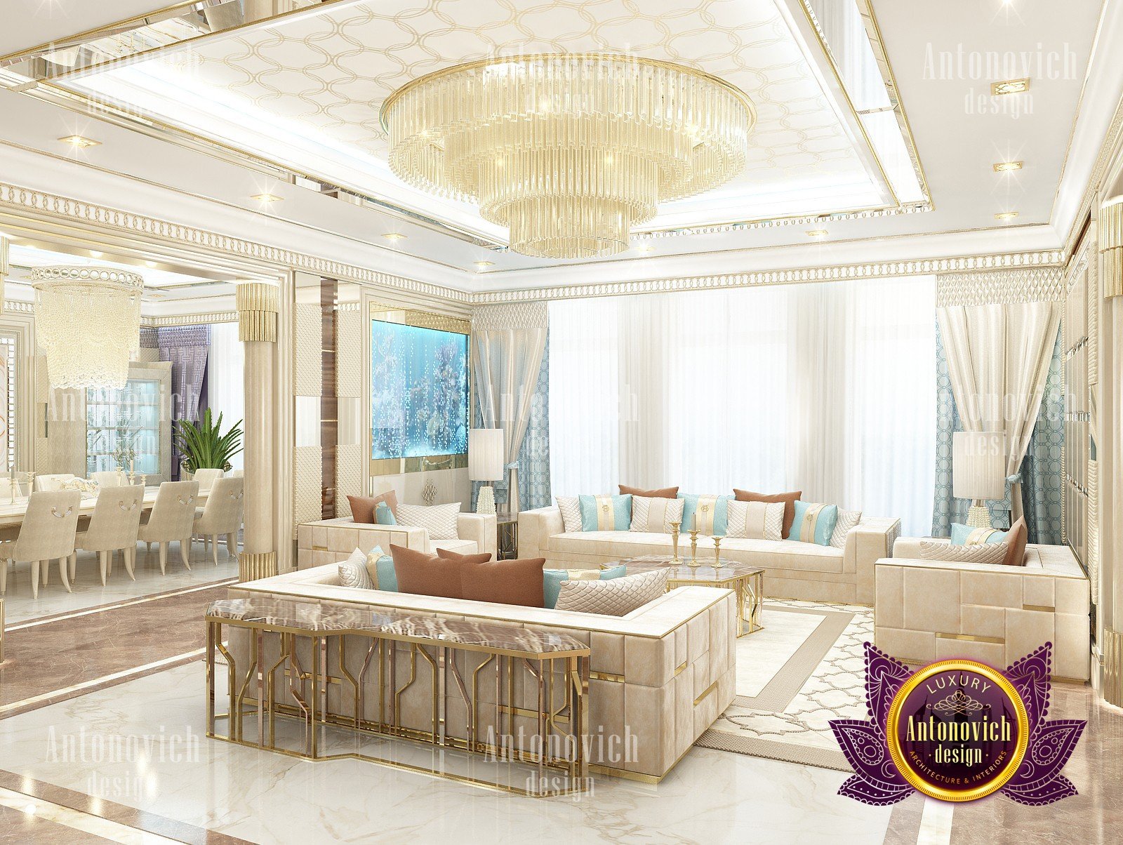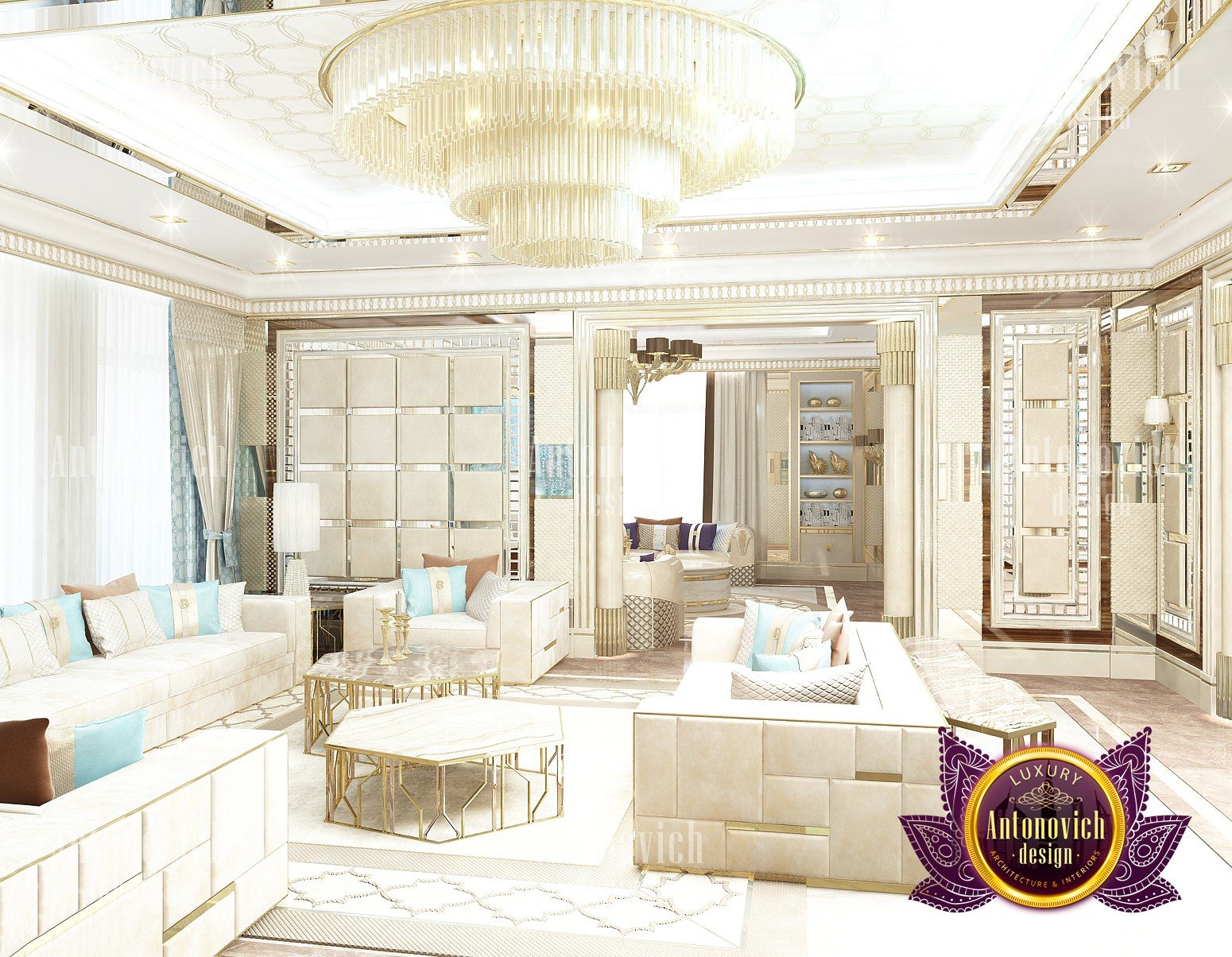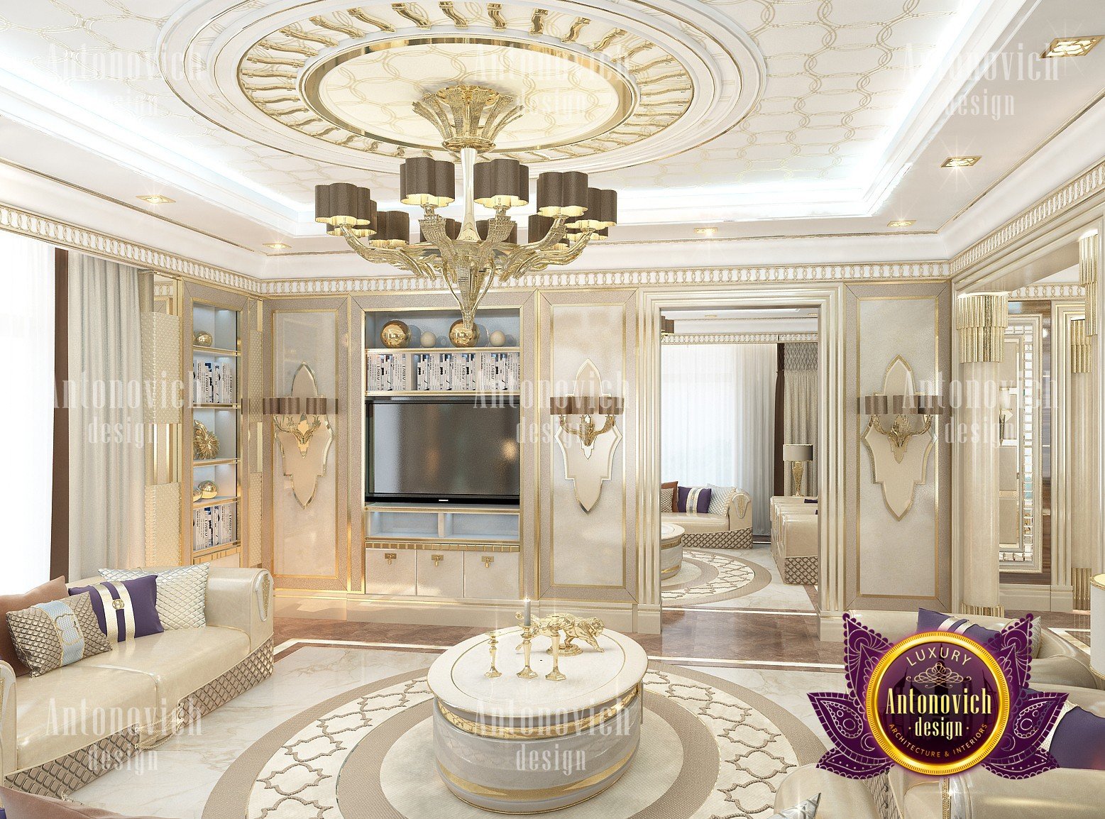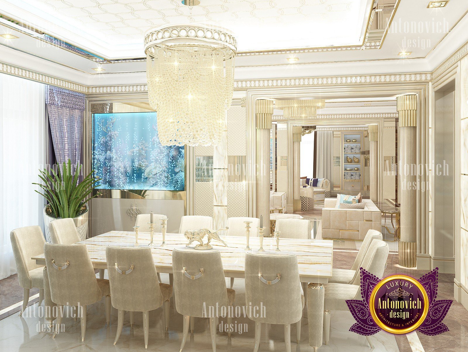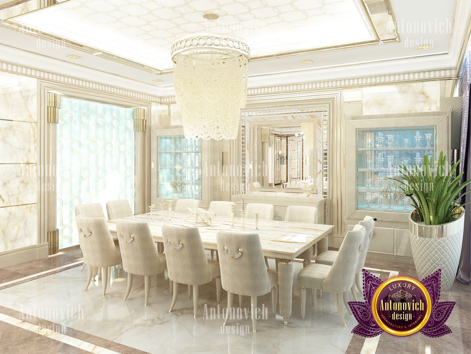Interior design in a modern style was designed by the studio Luxury Antonovich Design for one of the villas in Dubai. Amazing laconic interior adjusts to the serenity and pleasant stay in a comfortable environment. The villa design Dubai is full of spectacular solutions of talented interior designers. Living room and dining room are a complete image. And most importantly, the basis of this unity became a spectacular ceiling design. Daring design techniques give the house interior in Dubai originality and bright personality. The basis of the ceiling is an array of dark wood, which continues on one wall in the living room. To compensate for the dark color of the wood and give it a refined element of decoration visual lightness, interior designers use the line of LED backlighting and a snow-white edging of the element of decor with ceiling lights. Another effective method is a visual mirror image of soft sofas and coffee table in the living room. Light upholstery contrasts stylishly with dark paneling on the ceiling and parquet on the floor. Traditional chandelier in the interior is replaced with unique stylish lamps and sconces. The staircase leading to the second floor, elegantly dissolved in a cozy space, thanks to the railing made of transparent glass. House Design Dubai clearly repeats the tastes and preferences of home owners, their love of contemporary art and the desire to get a new experience in life. Interior Design Dubai becomes a kind of prophecy of the future in the design of the elite interiors.
