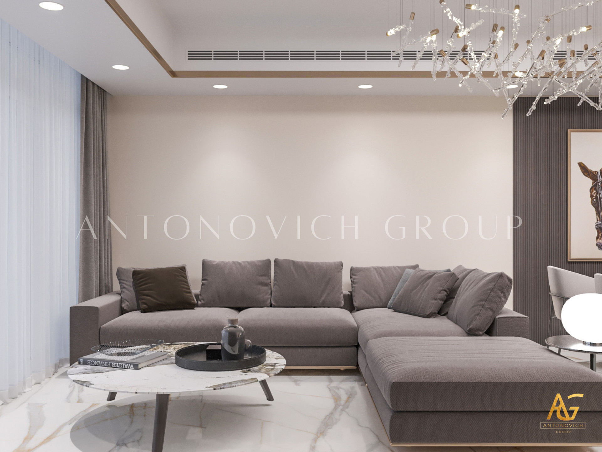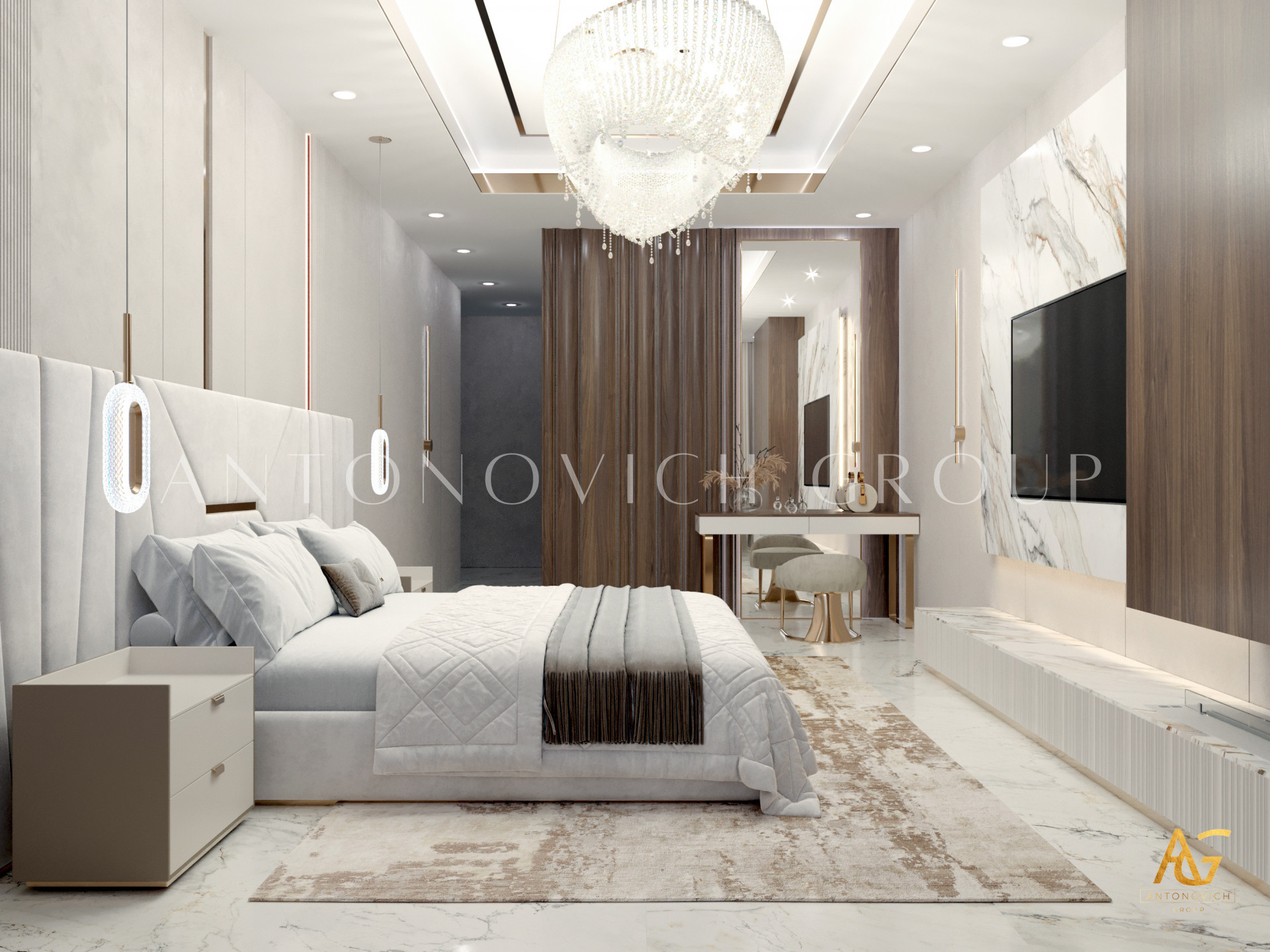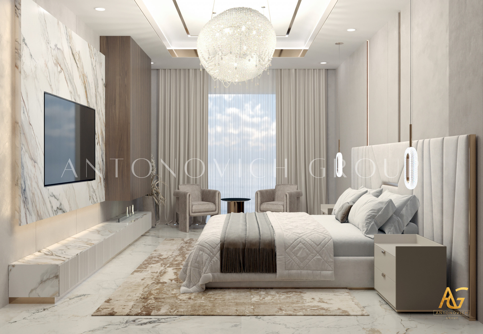 1. Elegant Interior Design: Antonovich Group has employed its signature design philosophy, focusing on creating spaces that are not only aesthetically pleasing but also practical. The interiors feature high-quality materials, stylish furnishings, and thoughtful layouts that maximize space and comfort.
