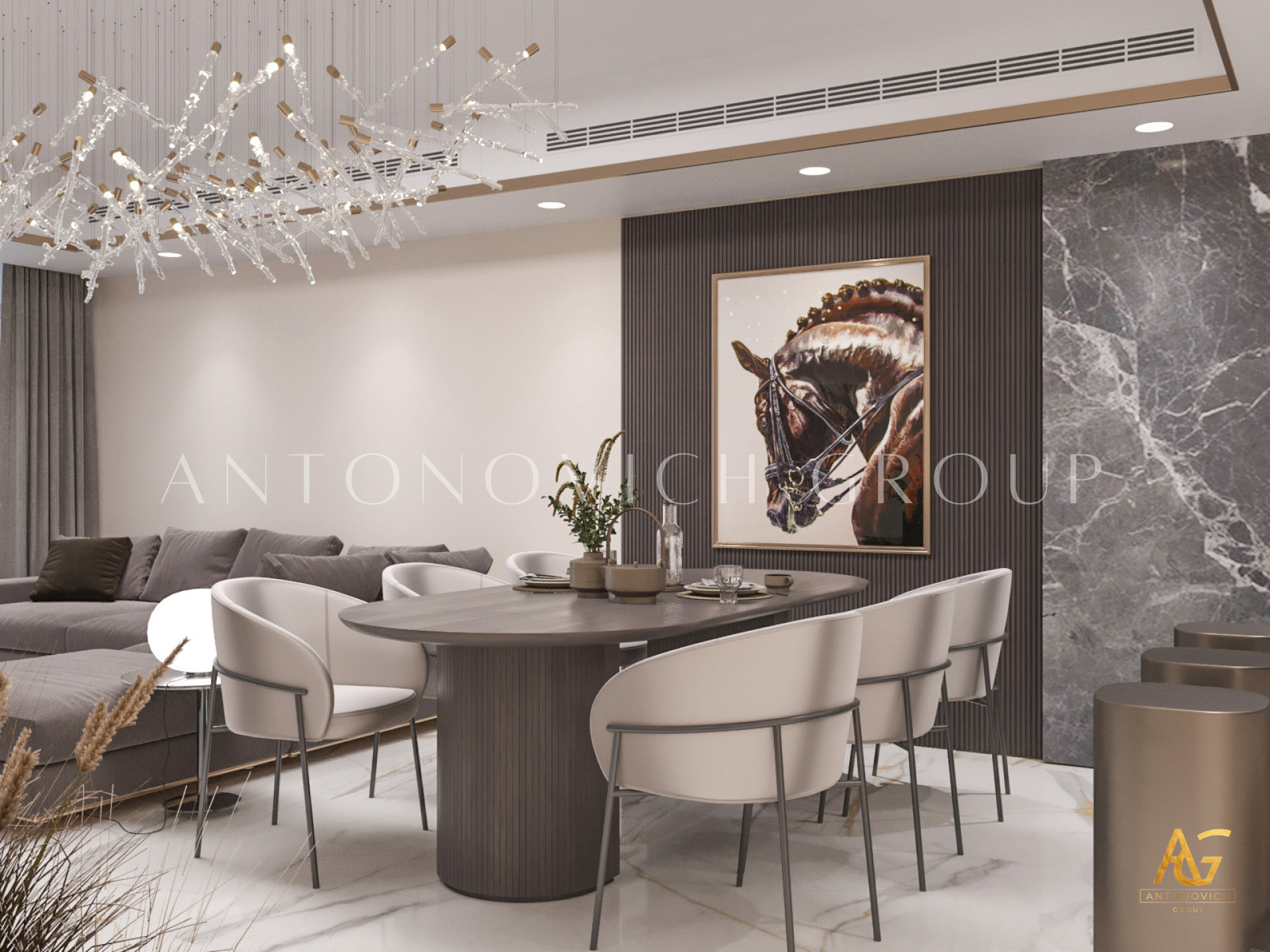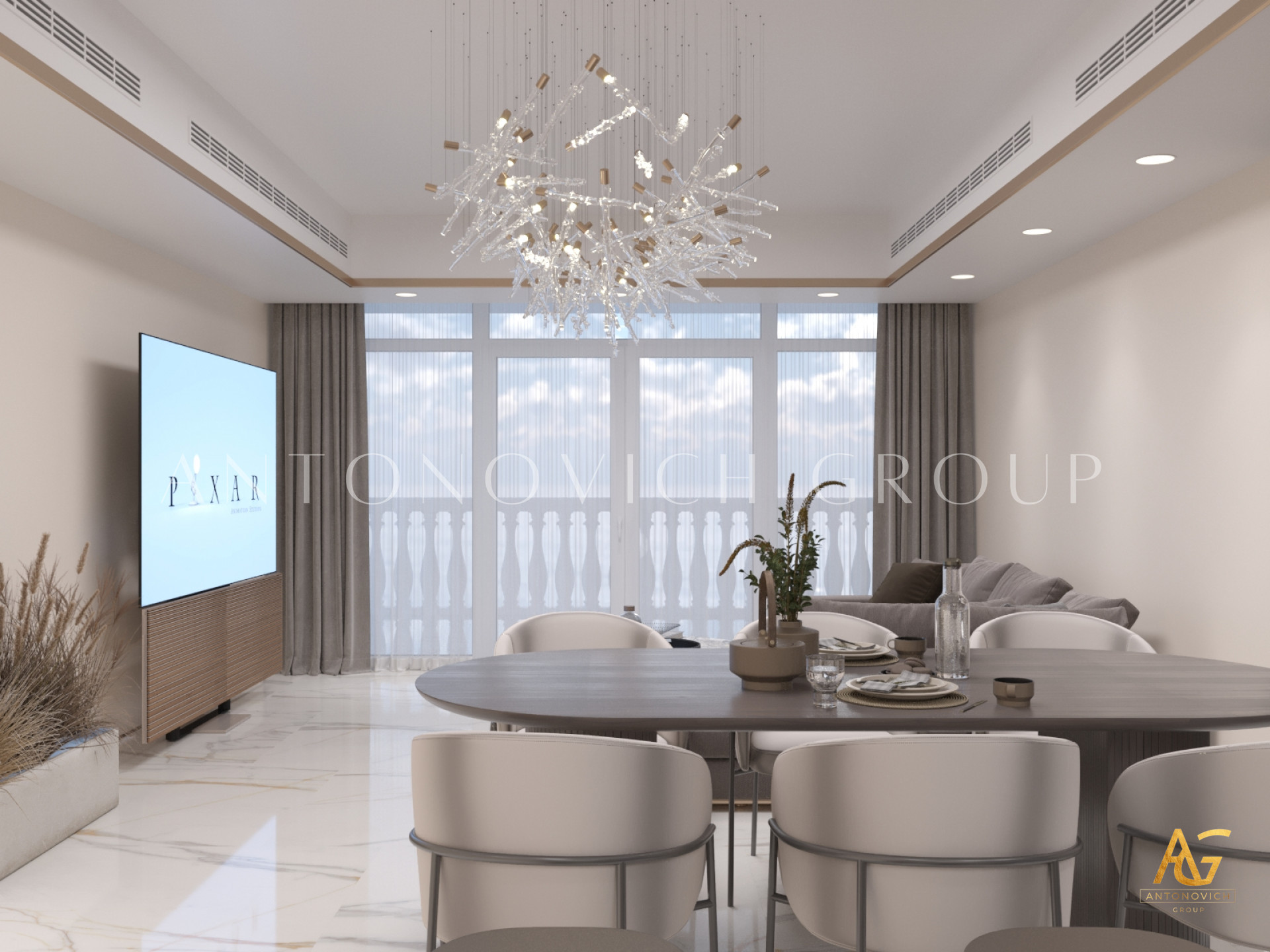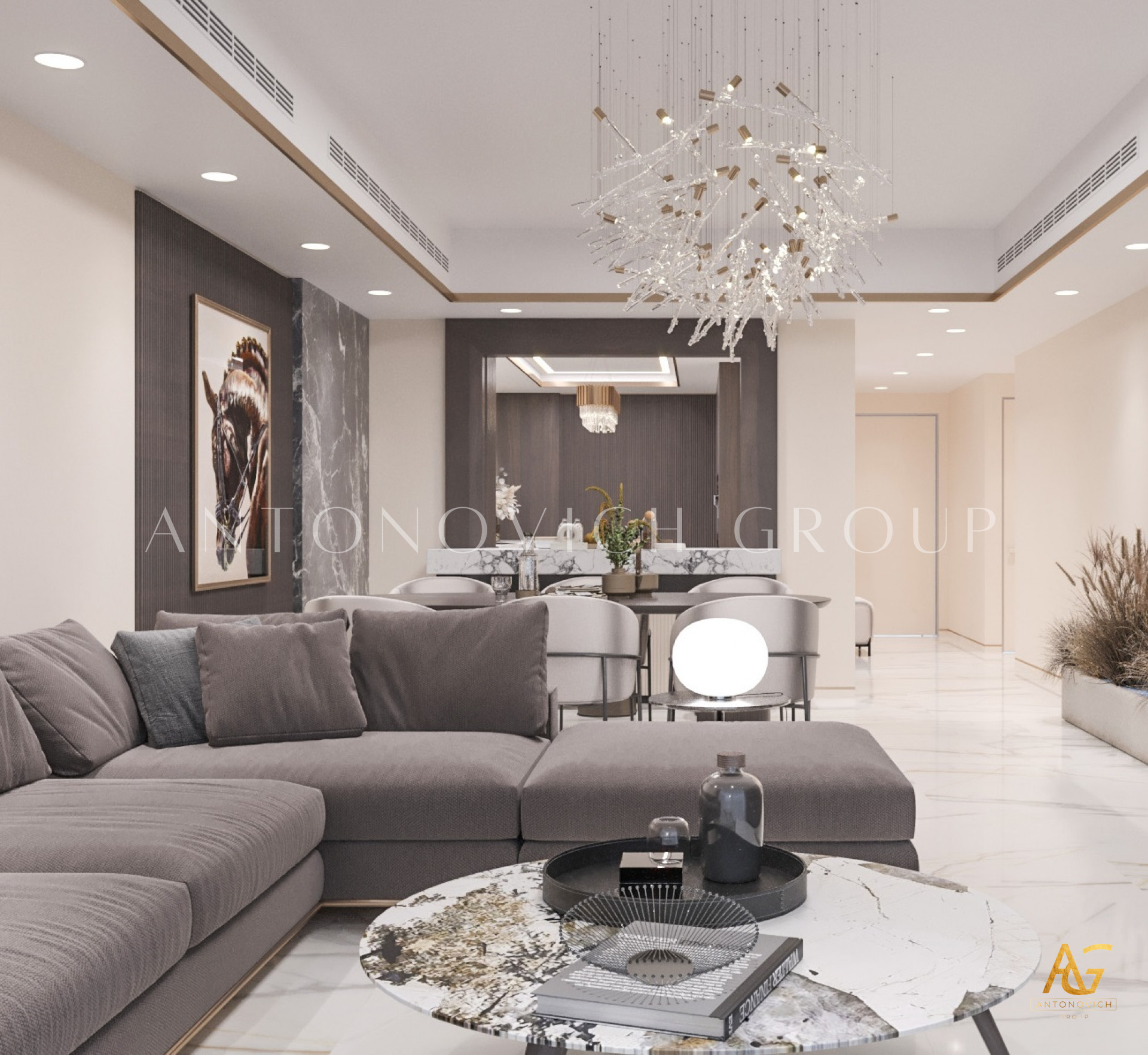 1. Elegant Interior Design: Antonovich Group has employed its signature design philosophy, focusing on creating spaces that are not only aesthetically pleasing but also practical. The interiors feature high-quality materials, stylish furnishings, and thoughtful layouts that maximize space and comfort.