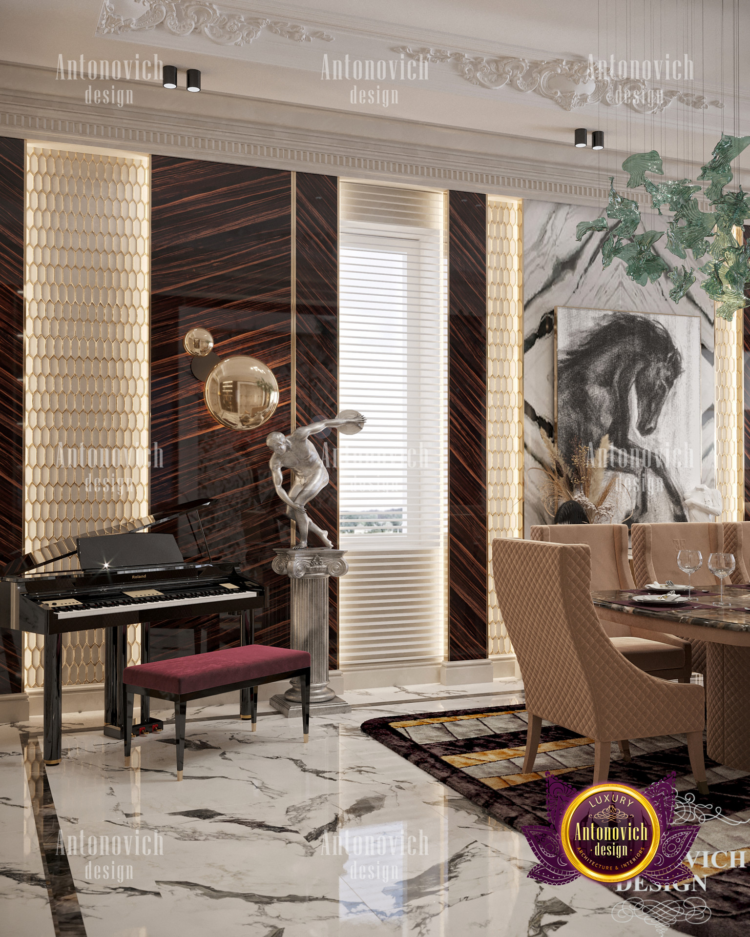 Design consistency is also essential to achieve because it adds to the homes elegance and modernity. The primary parts of this home, such as the living rooms, sitting spaces, kitchen, and dining rooms, have the most incredible interior design set up with a wide range of renowned furniture and decorations that encircle the whole interior set up. The living rooms have been thoughtfully designed and decorated with the ideal level of coziness, resulting in a highly pleasant interior design that provides the most comfortable and restful experience possible. Every living room interior has been given special attention by the Luxury Antonovich Design team in order to produce the most desirable interior design set.