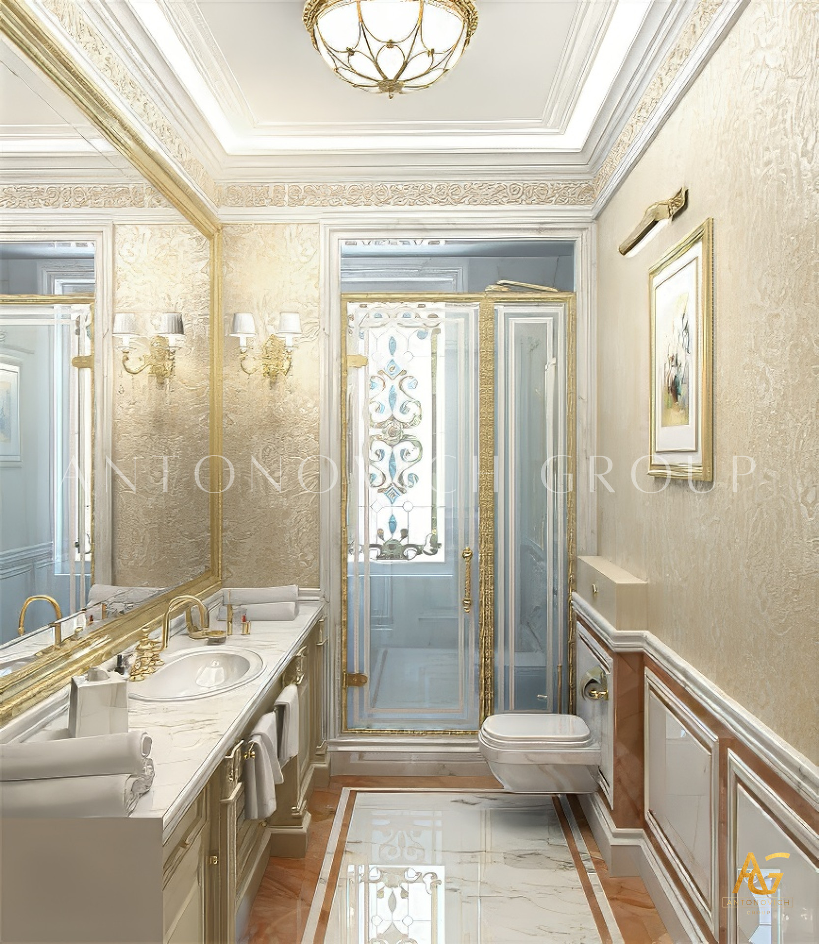 Bathroom interior design in an apartment can become a separate interior story and fundamentally different from the overall design concept.Bathroom - this is usually an isolated room in the house or apartment. In this project, interior designers of the studio Luxury Antonovich Design offered an original design solution for a bathroom in Japanese style.The design of the bathroom has become one of the wonderful moment of the dreams of the apartment’s owners about their own spa area. According to Japanese traditions, the bathroom has a round shape. To realize this moment, the abundance of natural wood in the Japanese interior, designers use the finishing of walls made of elite tiles with wood texture.Light marble in the decor of the walls and stylish decor panels are perfectly combined. The design project of the bathroom also acquired a touch of romance. Interior designers provided narrow shelves, where you can place candles and exquisite accessories.The unusual configuration of the room inspired the interior designers.Bathroom design has acquired versatility and artistic expressiveness. In general, the interior design of the bathroom became the embodiment of own mini spa at the apartments of the elite apartment. Elite elements of decor and accessories clearly demonstrate the high status of this interior. The interior design of the bathroom is filled with the charm of the warmth of nature itself and radiates the purity of true pleasures.