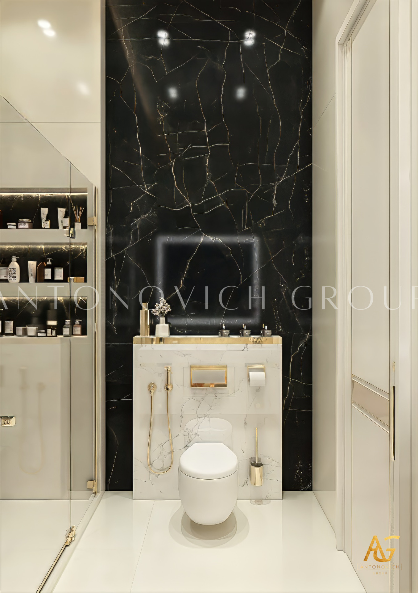 Beyond design, Antonovich Group provides complete bathroom fit-out services, managing every stage from construction to final installation. Their expert engineers and craftsmen execute every detail with precision—plumbing, tiling, joinery, and finishing works are all handled to the highest standards. The seamless coordination between design and fit-out teams ensures perfect harmony between aesthetics and functionality. Each completed bathroom showcases smooth lines, flawless finishes, and a cohesive layout that radiates luxury and style.