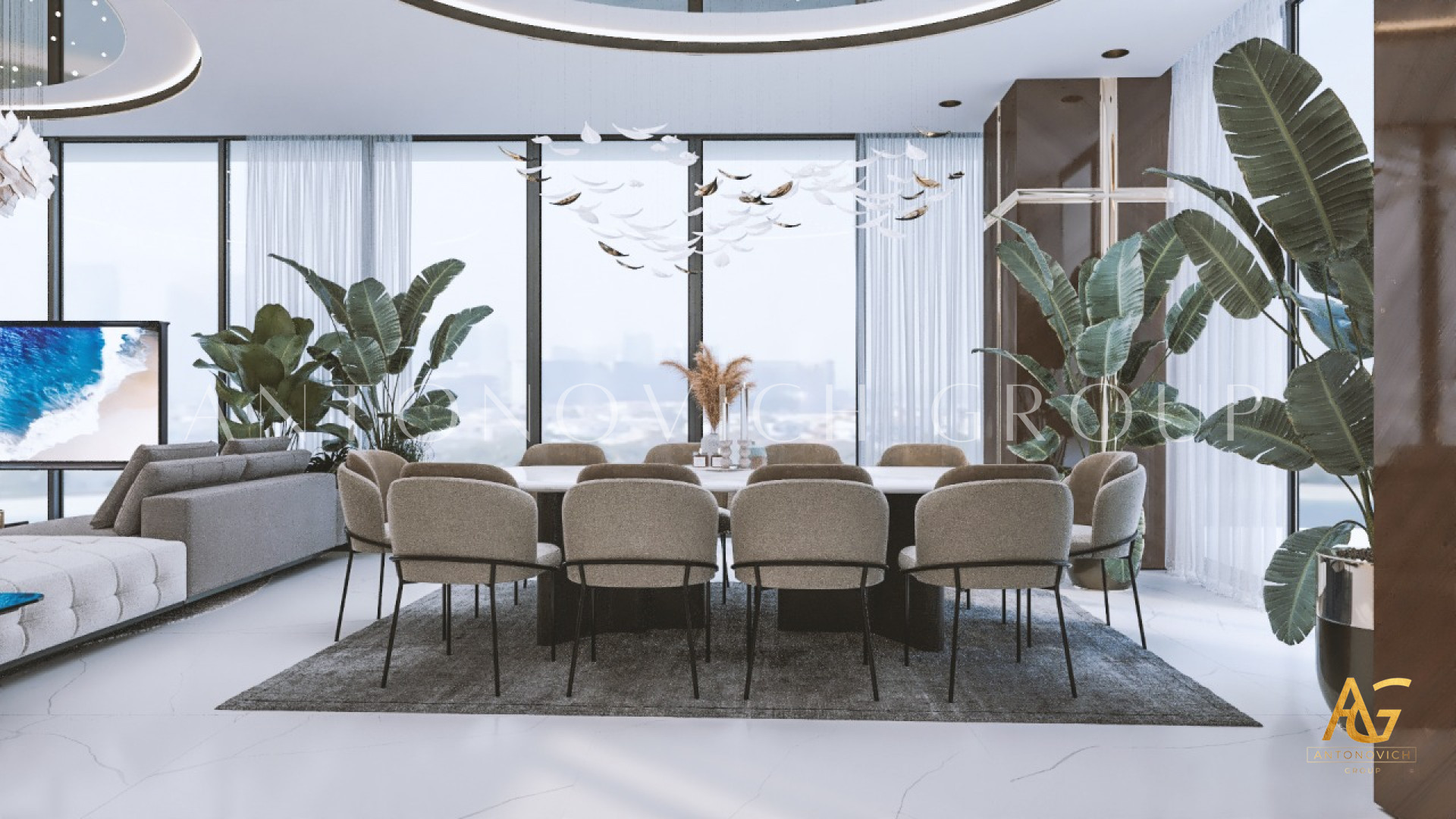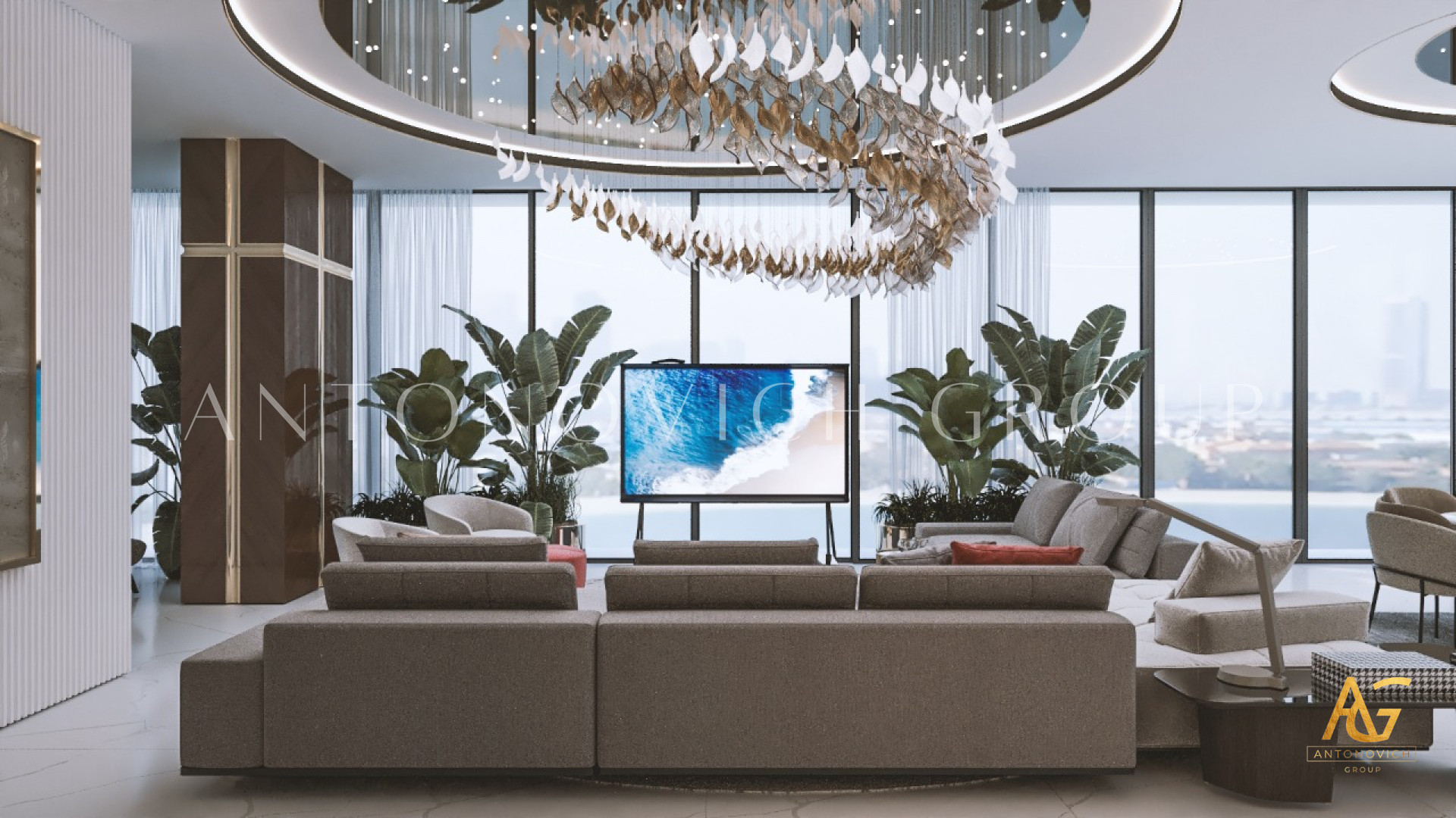 Antonovich Group suggests starting with high-quality components when designing a Royal Atlantis fit-out or refurbishment. When developing an interior design for a Royal Atlantis apartment, we examine the architectural style of your spectacular house design in Dubai as well as the atmosphere you want to create; most Royal Atlantis interior design schemes are frequently ones that are a natural match for the sort of property. When designing a Luxury modern home décor for Royal Atlantis apartments, one of the most essential factors to consider is wall color; it has a huge influence on the appearance and feel of the room. Antonovich Group suggests combining neutral hues for a peaceful but appealing aesthetic.