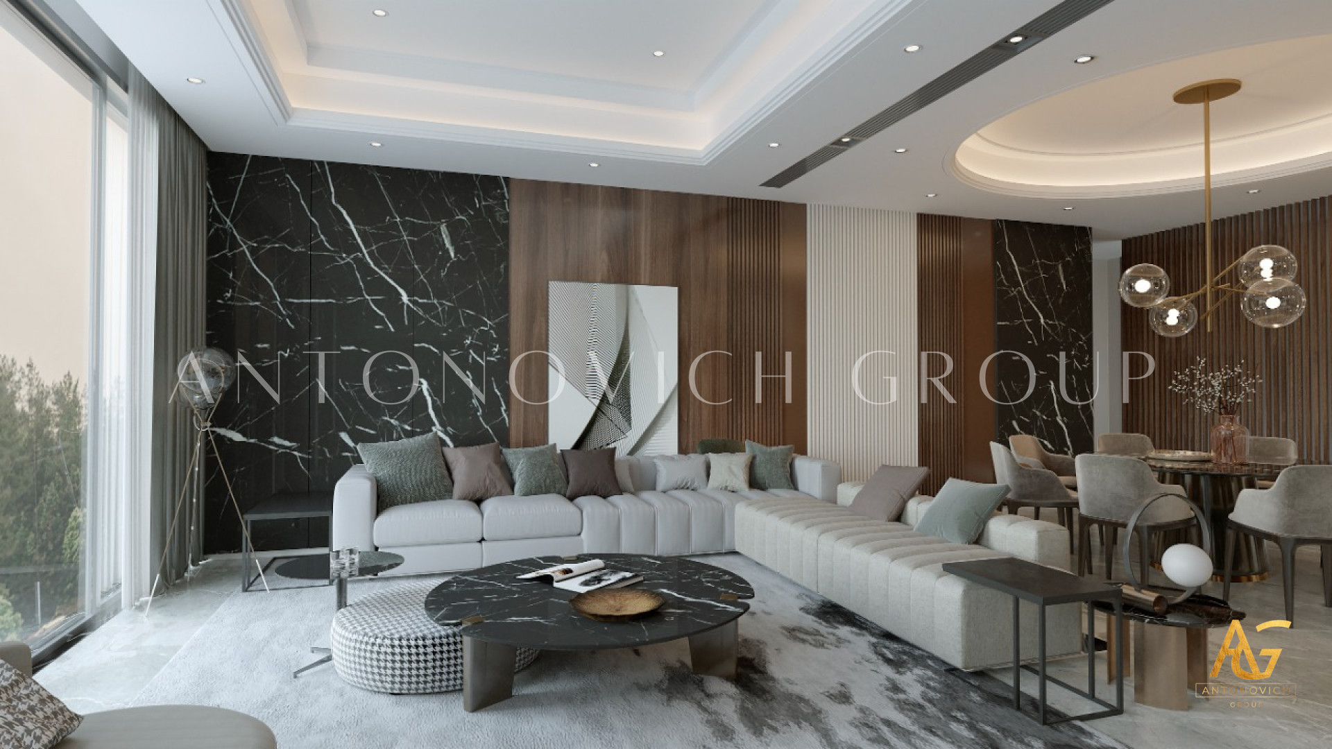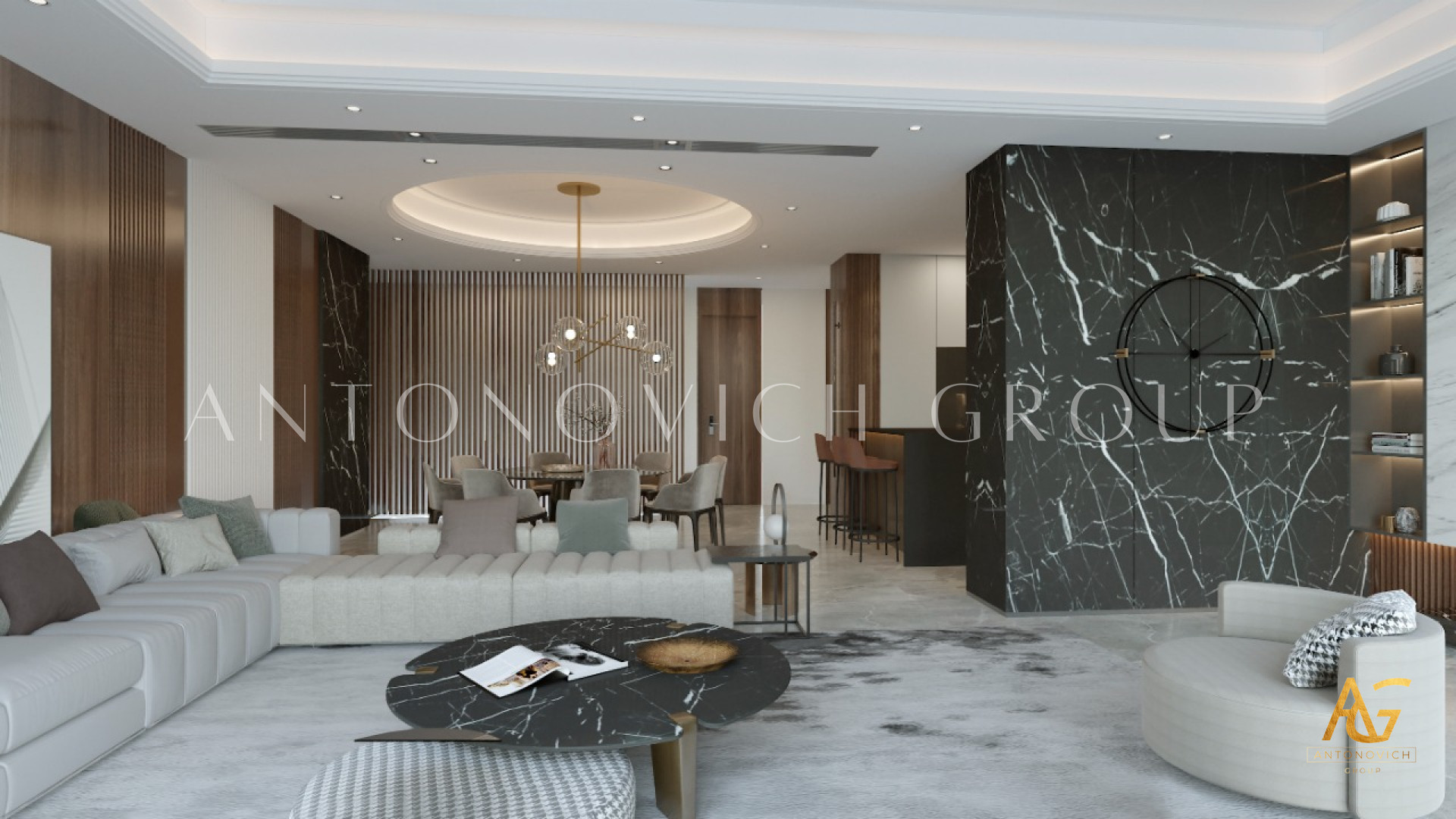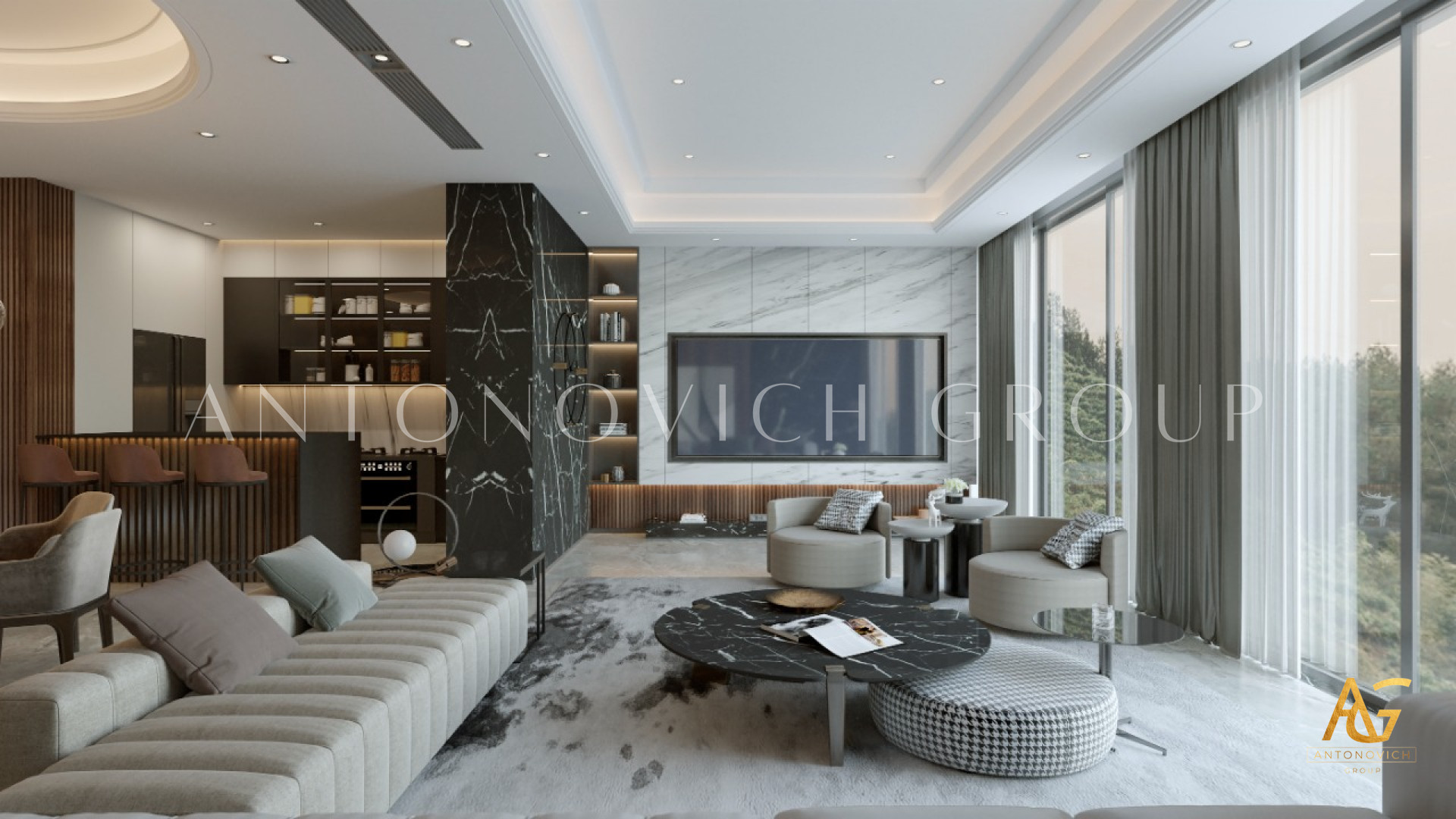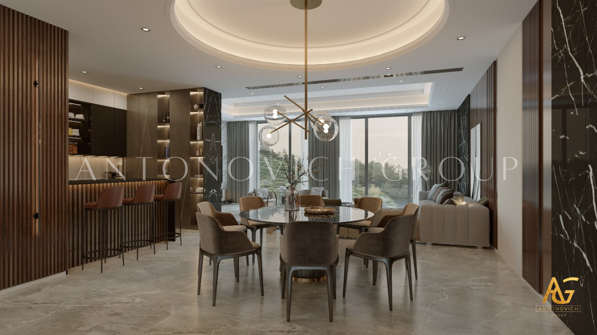 Being located at the world-class shoreline, this modern duplex apartment in Atlantis Residence has a great panoramic view which over looks the majestic seashore of Palm Jumeirah. The interior decor of this upscale property is trendy and stylish, giving it a glittery atmosphere. Its exquisite lighting is meant to give the area a sense of beauty and peace. Everything is well-done, from the fixture to the lights. There were some outstanding details in every facet of the luxury apartment interior design. The entire structure is a piece of art that exudes majesty. The interior design of a luxury apartment is created in such a way that it exudes luxury. Its in a class by itself. The room was created with the intention of providing you and your family with the most luxurious environment possible. Luxury Antonovich Design added luxury accents to the interior design of this luxury residence.