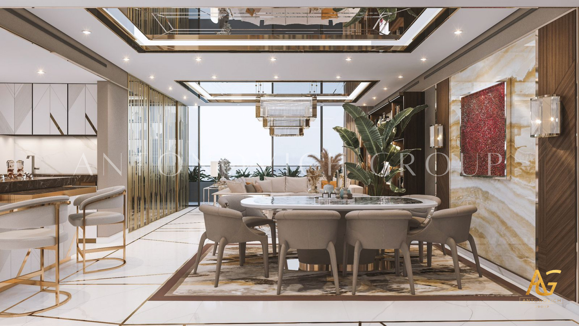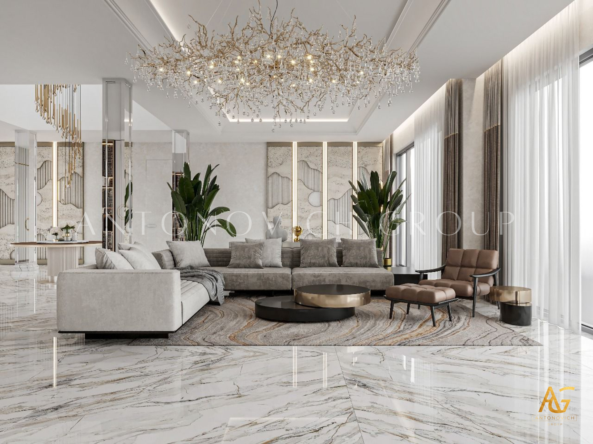 If youre planning a Royal Atlantis Penthouse fit-out or renovation, Luxury Antonovich Design recommends starting with high-quality components. We consider the architectural style of your magnificent house design Dubai as well as the mood you want to create when creating an interior design for Royal Atlantis penthouse; most Royal Atlantis Penthouse interior design schemes are often ones that are a natural fit for the type of property. When planning a Luxury modern home decor for Royal Atlantis apartments, wall color is one of the most important considerations; it has a significant impact on the spaces appearance and feels. For a soothing style that nevertheless has appeal, Luxury Antonovich Design recommends mixing neutral colors.