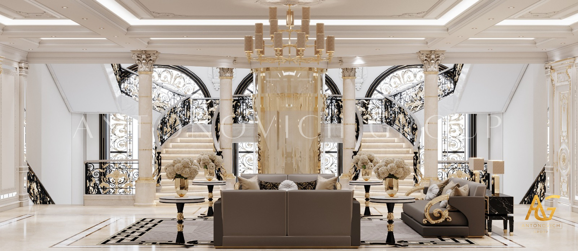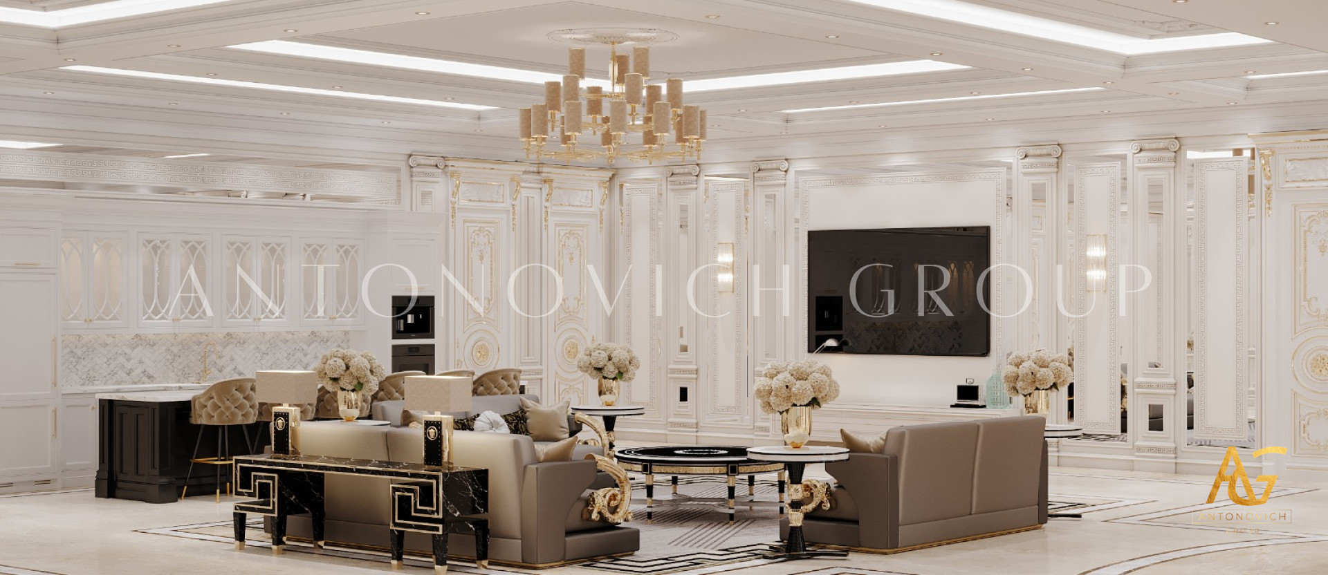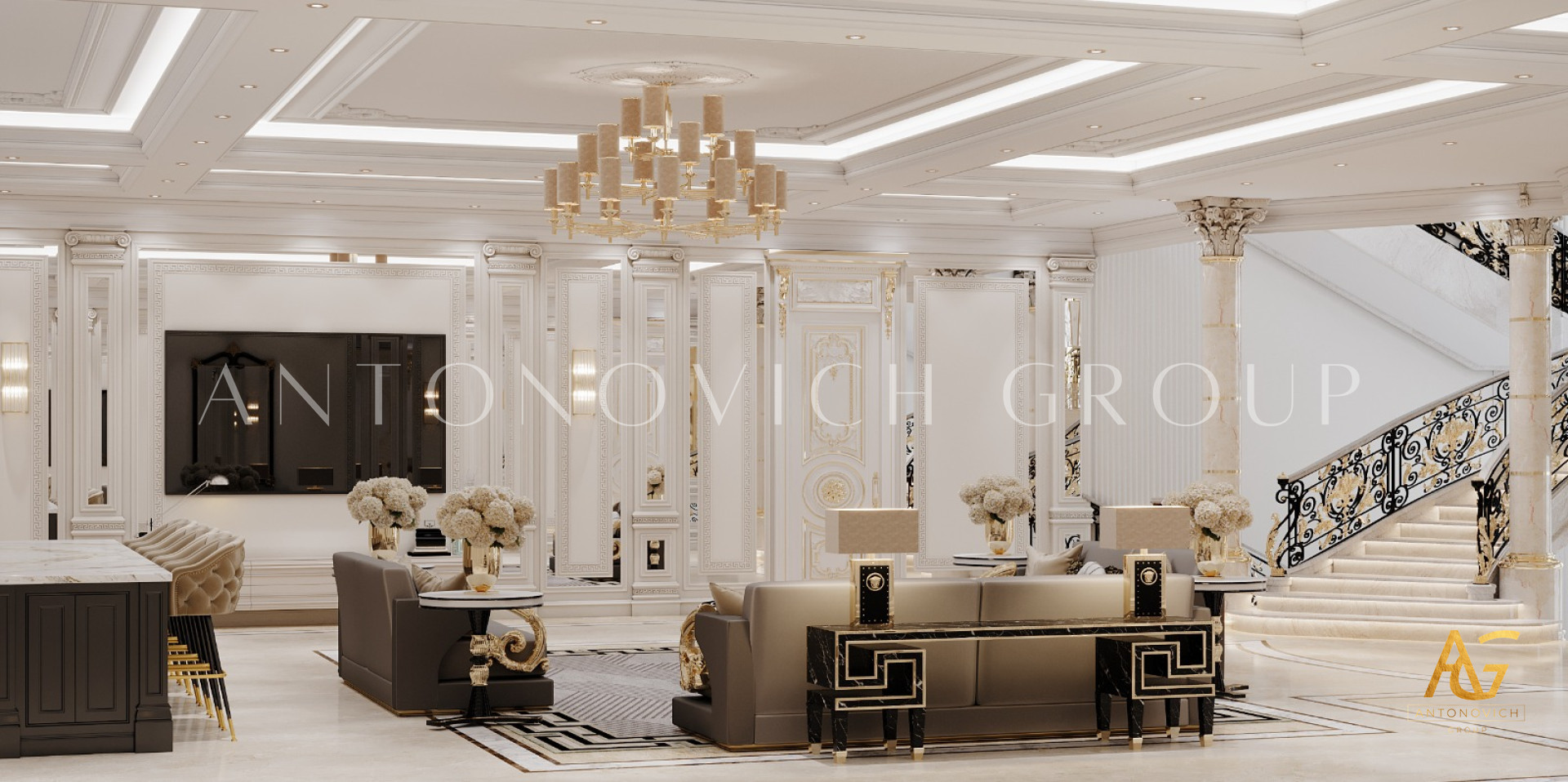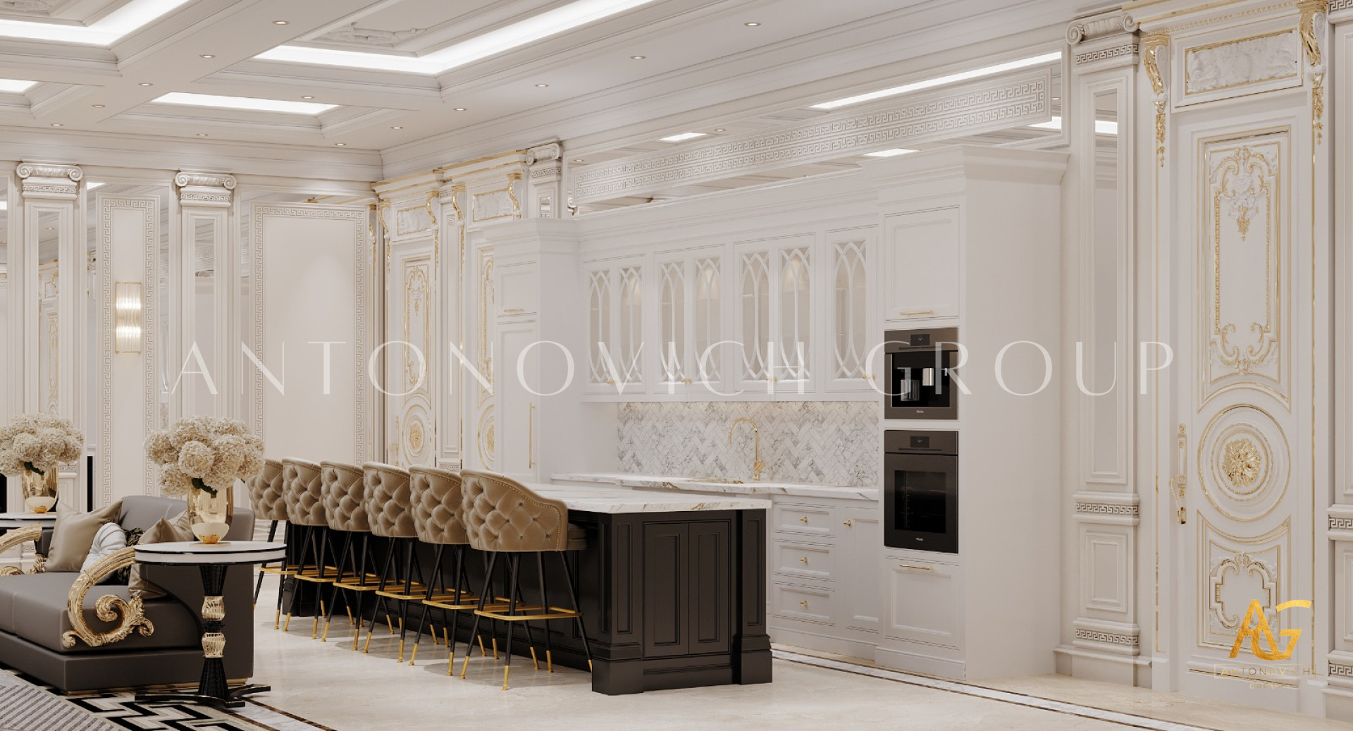 Eastern hospitality has already become expression around the world. It is in the traditions of this culture that a guest is practically a sacred person to whom is offered the best. Thats why we paid special attention to the interior of the living room in Dubai. In general, the interior design of the house in Dubai embodies a wonderful mix of classics and oriental style. In the house, there are several living rooms. One of which is decorated according to the principles of the eastern majlis. The design of the house in Dubai largely corresponds to the Eastern canons. So, in this living room, everything is provided for the reception of guests, warm talk during tea-drinking. Luxurious upholstered furniture from the Italian factory is almost all around the perimeter of the room. Only one of the walls is equipped with a modern plasma panel for watching favorite films with a friendly company. Furniture can be called one of the brightest accents in the interior. The noble fabric of a ruby shade is decorated with printed golden ornaments, and details from wood are encrusted with carved decor and gilding. Another very vivid association with the eastern interior is the carpet. In this room, the floor is practically adorned around the entire perimeter with a magnificent Persian carpet. This is a great accent of the warmth and comfort in the home. The decor of the walls and ceiling are made a single concept. Here the stucco decoration with gilding frames fragments with decorative plaster in pastel shades of green. Along with elegant crystal chandeliers, Dubai interior designers use modern ceiling lamps and LED lighting. This allows the interior to be more expressive and vivid. And the decor elements from stucco moldings are more magnificent and elegant. Design of curtains Dubai is one of the important directions of the studio Luxury Antonovich Design. For this project, textile designers offered luxurious curtains in classical style with a soft baldachin and braid with golden tassels. Dubais interior design reflects a fine tradition that is complemented by trendy trends and modern technology.