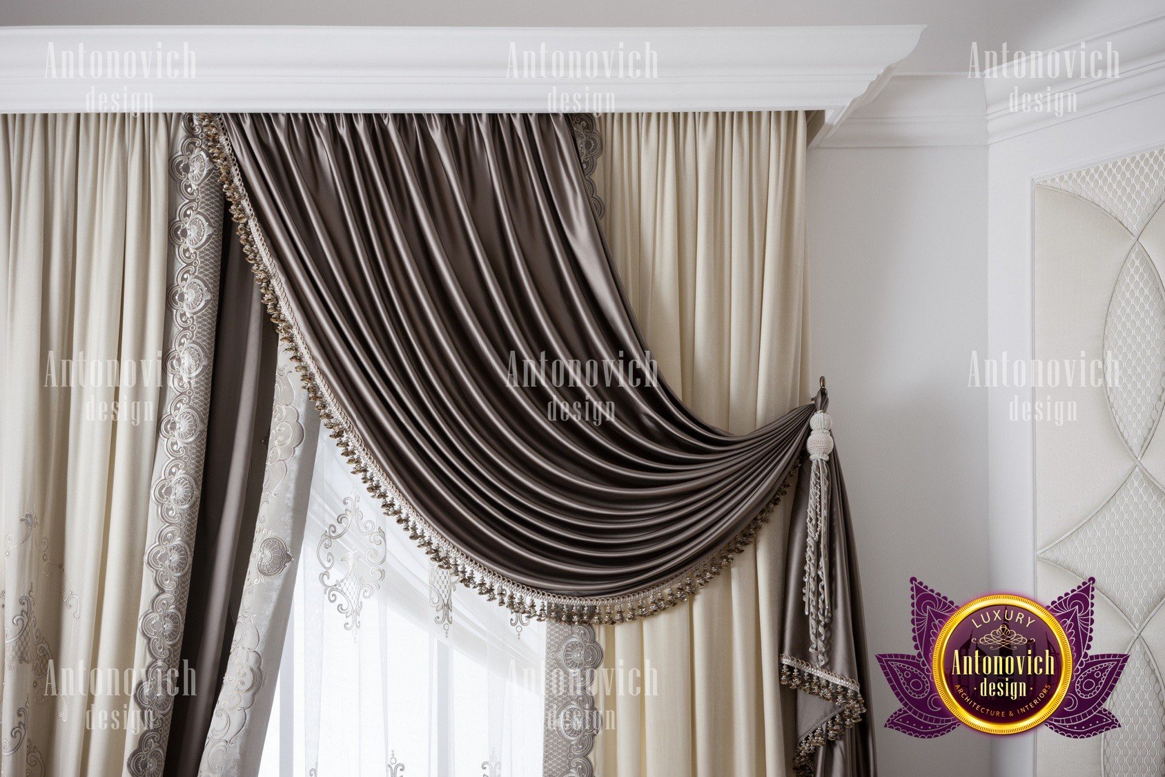 Our company Luxury Antonovich Design offers custom-made curtains. We have excellent materials that transform into elite models, beautiful cornices, as well as original accessories. This is how not just stylish decorations are created, but the very image of your apartment, house, restaurant, office or hotel.