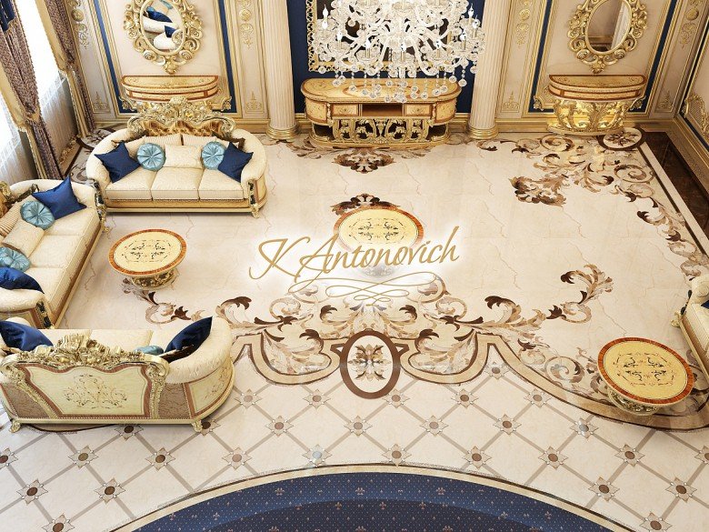 Like a brush of a great artist easily touched the canvas and exquisite ornaments appeared on the marble surface. You feel absolute lightness and harmony while watching luxury marble floors made by Antonovich Group. But behind this flawless beauty, there are profound and multi-faceted design ideas. The floor design becomes an excellent way to emphasize the artistic expression of the interiors. The authors floor design by Dubai design studio fully reflects the possibilities of modern technologies. Thanks to new methods of laser stone cutting, we can create incredible floors with beautiful patterns, and implement almost any design idea. The floor design is necessarily connected with the walls and ceiling design. Thats how Dubai interior designers achieve the aesthetic perfection of luxurious interiors. The patterns on the marble floor gracefully repeat the drawing on the stained-glass ceiling. These curls are also present in the decoration of the walls. Interior Design Styles