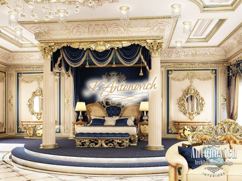 Blue and gold always go well. It is a good combination for any luxury bedroom as it exudes beauty and elegance. Luxury Antonovich Design has crafted this bedroom in a perfect way. A bedroom should include all of the necessary details for a relaxing day and night for you and your partner. Luxury Antonovich Designs big luxury bedroom interior design has a really good arrangement and plan. The large open space is ideal for couples to run around and play around.