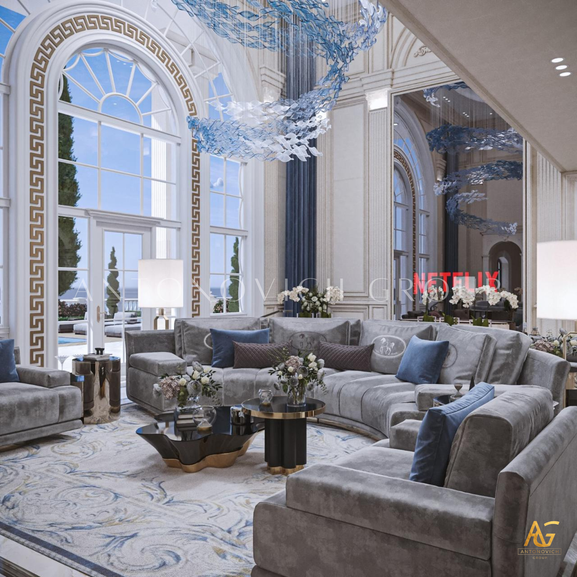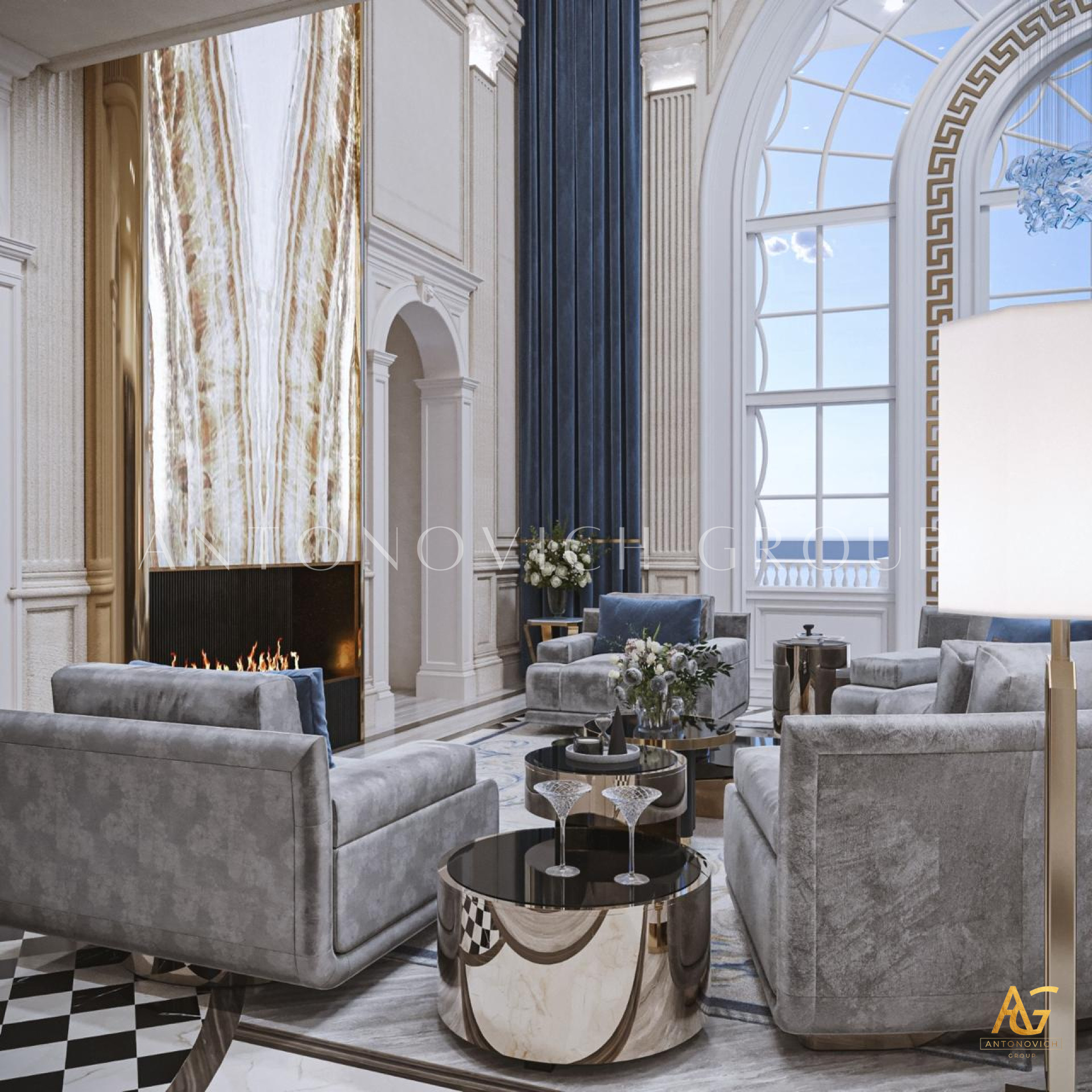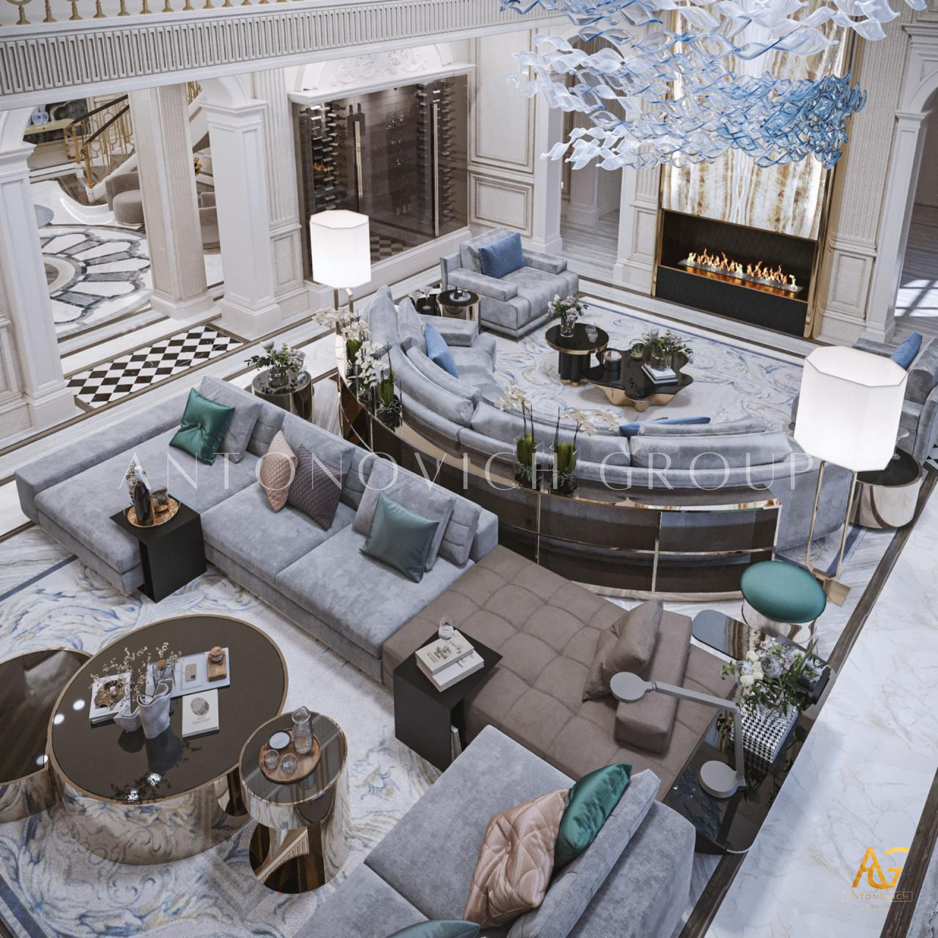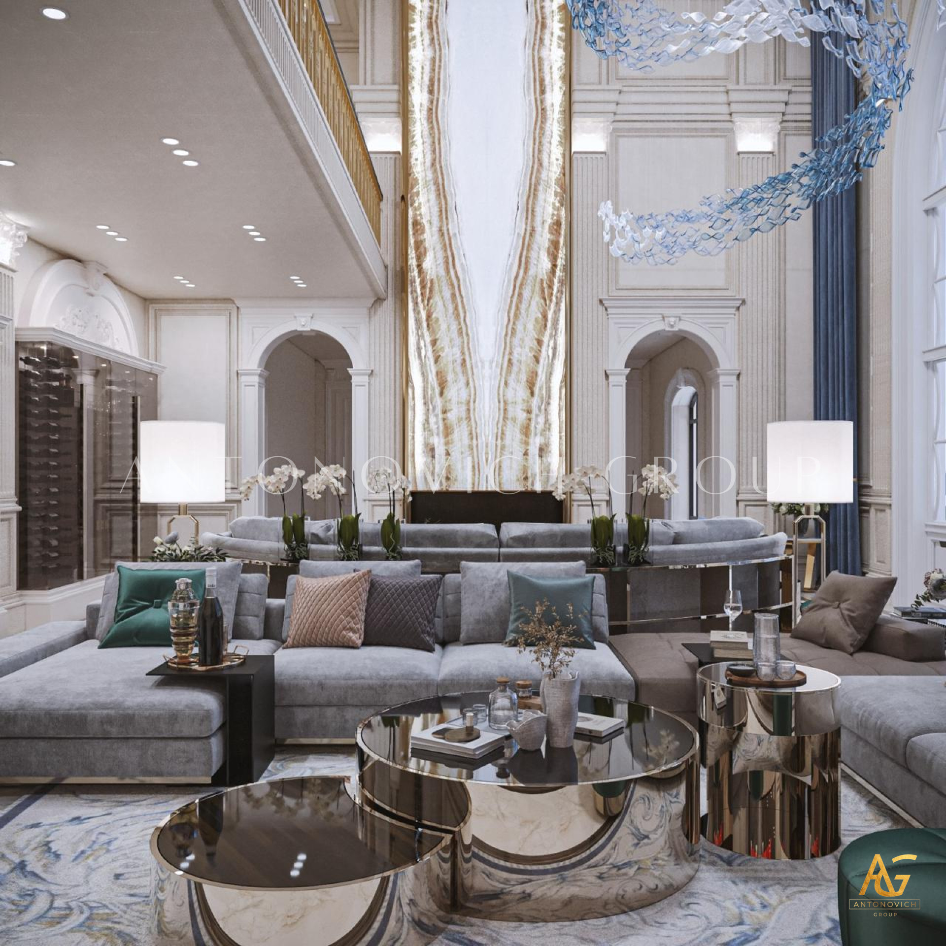 Antonovich Group provides comprehensive services for the development of any premium residential property, including royal villas, palaces, and luxury mansions. From space planning and development through fit-out work, design implementation, furniture, and décor choices, and design execution and installation. The living room, also known as the sitting area, is an important section of a home structure since it contains the most space. The greatest portion of the house is also the living room, where the owner typically entertains visitors and has informal parties. As a result, living rooms are the finest place in the house for the owner to express their personality and lifestyle. Property owners utilize d to decorate their living rooms with the best spacing arrangement with the ideal balance of style for the most comfortable and pleasant living room design as a fantastic gesture of welcome.