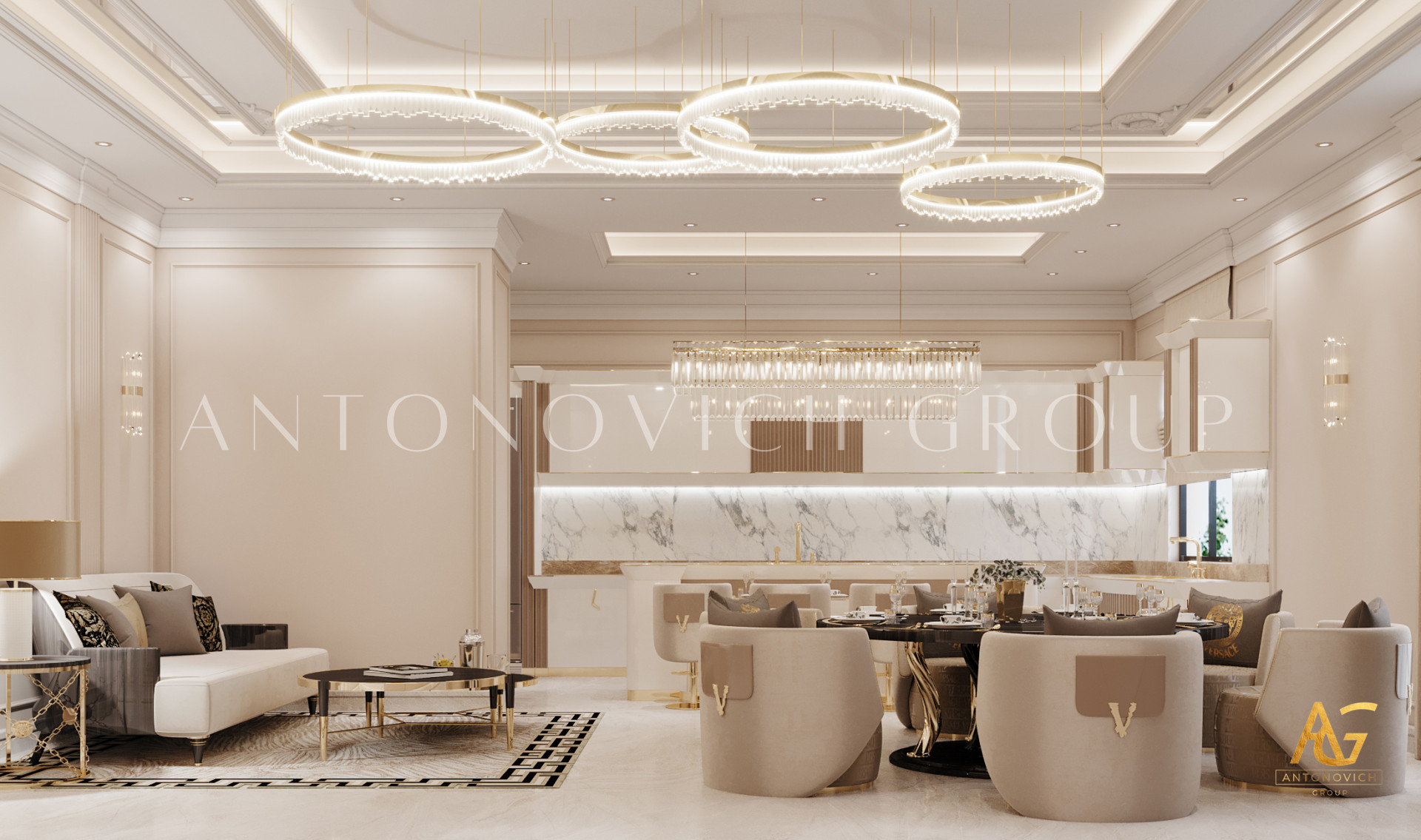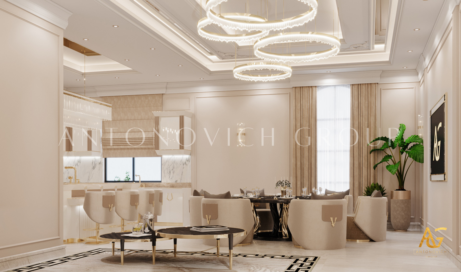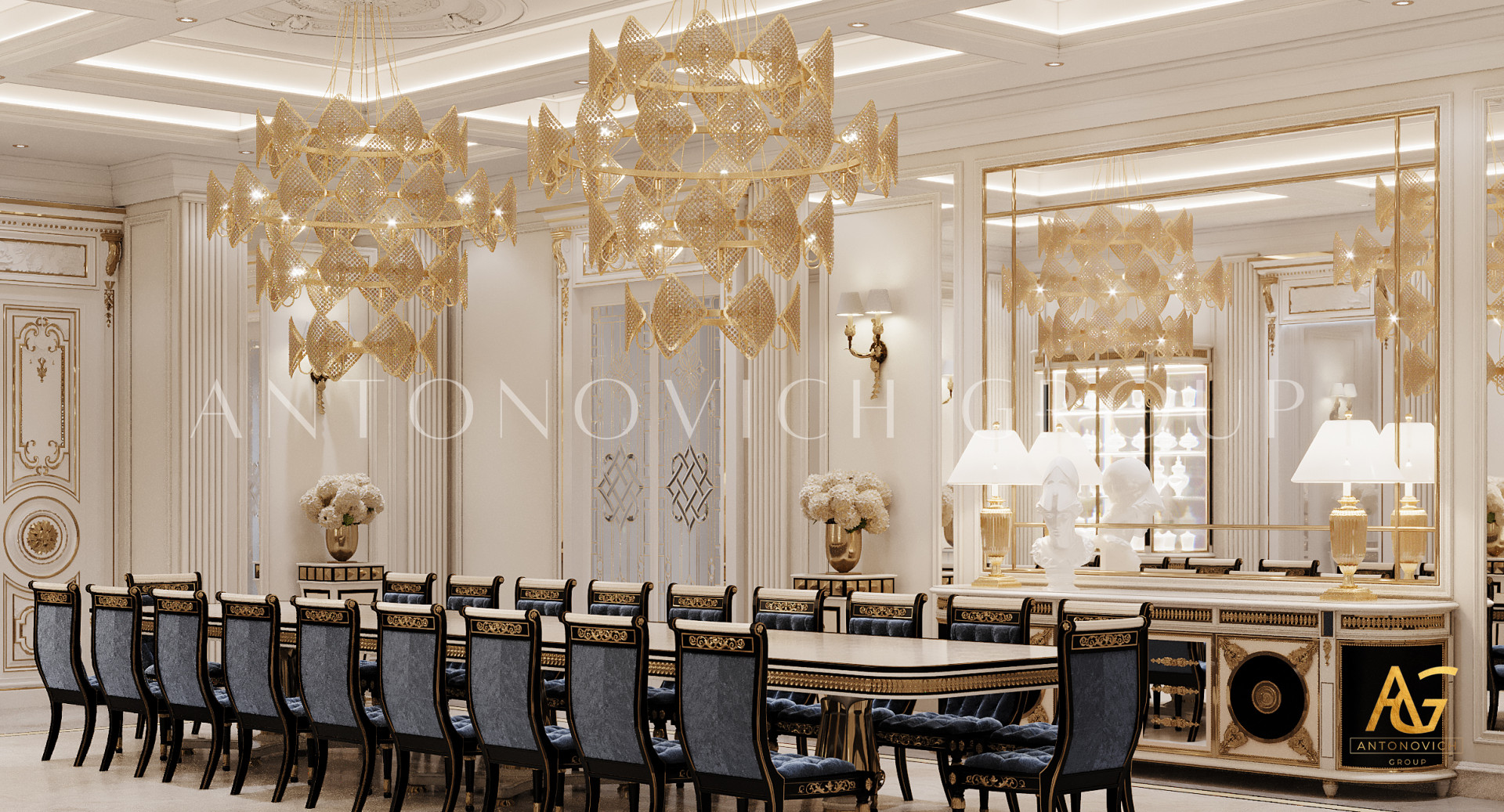 Antonovich Group is well-known for being the leading provider of the most luxury furniture design as well as the creation of bespoke furniture design, carpets, floors, chandeliers, family crests or logos, and other prominent decorations. Nothing is more capable of creating a regal style home design Antonovich Group. Because it provides entire project solutions ranging from space planning and development through construction, interior design execution, and fit-out work, as well as the final turnkey solution.