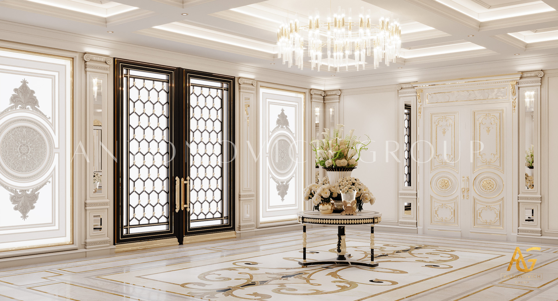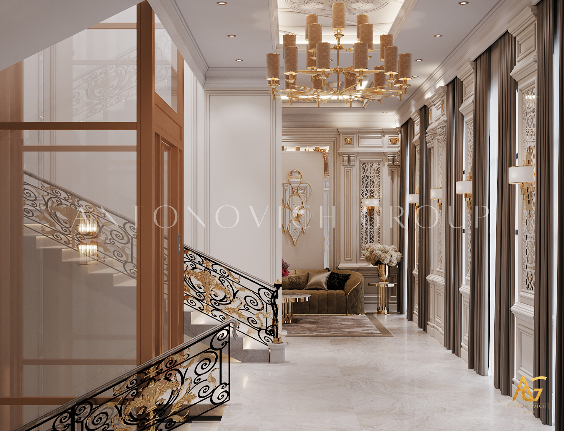 Without a doubt, Antonovich Group is always the ideal choice for any top customer in constructing their local and international properties. This Royal style home is one of the most recent excellent instances of superb project design execution since it has flawlessly executed the style while adhering to the classical design idea. There is a set of visible luxury that can be seen in every detailed decoration and furniture design, such as the customized huge chandelier in the center of the lobby, out-of-this-world detailed design and craftsmanship towards the lobby flooring with perfect underneath lighting, the dramatic staircase design, and perfect selections of extra luxurious furnitures.