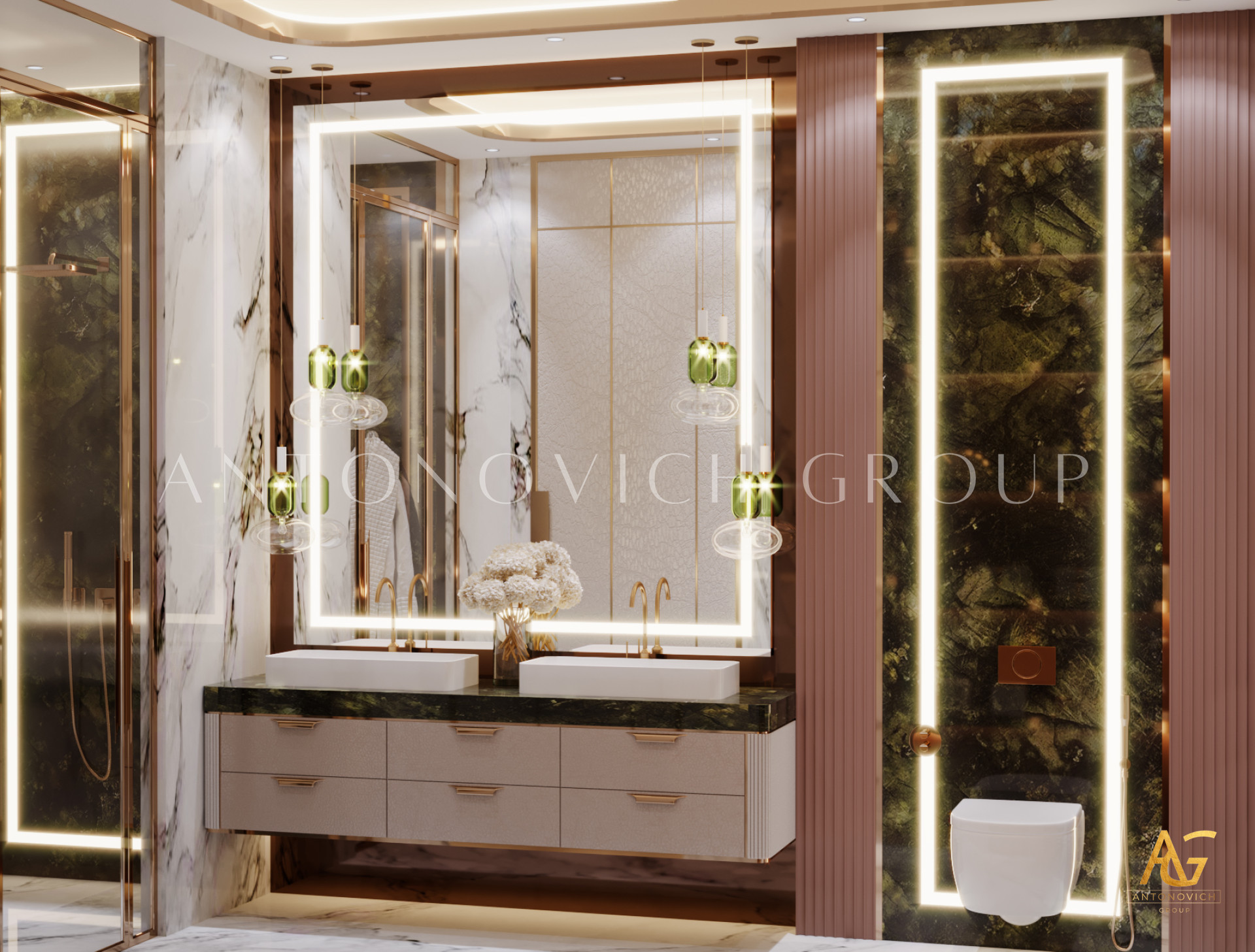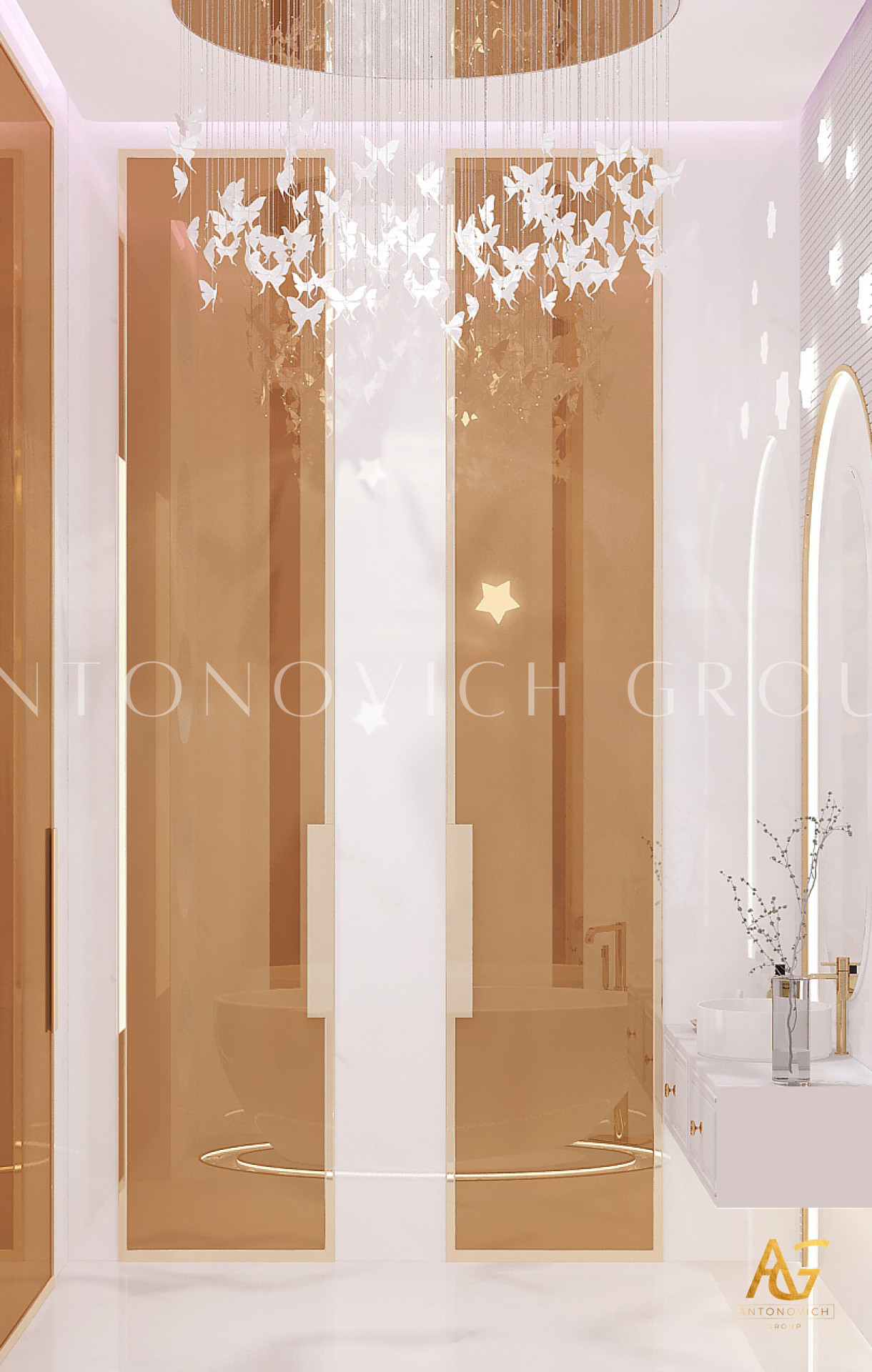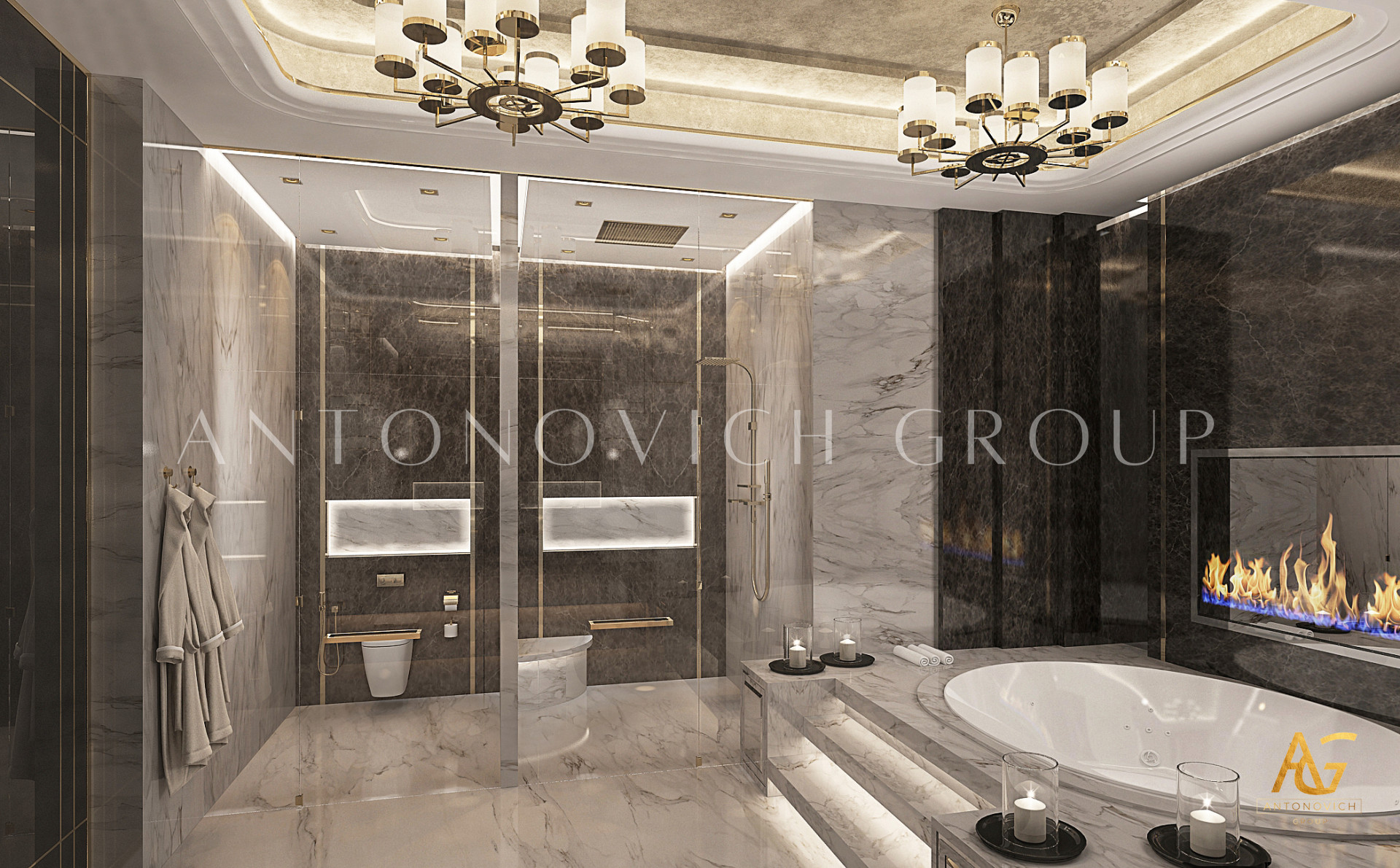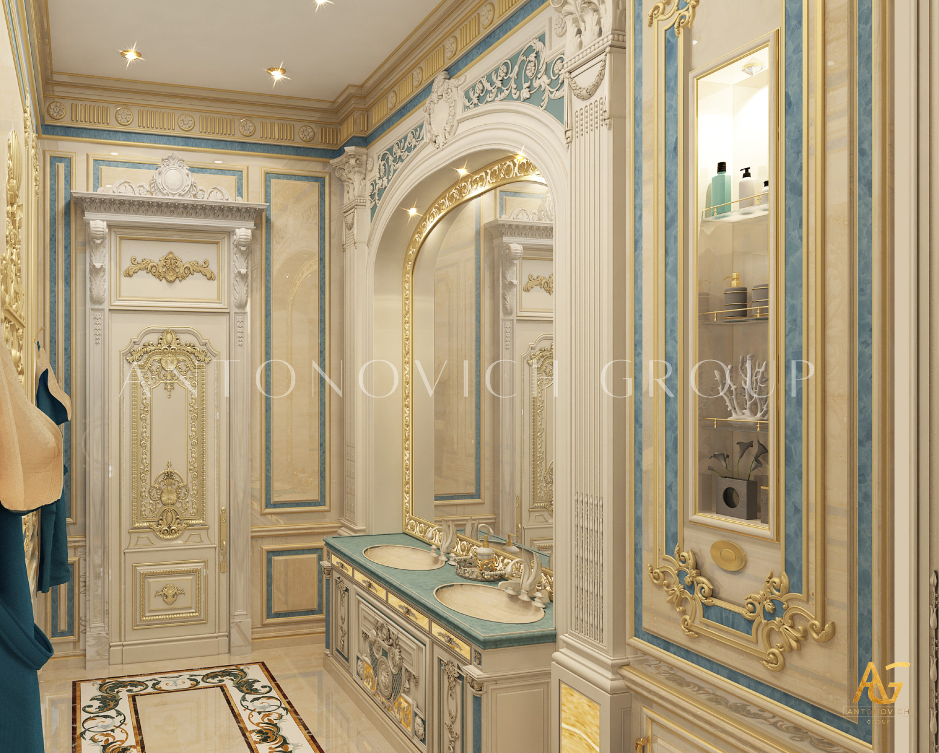 No doubt, Luxury Antonovich Design is always the best choice for every elite client in developing their properties local and international. This Royal style villa is one of the recent greatest examples of outstanding project design execution as it has been perfectly accomplished the style according to every clients requirement at the same time is sticking up with the classical design concept. There is a set of visible luxuriousness that can be seen in every detailed decoration and furniture design, such as the customized huge chandelier at the center of the lobby, out of this world detailed design and craftsmanship towards the flooring of the lobby with a perfect underneath lighting, the dramatic staircase design, perfect selections of extra luxurious furniture’s.
