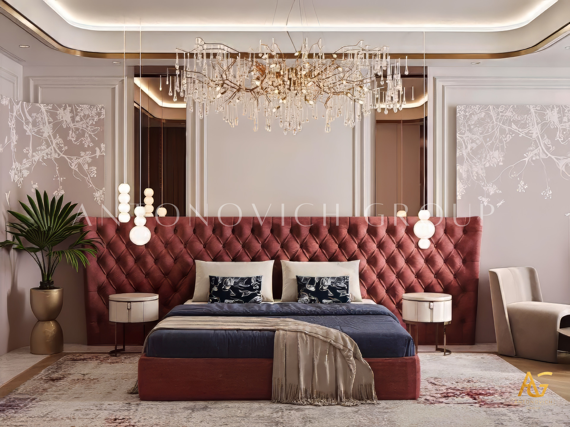 Этот люксовый дизайн интерьера, интерьер с золотыми акцентами и дизайн с акцентной стеной подчёркивают роскошный интерьер с люстрой. Проект демонстрирует современный интерьер Лос-Анджелес и современный дизайн гостиной Лос-Анджелес, создавая премиальный интерьер для дома; над ним работал дизайнер интерьера в Лос-Анджелесе.