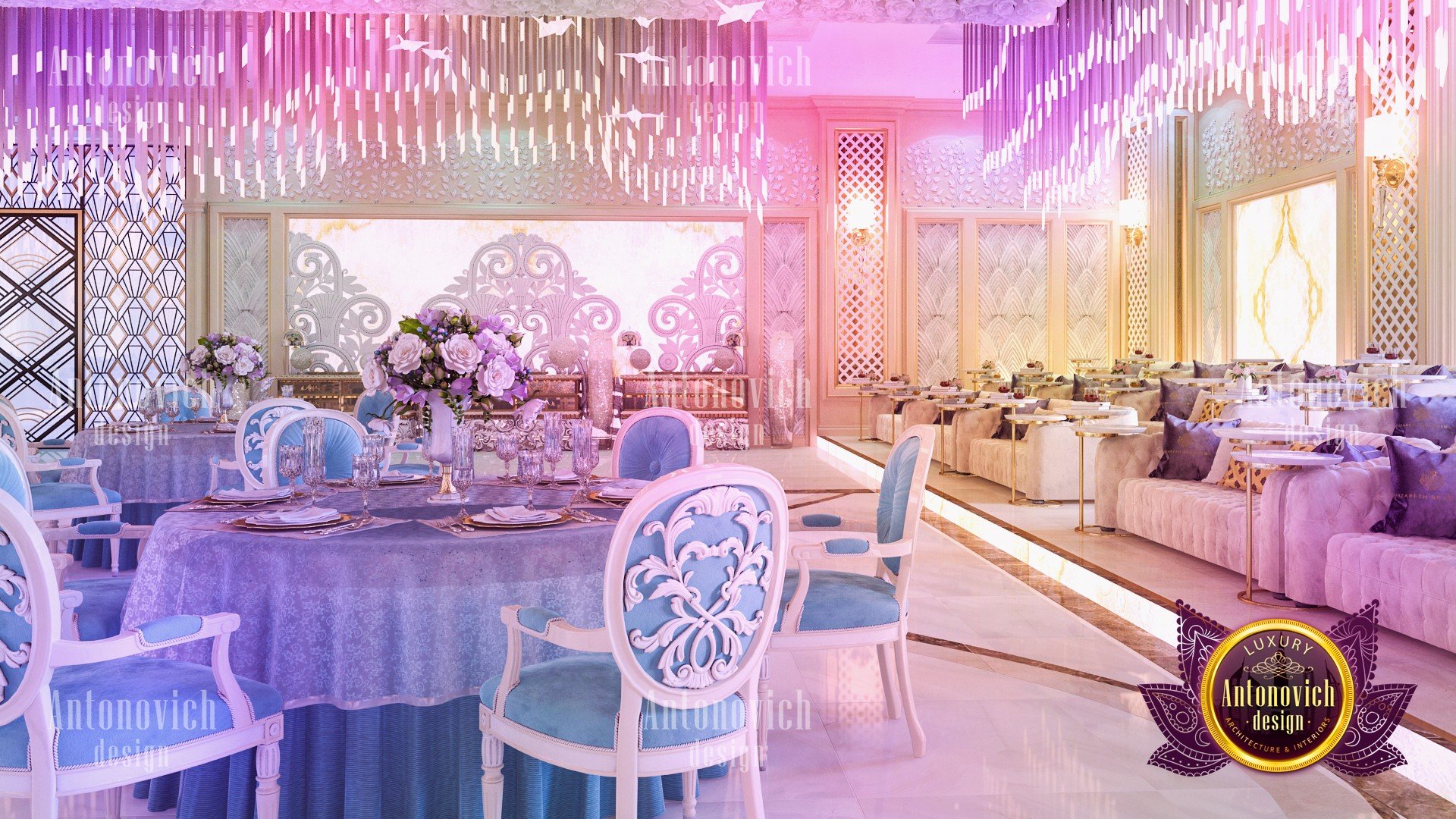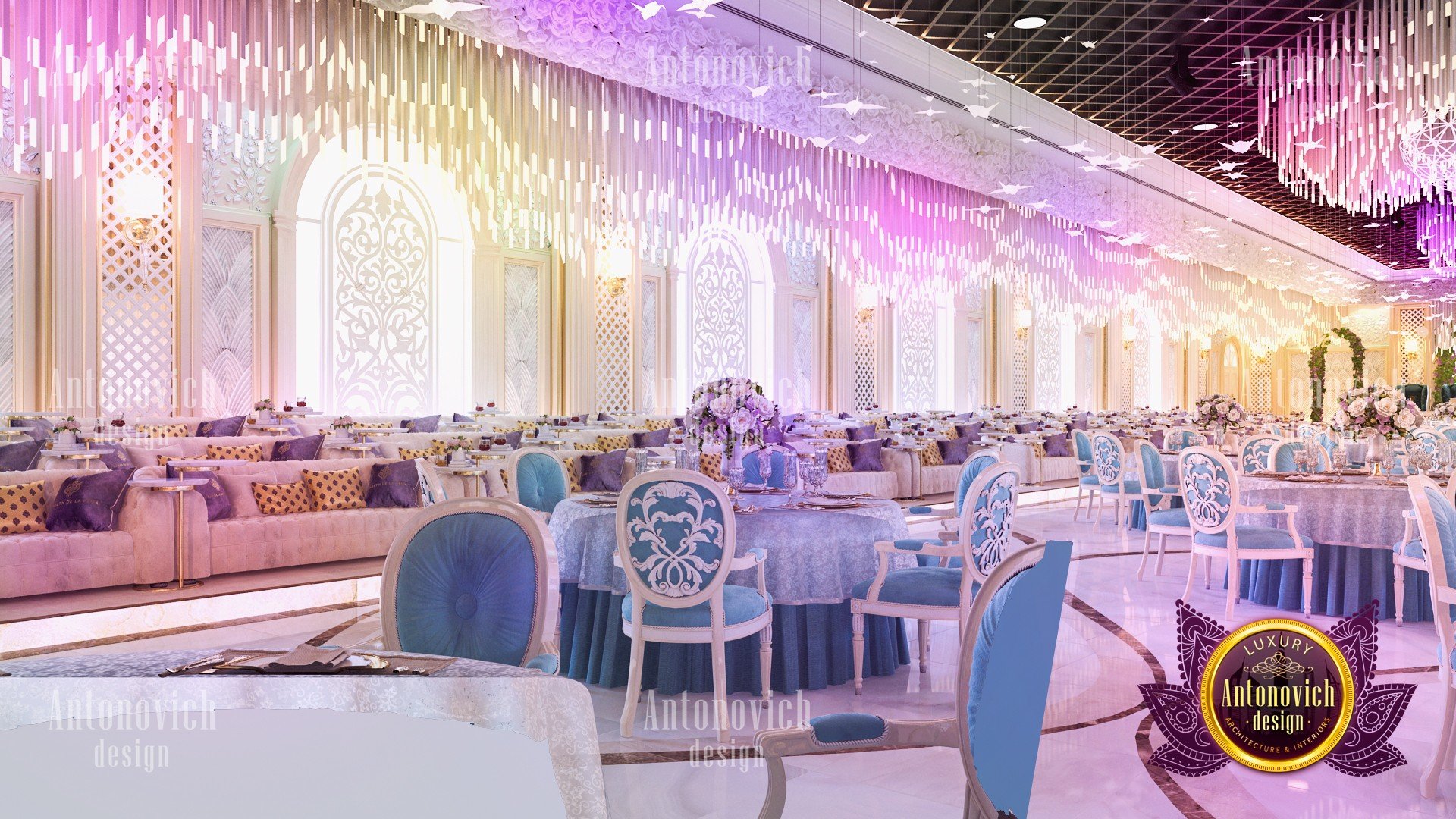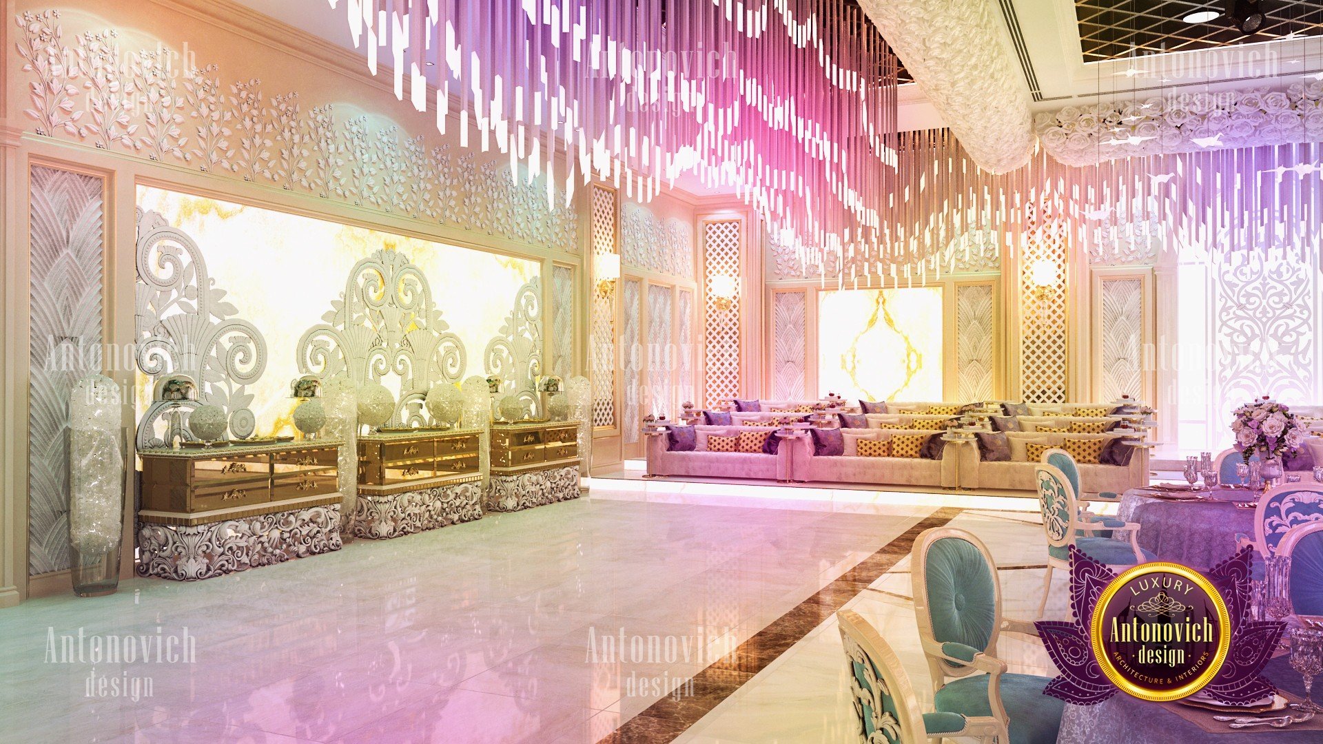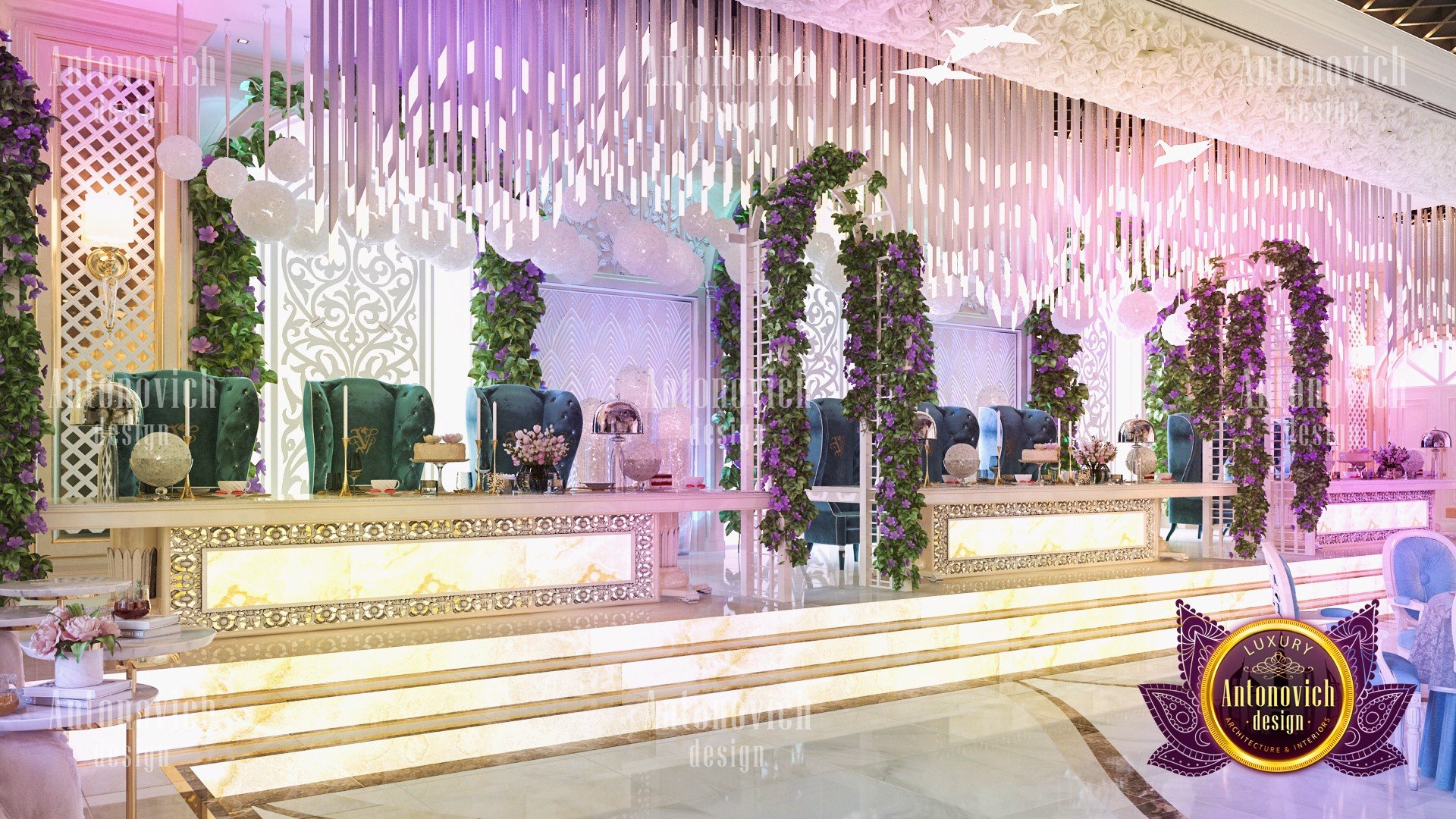 Красивой паре полагается красивый свадебный зал. Декор свадебного зала здесь продуман до мелочей. Элегантные детали в классическом оформлении подчеркивают статус события. Антонович Дизайн (Antonovich Design) обеспечил роскошный декор свадебного зала и предусмотрел просторный план, чтобы интерьер выглядел воздушным и удобным для гостей. Такой декор свадебного зала в Дубае требует тщательного планирования. Особое внимание уделили освещение для свадебного зала и общему балансу пространства. Антонович Дизайн стремится, чтобы вы чувствовали себя спокойно и уверенно в день своей свадьбы.