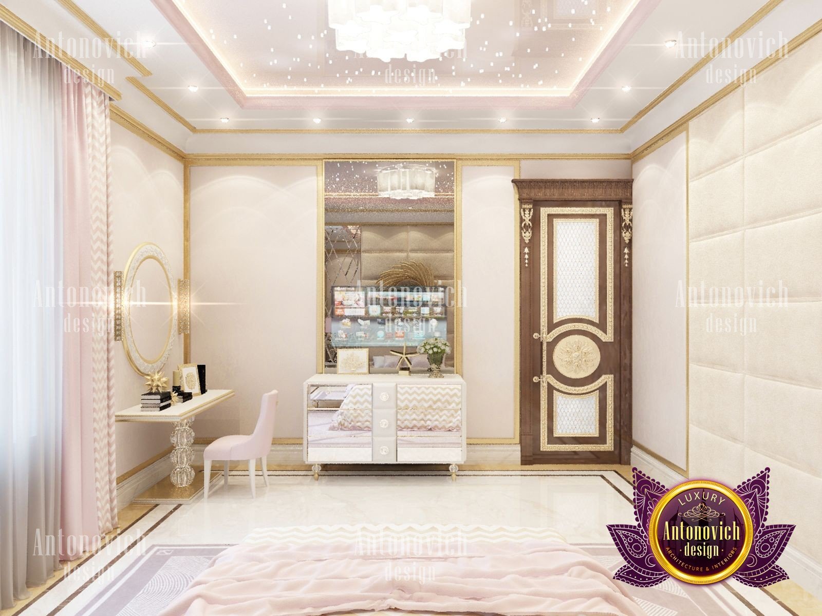 Высшая степень совершенства, гармонии, безупречности и красоты отражена в этом изумительном дизайнe интерьера спальни. Эта красота не возникла сама по себе. Благодаря креативным идеям дизайнеров студии Антонович Дизайн (Antonovich Design) их колоссальный опыт в создании классических интерьеров смог тонко передать характер хозяйки — молодой и красивой девушки. Мы предлагаем вам небольшой виртуальный обход комнаты, чтобы насладиться её прекрасными моментами. И начнём мы с главного в интерьере — кровати. Её изголовье из натурального шелка серебристого оттенка; идеальная ромбовидная фактура делает эту мебель уютной и мягкой, ещё более изысканной. Здесь есть инкрустация резного дерева, покрытая серебристой краской. Украшение кровати полностью наполнило комнату очарованием. Перед вами роскошный интерьер спальни. Красивый шелковый полог с дамасковыми принтами дополнен милыми шелковыми подушками; текстиль для спальни из дамаска подчёркивает общее решение. Так взгляд с кровати плавно переходит на настенное оформление за её изголовьем. Здесь торжествует классический дизайн спальни с проверенными веками канонами. В отделке применены шелковые обои и панно, которые смягчают тонкие линии позолоты. Небольшие дополнения в виде лепного декора делают стены более изящными и выразительными; потолки и лепнина в спальне гармонируют с общей композицией. На этом фоне живописное панно выглядит особенно красиво и достойно. Прикроватные тумбочки цвета слоновой кости стали настоящими жемчужинами интерьера: на мебели этого цвета тонкие ажурные орнаменты и милые лампы со снегобелыми абажурами выглядят великолепно. Планировка дома с 3 спальнями, планировка трехкомнатной квартиры и дизайн.