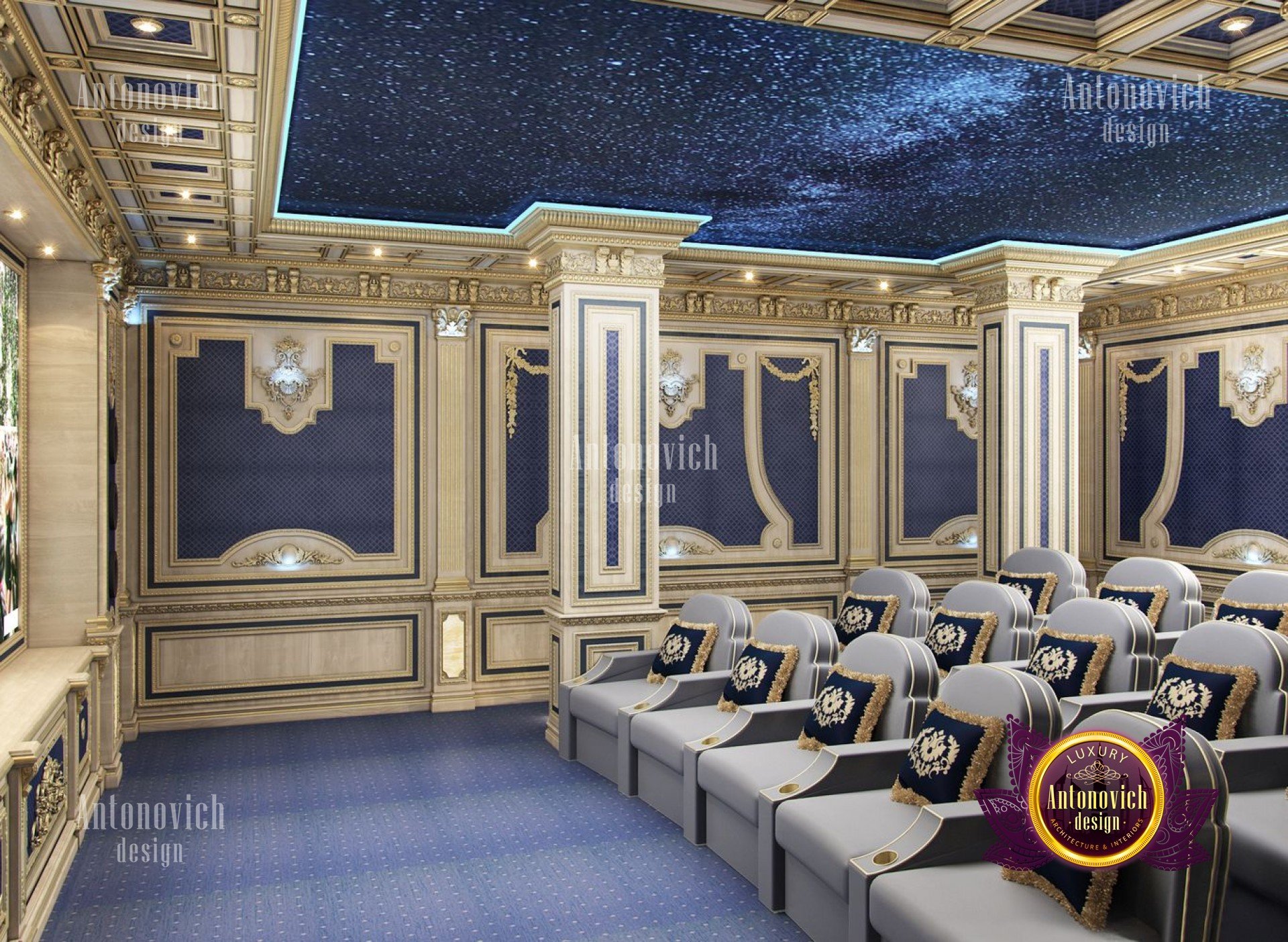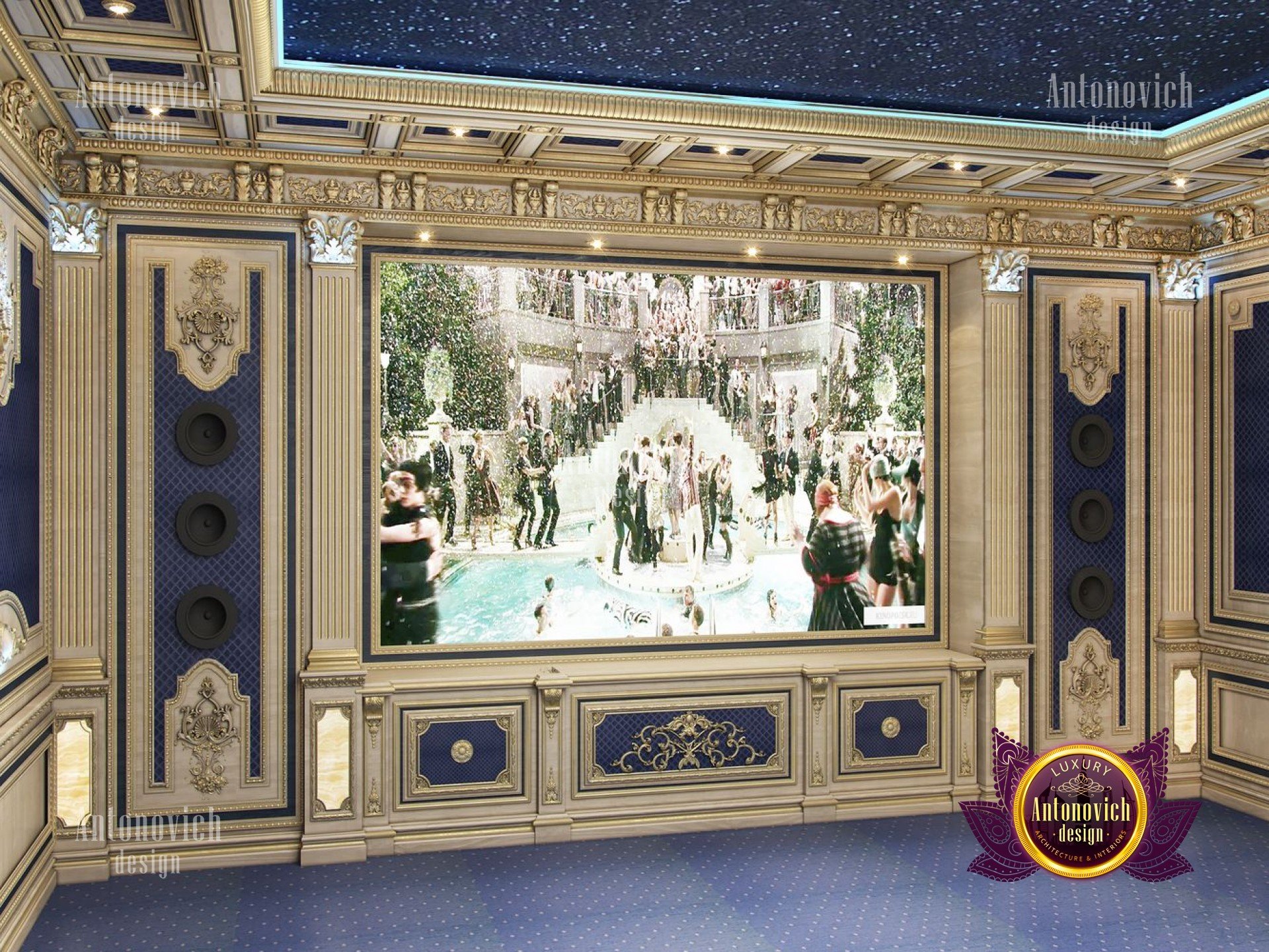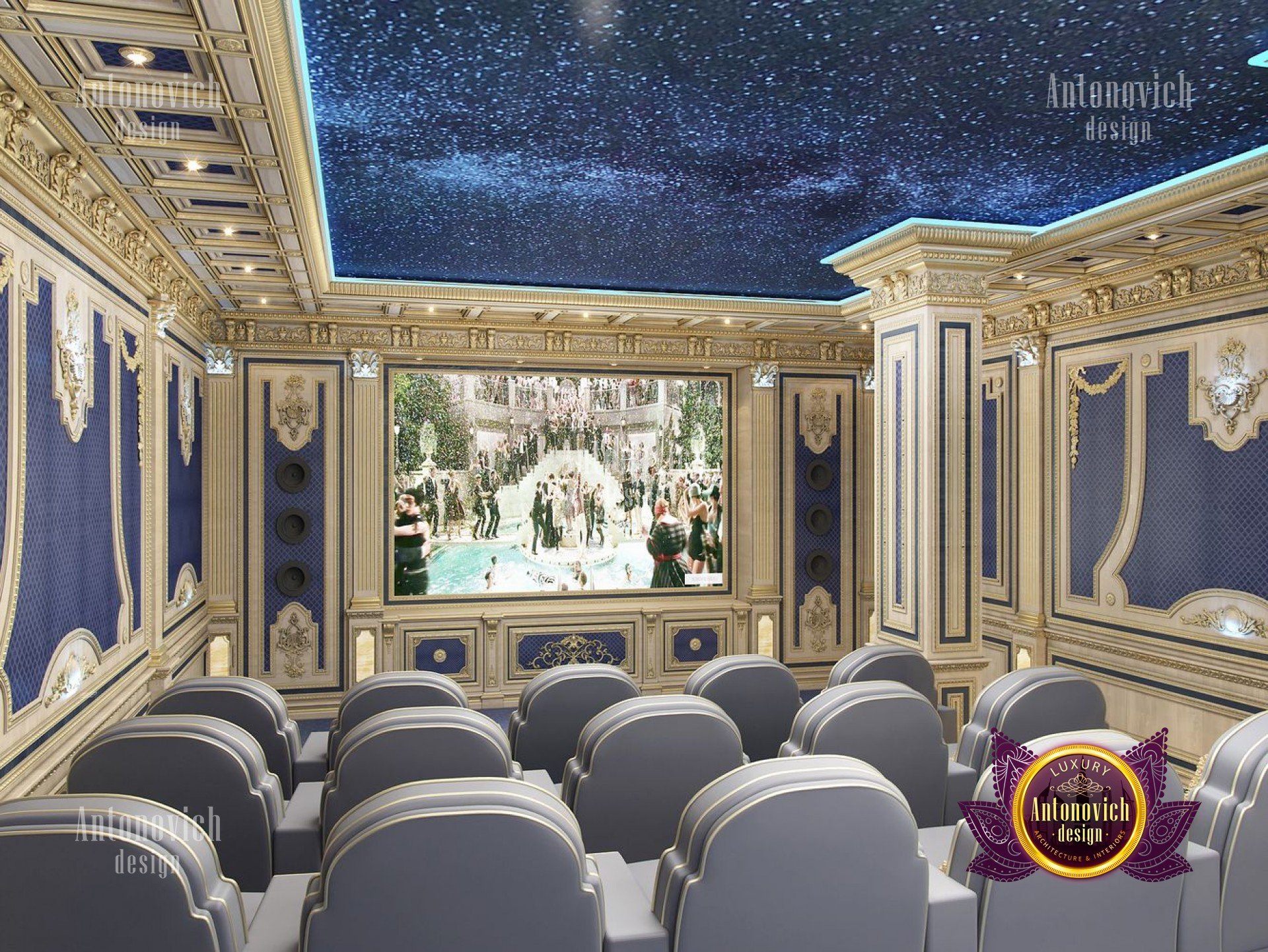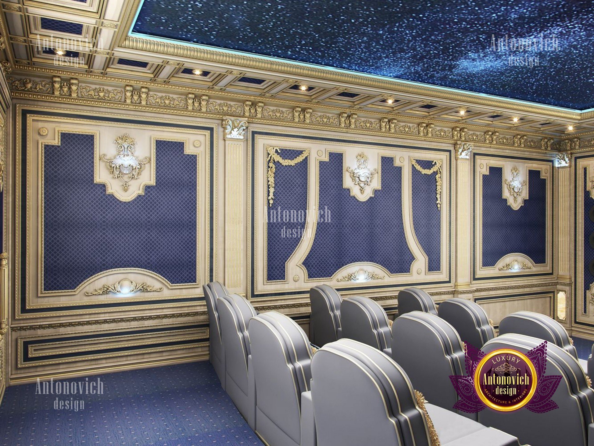 Домашние кинотеатры — это личное спокойное пространство, где вы можете отдохнуть и наслаждаться любимыми передачами и фильмами. Классическая тема прослеживается в этом проекте: мы согласуем оформление каждой комнаты с общим обликом дома. Это уютный домашний кинотеатр в квартире с достаточной вместимостью. Персонализированные декоративные подушки с логотипом клиента делают комнату уникальной. бархатный потолок в кинозале окружён изысканной рамкой с орнаментом в стиле ар-деко. В потолке установлены точечные светильники, чтобы обеспечить освещение до начала сеанса. Мы предлагаем планировку домашнего кинотеатра под ключ, включая тщательную проверку электроники и оборудования, чтобы избежать будущих технических работ. Даже если идея иметь домашний кинотеатр кажется сложной, наша команда подготовит план, подходящий вашей площади. Этот элитный интерьер домашнего кинотеатра превратит запасную комнату в функциональное и торжественное пространство. ступени в домашнем кинотеатре организуют эффектный вход, а акустика и освещение для домашнего кинотеатра настроены так, чтобы обеспечить идеальное звучание и картинку. Такой домашний кинотеатр для семьи и гостей станет вашим новым местом отдыха: наслаждайтесь домашними закусками и проводите больше времени вместе.