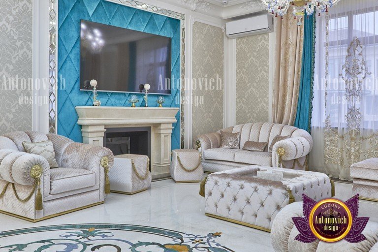 - Акценты: металлические золотые элементы отражают роскошь и придают комнате тёплую нотку.