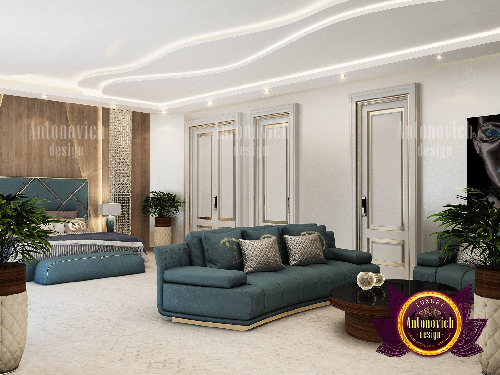 Роскошь встречается с утонченностью: дизайн роскошной спальни сочетает модные, изысканные решения с комфортом. Роскошные интерьеры с выразительными элементами подчёркивают диваны и мягкие зоны. Многоярусный подход создаёт пространство уюта и роскоши, особенно при использовании благородных отделочных материалов. Это наполняет дом безупречным внешним видом и исключительным комфортом. В этом интерьере от Антонович Дизайн (Antonovich Design) компания создала современный, прогрессивный образ комнаты, и в ней видно блестящий дизайн спальни. С Антонович Дизайн вы получаете новый, продуманный интерьер, который отвечает всем потребностям владельца. Эта свежая спальня очень просторна, и вы легко перемещаетесь по ней. Мы организуем важные зоны, поэтому предлагаем не только самые роскошные спальни, но и максимально практичные и удобные решения. Мы выполнили множество ярких проектов с детальной проработкой, включая решения как компания по внутренней отделке в ОАЭ. Мы создадим дом, который нужен вашей семье. А большой объём пространства не должен ограничивать ваш стиль или индивидуальность.
