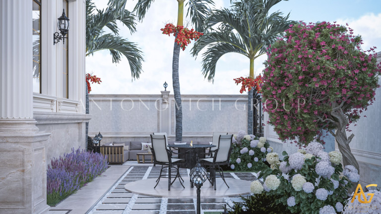 Стремление Антонович Дизайн к совершенству отражается в тщательной реализации каждого проекта. От концепции до сдачи объекта команда обеспечивает безупречную реализацию всех аспектов экстерьера виллы. Это включает: