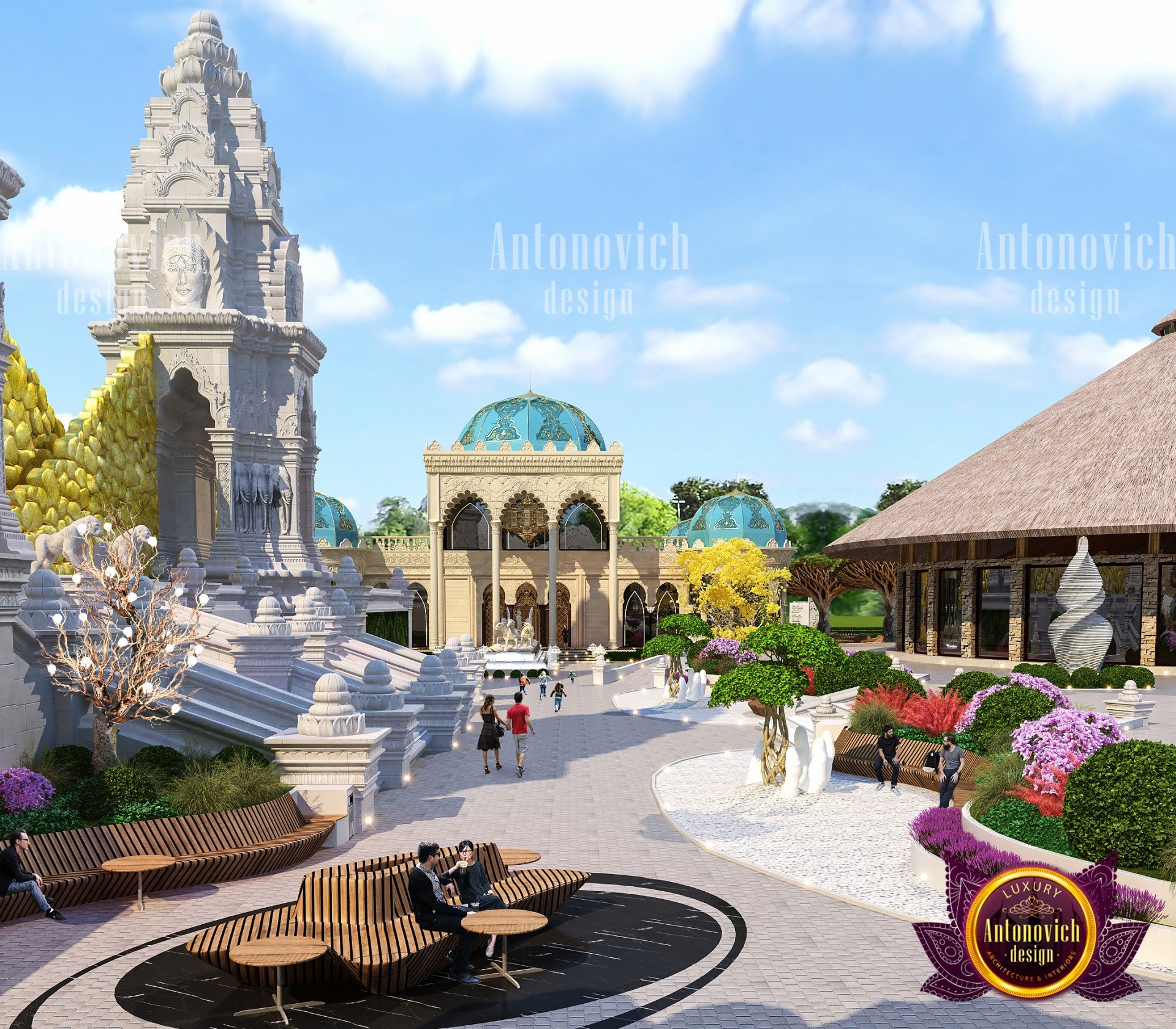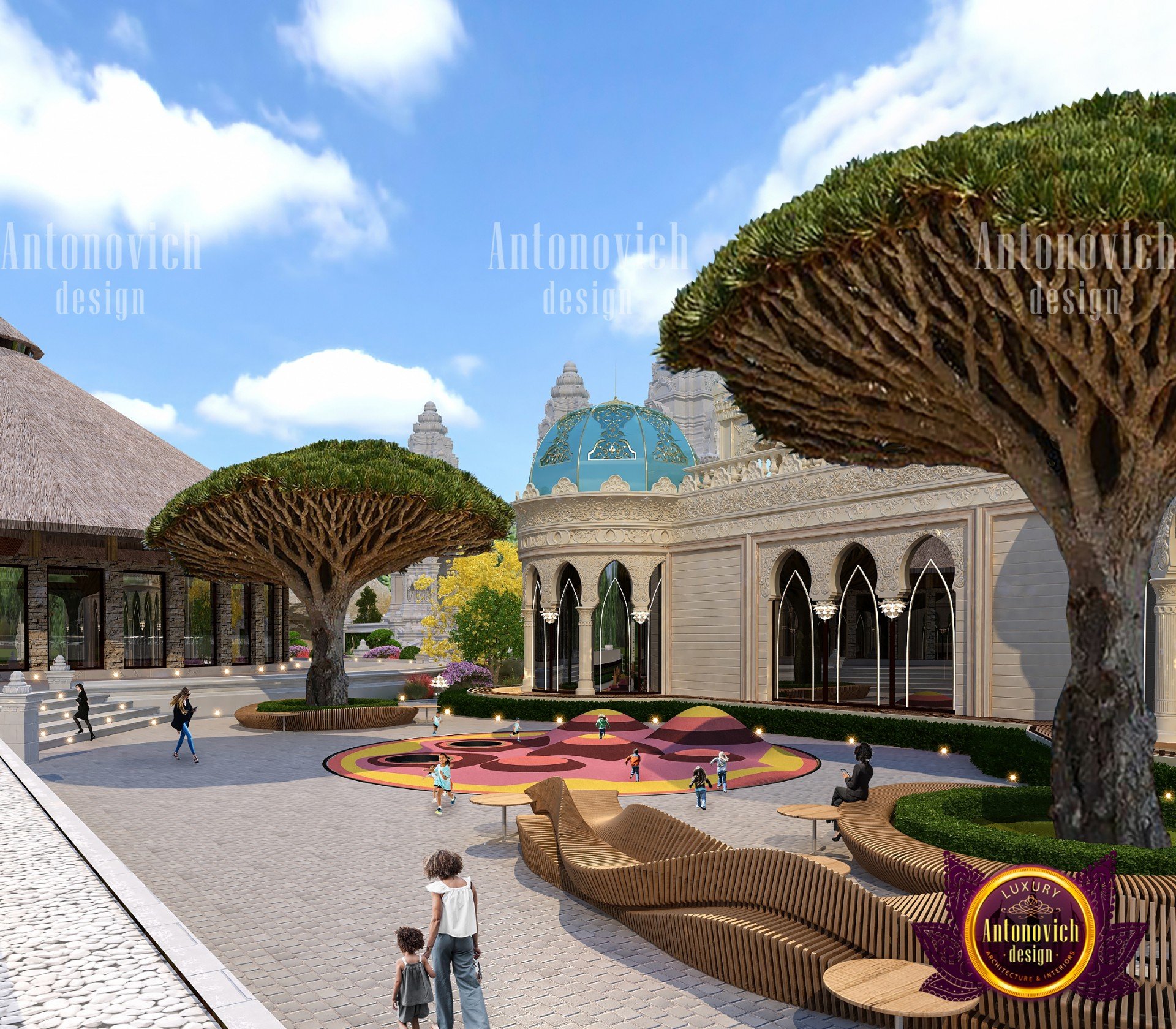 Вы можете спросить, что означает «альфреско». Это означает пребывание на свежем воздухе, часто в контексте обедов на открытом воздухе, что подчёркивает Искусство обеда. Дизайн парка альфреско делает пространство более связанным с природой. Это не типичный торговый центр или парк: здесь сложная архитектурная тема, которая позволяет вам расслабиться и перезагрузить мысли посреди городской суеты. Люксовое бюро Антонович Дизайн (Antonovich Design) стремится создавать лучшие парки для клиентов. В цифровую эпоху особенно ценно переживание душевной природной атмосферы, возвращающей нас к корням и приносящей покой в повседневную жизнь. Концепция парка альфреско для туристов и местных жителей становится всё более популярной, и если вы хотите собственный такой проект, пора изучить эти уникальные идеи, включая современный дизайн спальни. Первое, что вы заметите в этом парке альфреско, — арт‑деко оформление заведений. Оно напоминает уличную атмосферу Рима с элементами арабских традиционных орнаментов, создавая эклектичный микс внешнего вида exterior design.