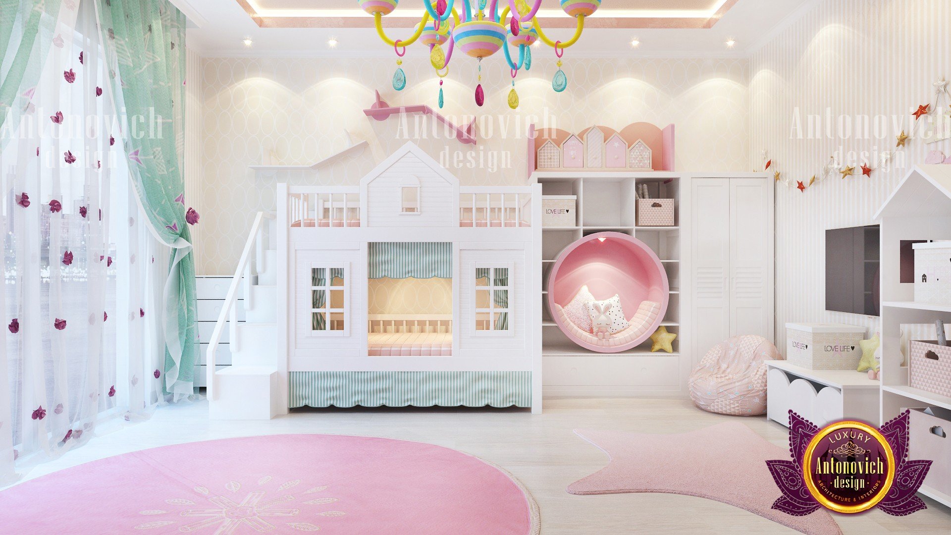 Каждая маленькая девочка мечтает стать принцессой. Создание для неё спальни в стиле принцессы станет важным моментом — ребёнок поймёт, что её любят. Секрет красивой спальни для девочки — заставить её почувствовать себя принцессой. Доминирование розового в этом дизайне спальни для девочки от компании Антонович Дизайн (Antonovich Design) делает пространство мечтательным и сказочным. Если вы хотите пробудить у ребёнка творчество, стоит создать для неё удивительную спальню — именно здесь начнётся её воображение. Яркие цвета и тематический декор стимулируют воображение и помогают развиваться. Этот дизайн вдохновляет и побуждает ребёнка к творчеству. Здесь же можно спокойно отдохнуть и играть. Эта необычная кровать выполнена в преппи-стиле, что делает спальню более уютной и благородной. Игривая эстетика элементов делает комнату ещё более дружелюбной для ребёнка. Если хотите подобрать палитру, посмотрите элегантные роскошные цвета.