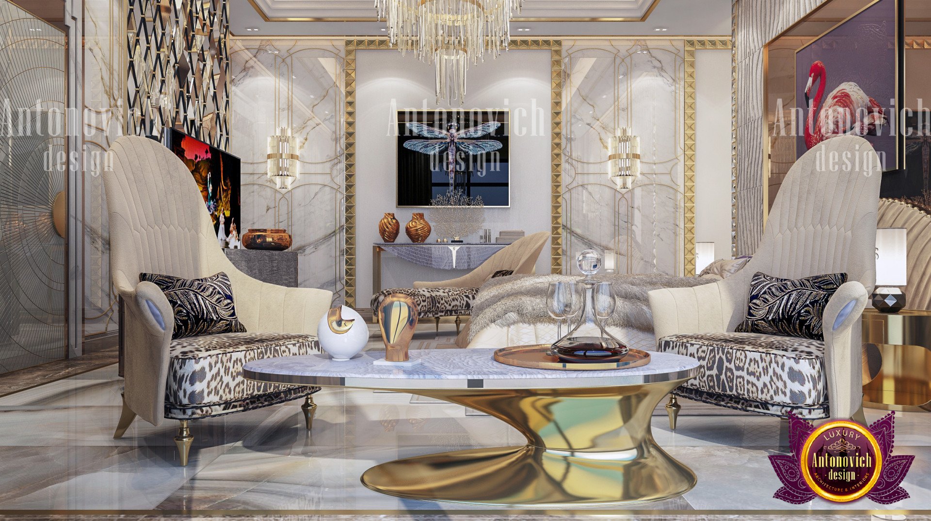 Спальня не будет полной без изящных диванов и соф — в этой мастер-спальне парные диваны образуют уютную зону отдыха: зона отдыха с диваном в спальне служит местом для чаепития и чтения. Мы также подбираем двери для интерьера, см. лучшие деревянные двери. Акцентные кресла расположены в центре комнаты, создавая гармонию в просторной планировке. Диваны дополнены декоративными подушками с подходящим принтом — композиция леопардового и зебрового принта повторяется в текстиле. Растения вносят нотку цвета и нежную атмосферу, а лампы добавляют элегантное освещение. Для технической части освещения и коммуникаций см. полное руководство по MEP услугам. Мы также использовали шторы от пола до потолка, которые подчёркивают тему: шторы от пола до потолка гармонируют с коричневыми и золотыми оттенками и отражают роскошный дизайн спальни. Вам будет приятно проводить каждый день в этой потрясающей спальне в стиле сафари от Антонович Дизайн; примеры подобных проектов — дизайн частной виллы Dubai Palm. При комплексном ремонте полезны советы по ремонту ванной комнаты для эффектной трансформации пространства.