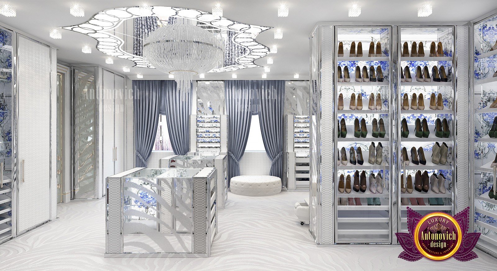 Гардеробные традиционно воспринимаются как символы роскоши. Дизайн гардеробной подчёркивает статус: тут хранится брендовая одежда и дорогие вещи. Одно из самых приятных ощущений — видеть аккуратно расставленную коллекцию обуви. Гардеробная — превосходное решение, чтобы сделать дополнительное помещение функциональным и упорядочить вещи. Это встречается даже в интерьере класса люкс.