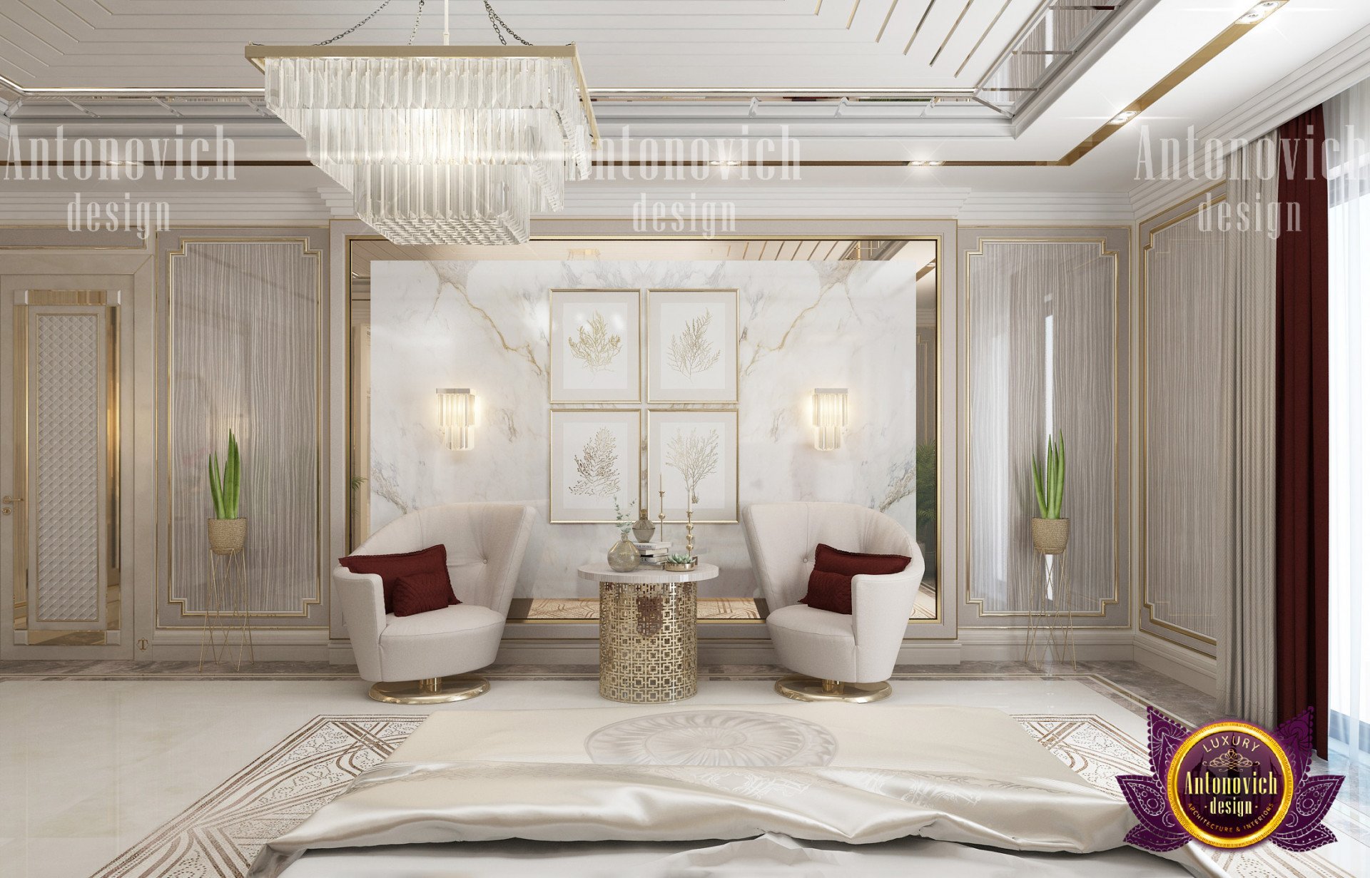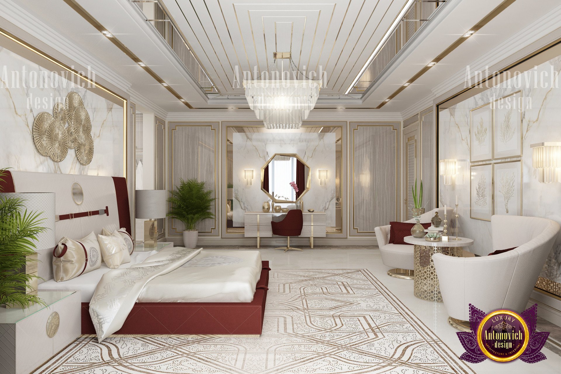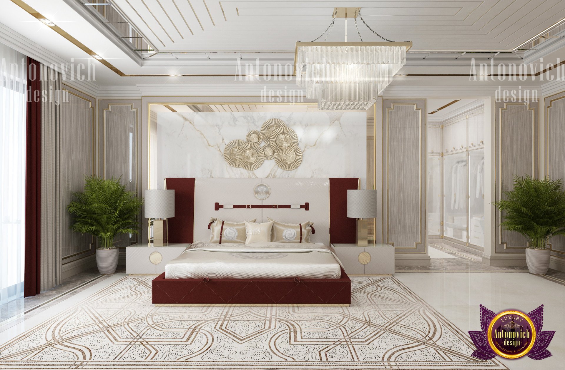В простоте есть нечто, что подчёркивает архитектурные особенности комнаты. Низкий каркас кровати создаёт ощущение простора и облегчает декорирование. Фон из мягких текстурированных белых и мраморных стен дарит комнате спокойную атмосферу. Поддержание порядка усиливает ощущение элегантности за счёт отсутствия захламления. Напротив кровати устроена изящная зона отдыха на двоих — идеальное место, чтобы выпить кофе или позавтракать. Также в другой части комнаты мы добавили комод со зеркалом как удачное место для утреннего макияжа — он гармонирует с общей эстетикой. Эта минималистичная спальня сохраняет элегантность, лаконичность и простоту. В такой планировке уместна мебель для спальни в стиле минимализм, которая подчёркивает чистые линии и функциональность. Схожие подходы описаны в идеи и мебельные решения. Мы разместили эффектную люстру, которая оживляет интерьер своими хрустальными подвесками; при этом получилось элегантная спальня с интересной люстрой и гармоничными прикроватными тумбами с лампами, которые также служат ночниками. Для роскошных интерьеров смотрите коллекция роскошных интерьеров. Акцентный декор и текстуры в спальне добавляют контраст и глубину, делая композицию более выразительной. Этот аутентичный дизайн спальни — то, что многие ищут для своего дома. Для функциональных встроенных систем мы предлагаем индивидуальную планировку — элитный дизайн гардеробной.
