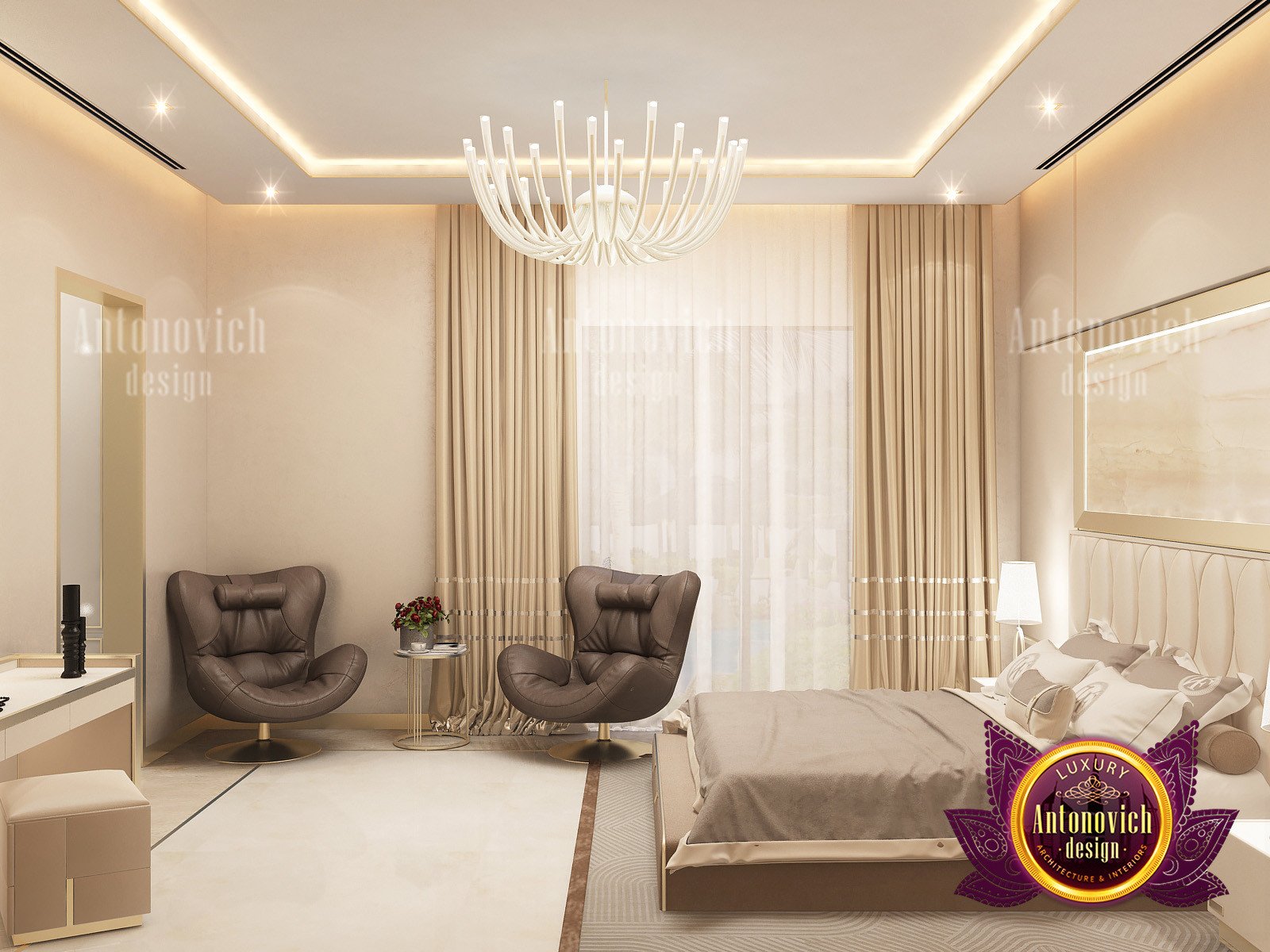 Эта изящная планировка комнаты красива с любой точки зрения. Интерьер подчёркнут роскошной палитрой; наши новые инновации для гостиных применимы и к спальному пространству. Это вдохновляющая спальня со всем необходимым для комфорта. Антонович Дизайн (Antonovich Design) — один из Лучших архитекторов и дизайнеров, который решает ваши задачи по оформлению. Мы обладаем опытом и навыками, чтобы воплотить ваш идеальный дом. Создание утончённого пространства с приятной атмосферой — наша ключевая задача. Спальня, где пары могут расслабляться, работать над делами и принимать гостей; зоны наполнены светом и продуманной мебелью. Освещение играет важную роль в любой спальне: освещение спальни идеи помогают подчеркнуть выбранные тона. Колоссальные жалюзи разбивают ровные поверхности, а принты добавляют шика и винтажного акцента, вдохновляясь дизайнерским декором Лос-Анджелеса. Мы предлагаем функциональные решения: встроенный шкаф с местом для ТВ и декоративных предметов, элегантное кресло с гладким столиком и лаконичным настольным светильником превращают пространство в гостиничную атмосферу, применяя комфортный дизайн гостиной подходы. В интерьере использовано мягкое, обитое изголовье, которое делает стиль более выразительным, а прикроватная зона служит границей для личных вещей.