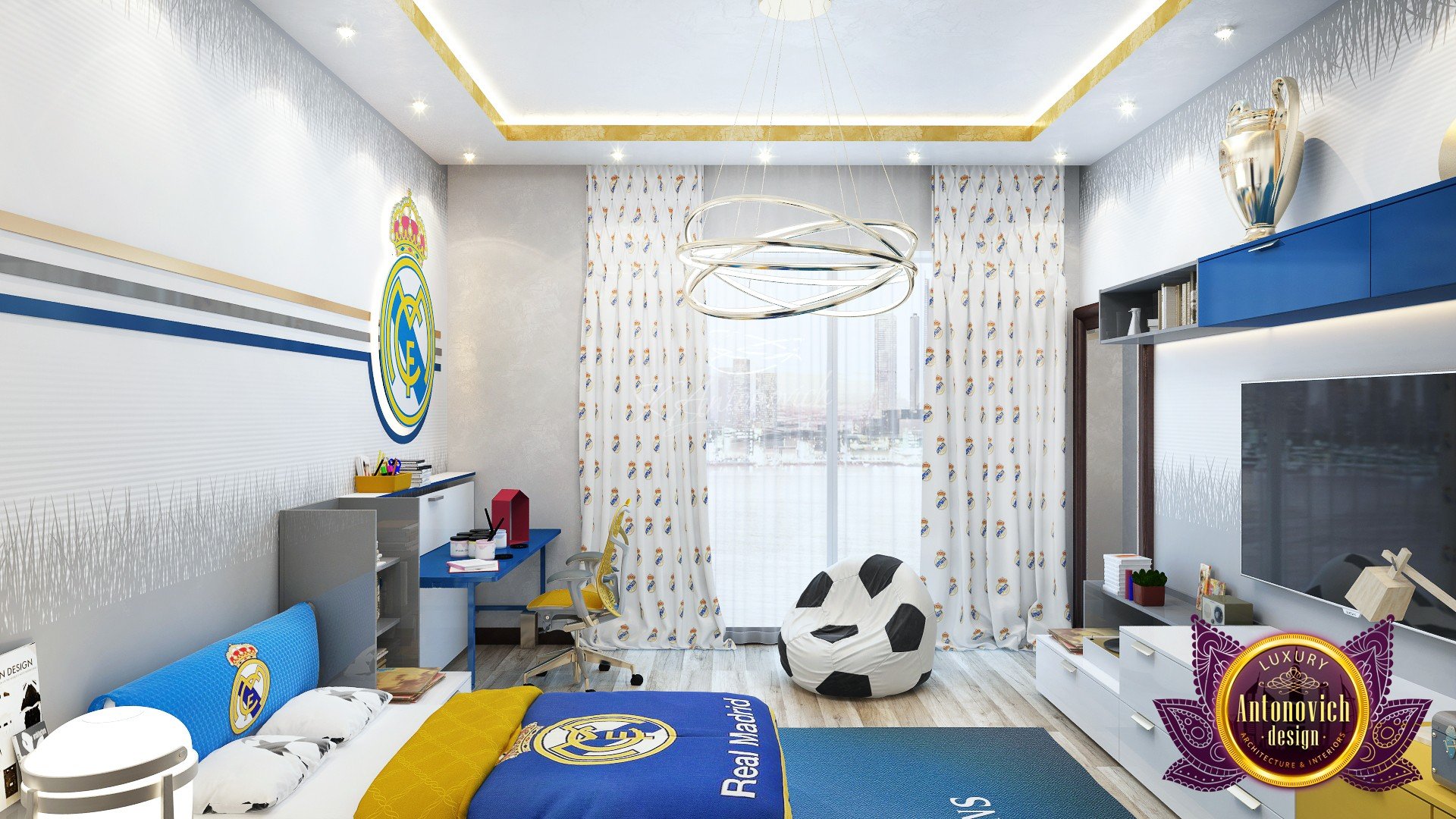 Если вы ищете дизайнера, который поможет разработать дизайн детской для мальчика, вы попали по адресу. Ваш маленький заслуживает собственную комнату: создайте спальню, где учтены его интересы и потребности. Задаётесь вопросом, с чего начать? Ознакомьтесь с нашим последним проектом, чтобы увидеть подробности этой идеи. Лучший способ создать комнату для вашего сына — добавить в неё то, что он любит, и включить это в оформление комнаты для мальчика. Например, используйте персонализированные наклейки на стену с футбольной тематикой, которые будут напоминать ребёнку о его хобби. Комната оформлена так, чтобы сочетать игровую атмосферу и выдержанную элегантность. Мы детально проработали тему и согласовали её с мебелью и общим интерьером. Ваши дети бывают маленькими лишь один раз, поэтому важно ввести игровую тему, чтобы они с радостью проводили время в своей комнате.СТИЛЬНО И СПОРТИВНО