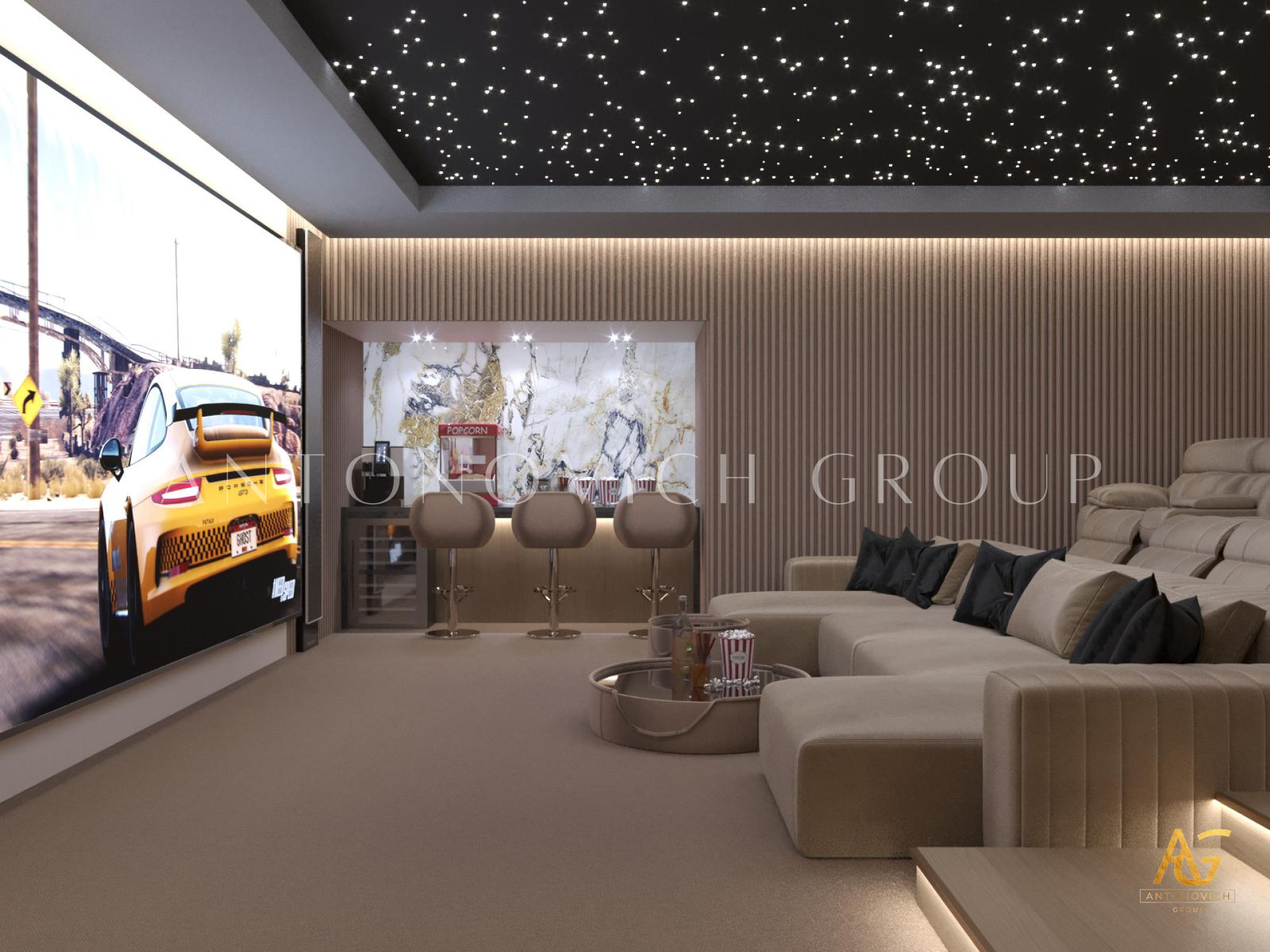 Дизайн домашнего кинотеатра от Антонович Дизайн адаптируется к вкусу и предпочтениям клиента. Наша команда тщательно продумывает планировку, оптимальные места для сидения, акустику и освещение. Мы используем премиальные материалы, мягкие кресла и высокоуровневые системы проекции для создания атмосферы настоящего кинотеатра внутри виллы.