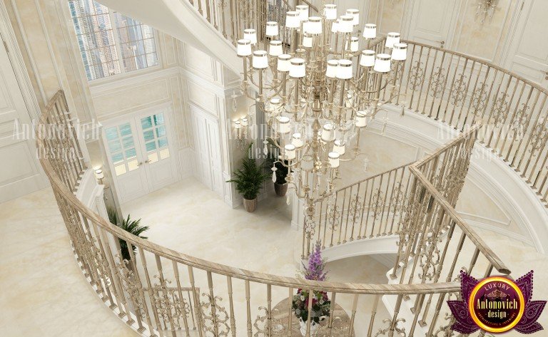 Работы по дизайну, отделке и установке каменной лестницы классического холла выполняют наши инженеры и высококвалифицированные мастера, специализирующиеся на исполнении специализированных заказов. Проект разрабатывается на основе архитектуры, планировки и стилистики всего интерьера дома с учётом даже ландшафтного дизайна.